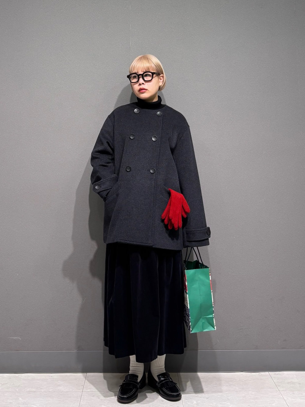 前はスッキリめ。後ろはヒップを程よくカバーしてくれる丈感だったので、シンプルなカットソー合わせでも気になる部分をカバーしつつコーディネートを華やかにしてくれます◎