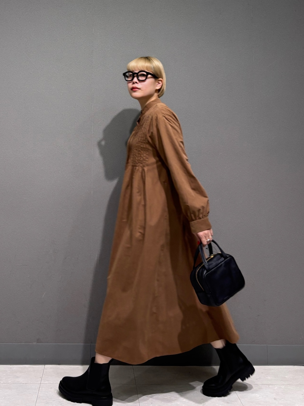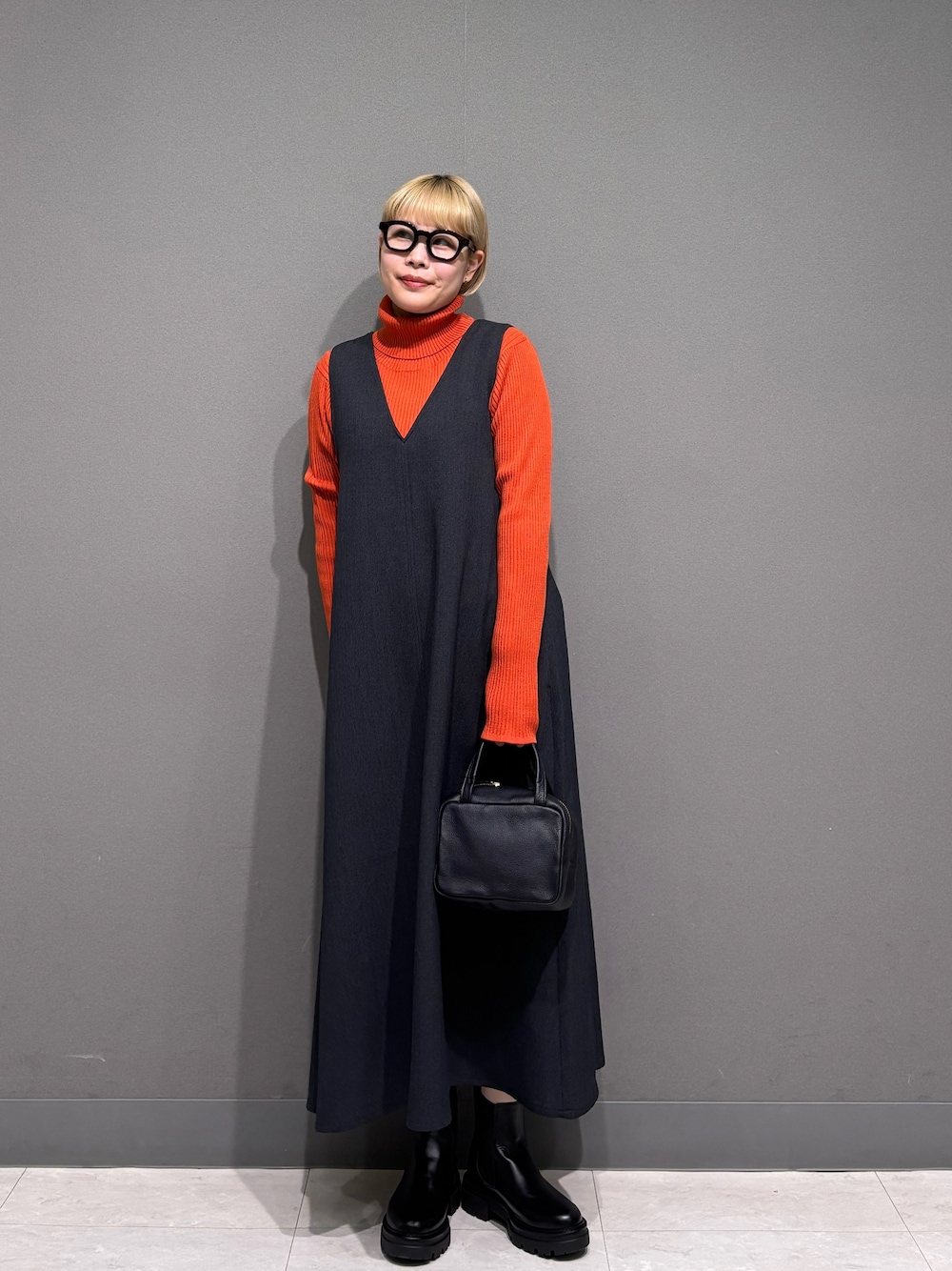 ニットが首元からチラッと見えても可愛いので、ノーカラーのアウターにしました。