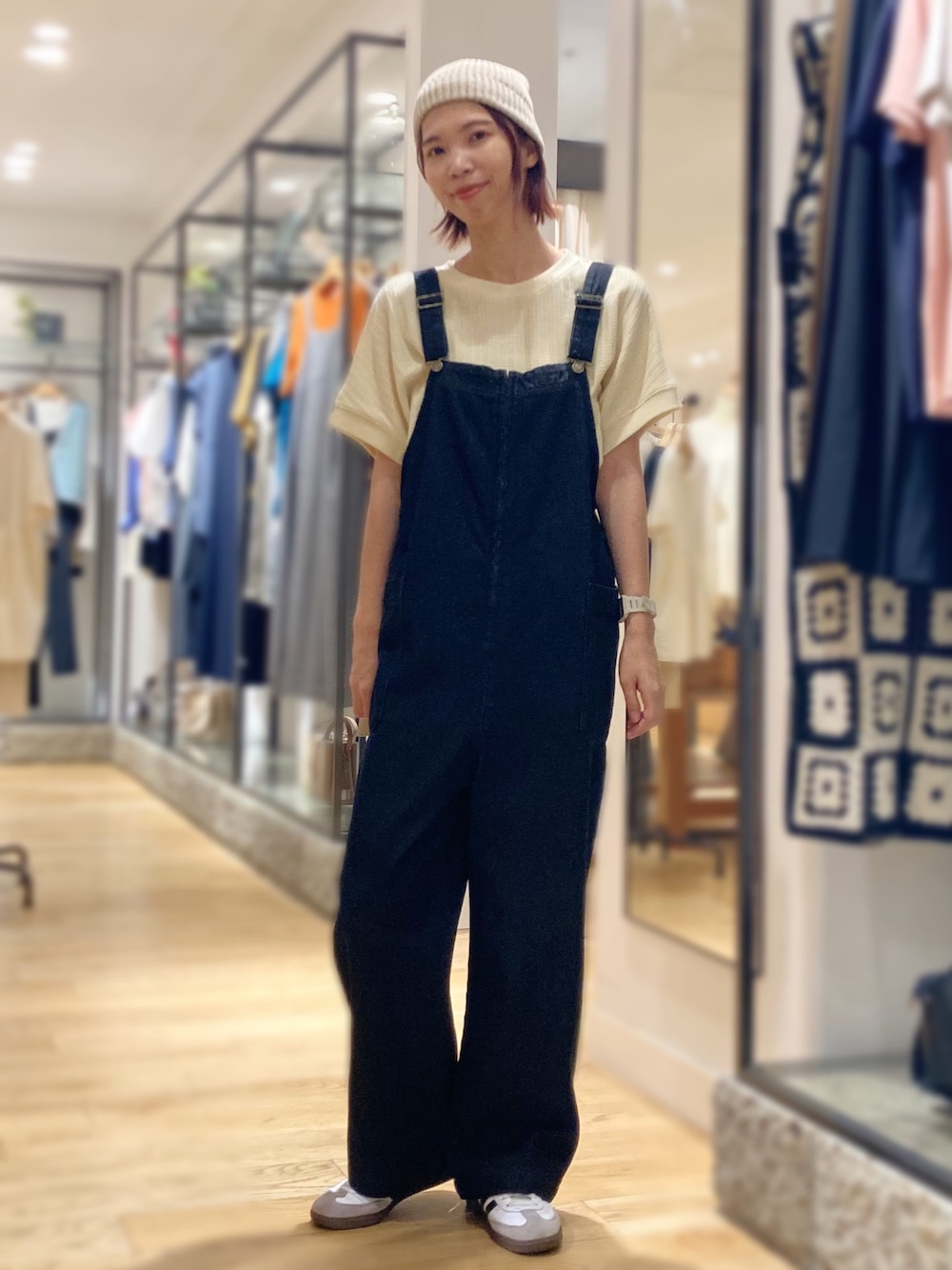 素材感・着心地:デニム生地なので暑いかと思いきや、適度にゆったりとしていて通気性があるので、半袖やノースリーブと合わせてまだ暑さも残る時期から活躍してくれます。サイドのBigポケットが可愛いです!
