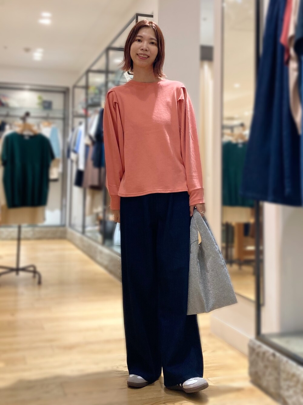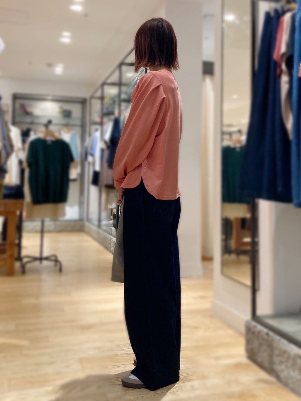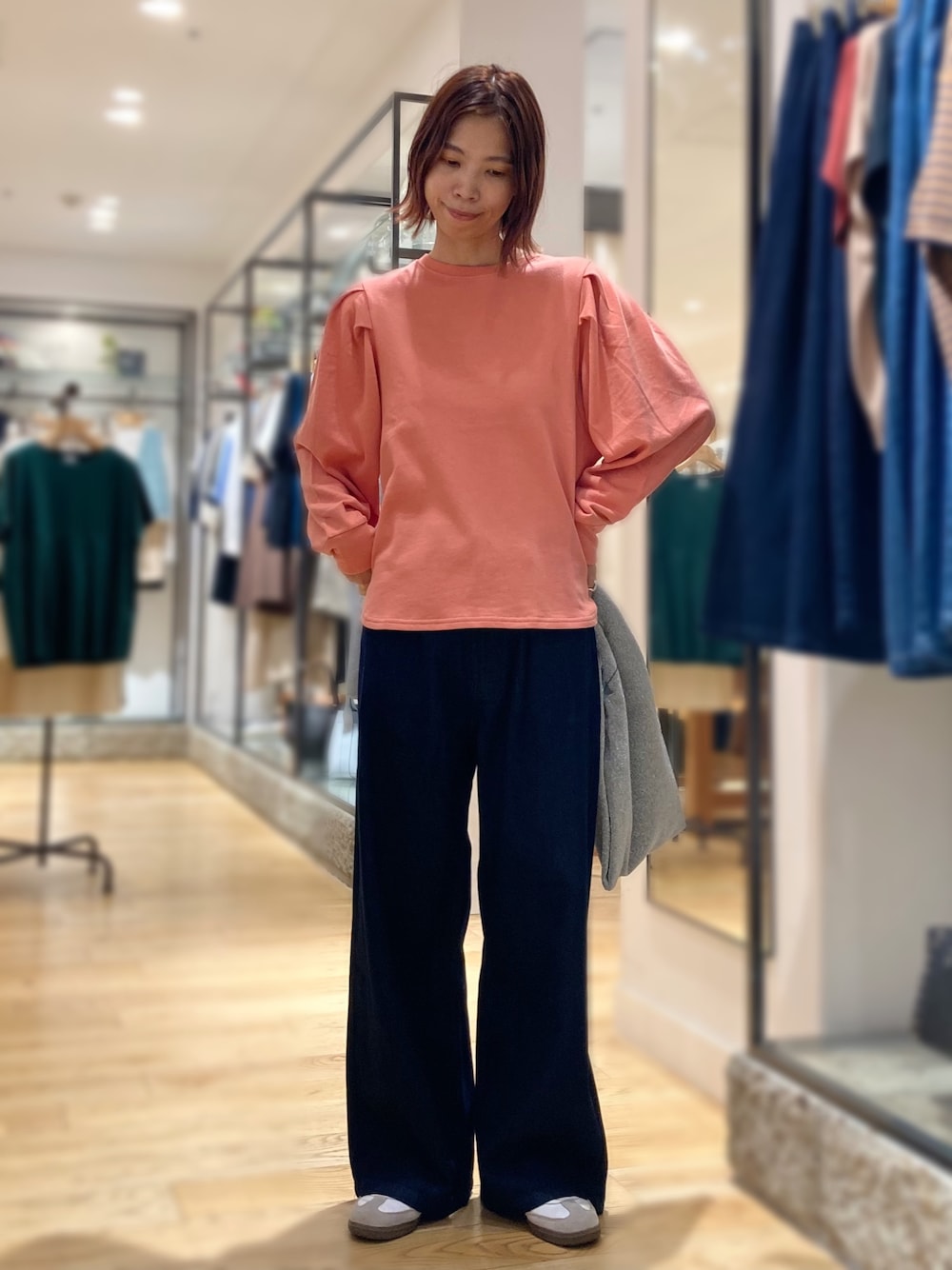 素材感・着心地:オーガニックコットンを使った柔らかいデニムです。タックが入っているので柔らかさがありながらものっぺりとせず、とにかく足長効果抜群です!