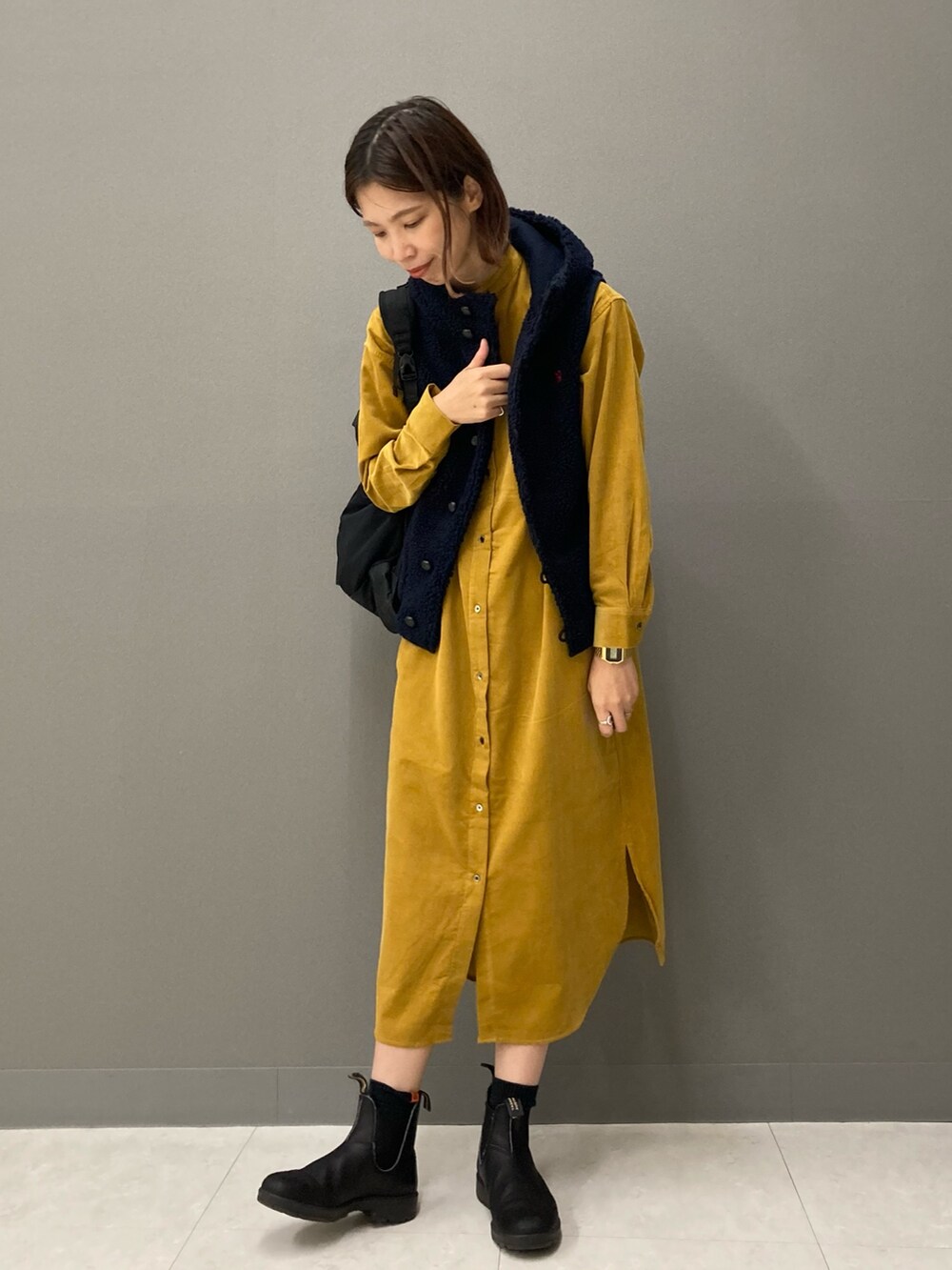 着るだけで元気の出るマスタードカラーのシャツワンピース!コーデュロイの暖かみのある生地感が秋の気分を更に持ち上げてくれます(^^)羽織で着たり柄パンツと合わせたりと沢山着まわしていただけますよ!