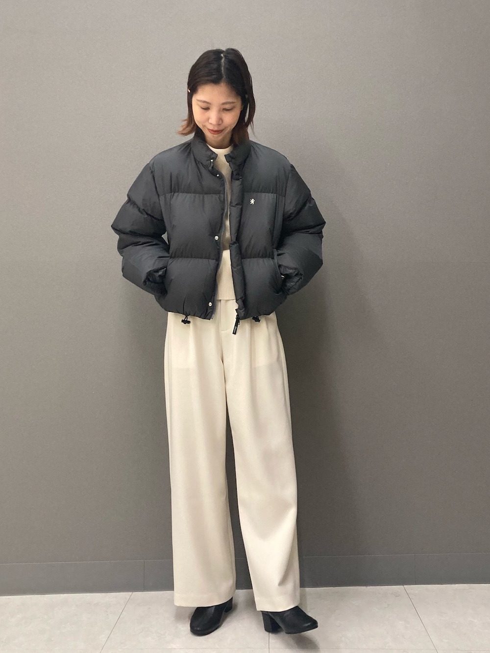 黒ではなくチャコールなのでボリューム感のあるダウンも女性らしく合わせていただきやすいですよ(^^)