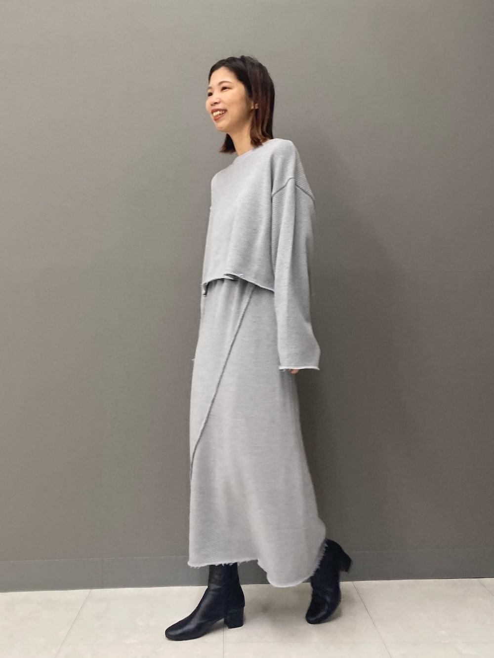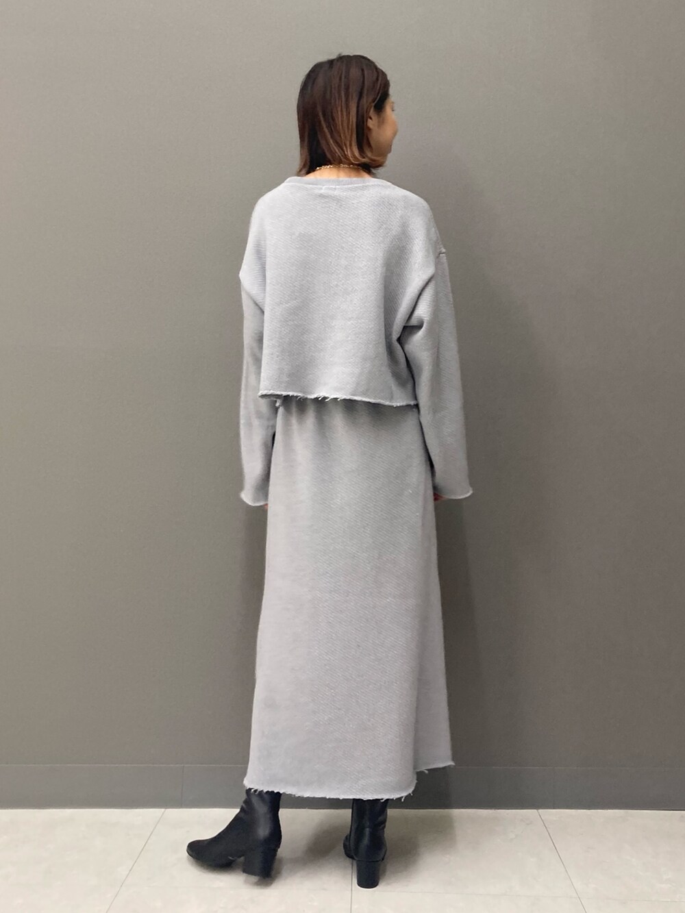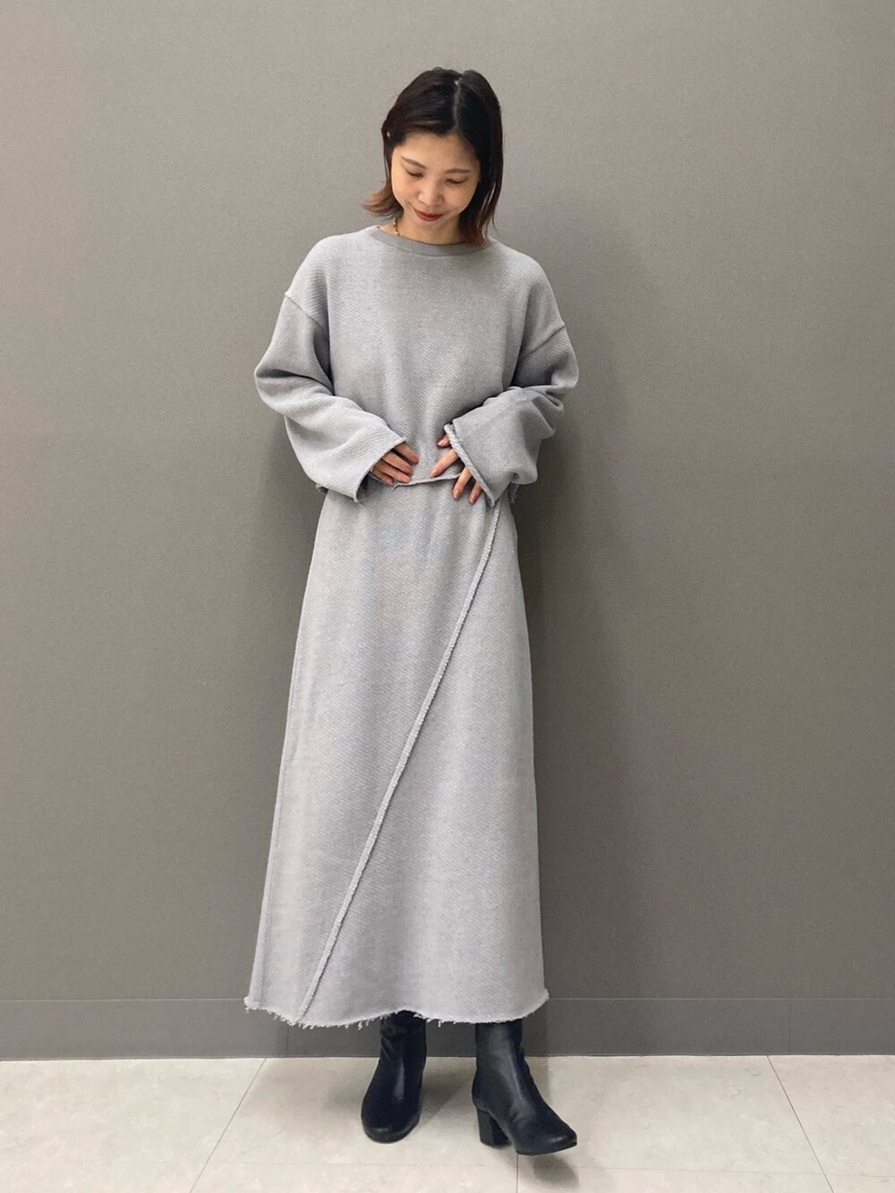スウェットのような感覚で楽に着れますがシルエットが綺麗なのでブーツを合わせてキレイめコーデで合わせてみました(^^)