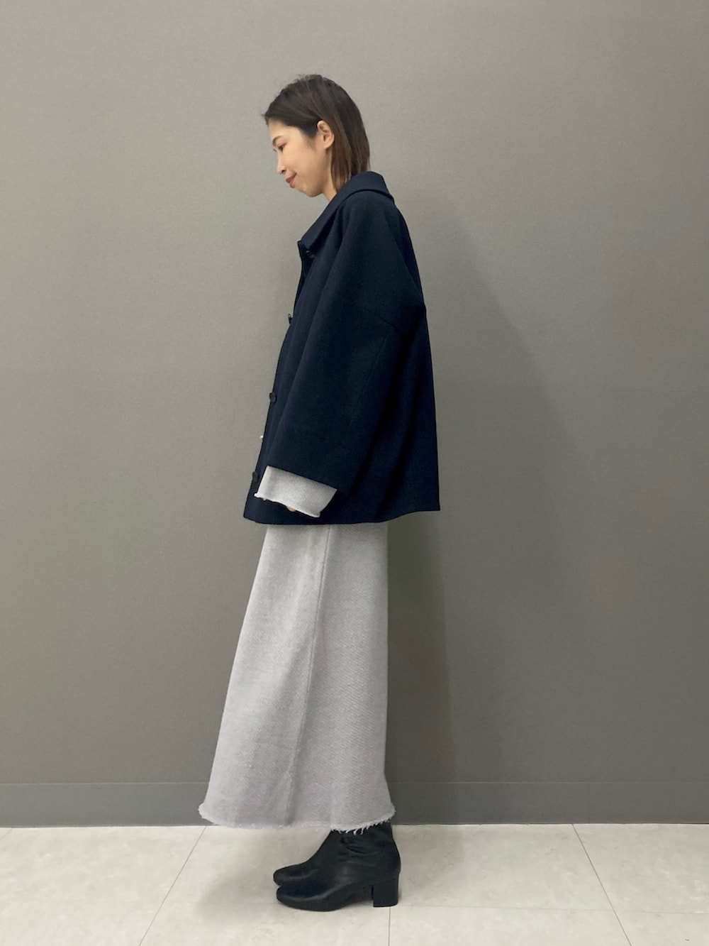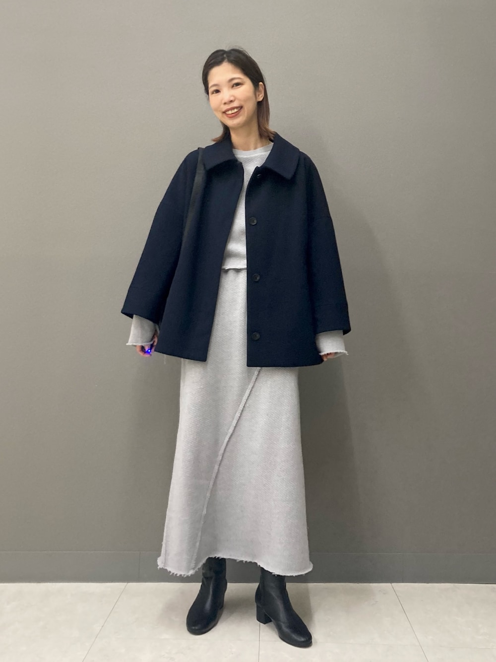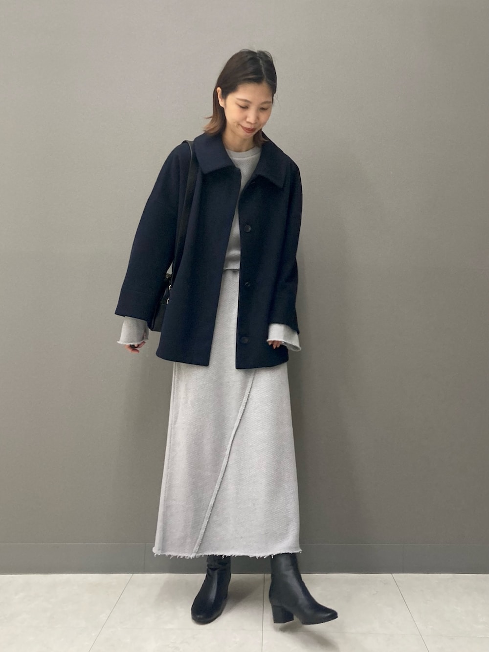 スウェットのような感覚で楽に着れますがシルエットが綺麗なのでブーツを合わせてキレイめコーデで合わせてみました(^^)