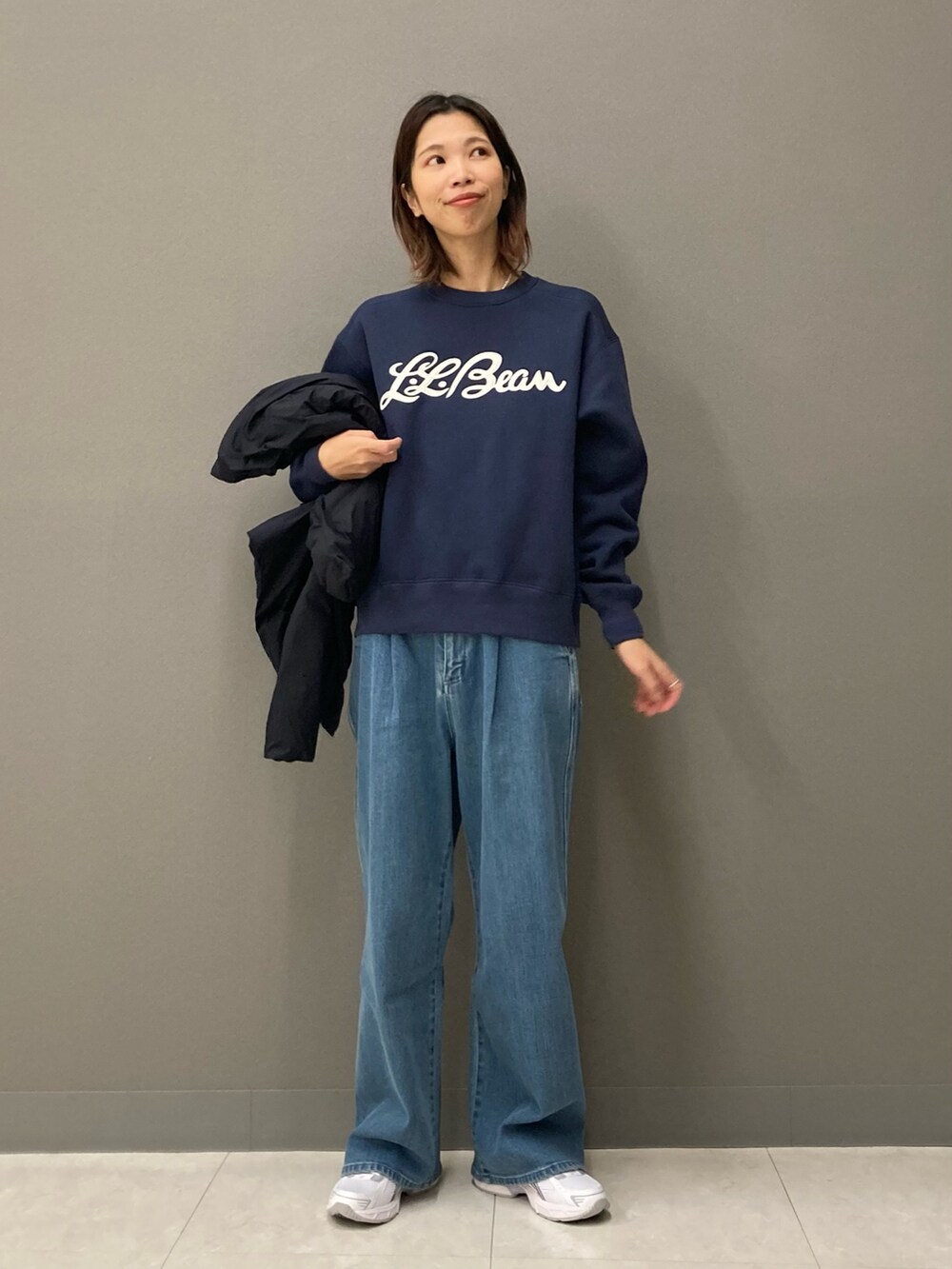 表面はスポンジのようなお素材感で軽めな印象ですが、実は裏側がフリースになっており1枚でとっても暖かいL.L.Beanのスウェット!