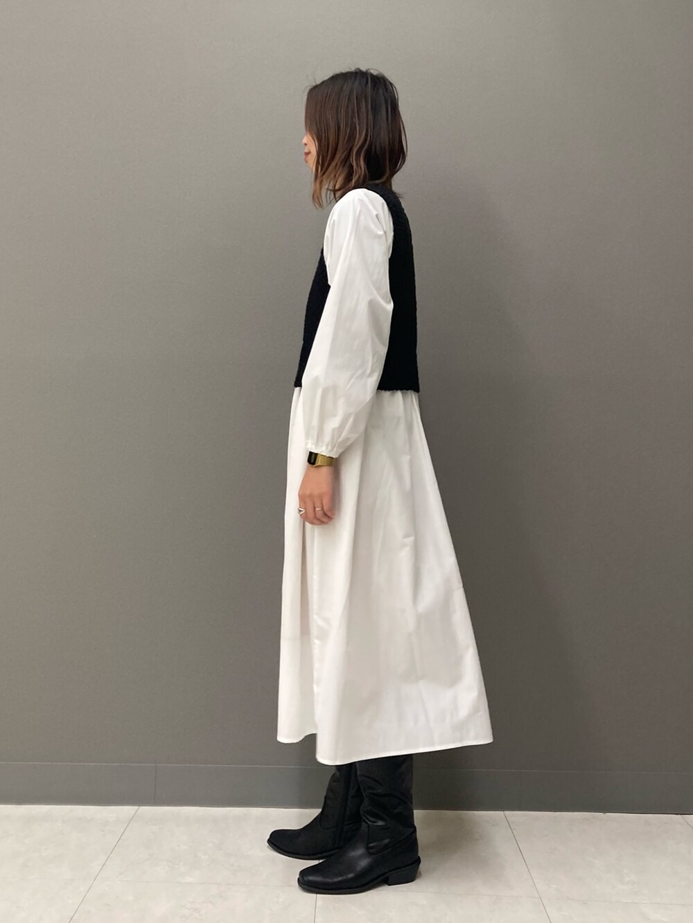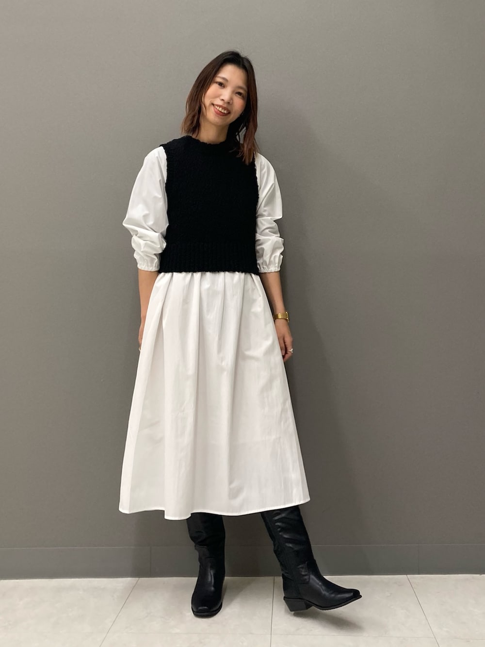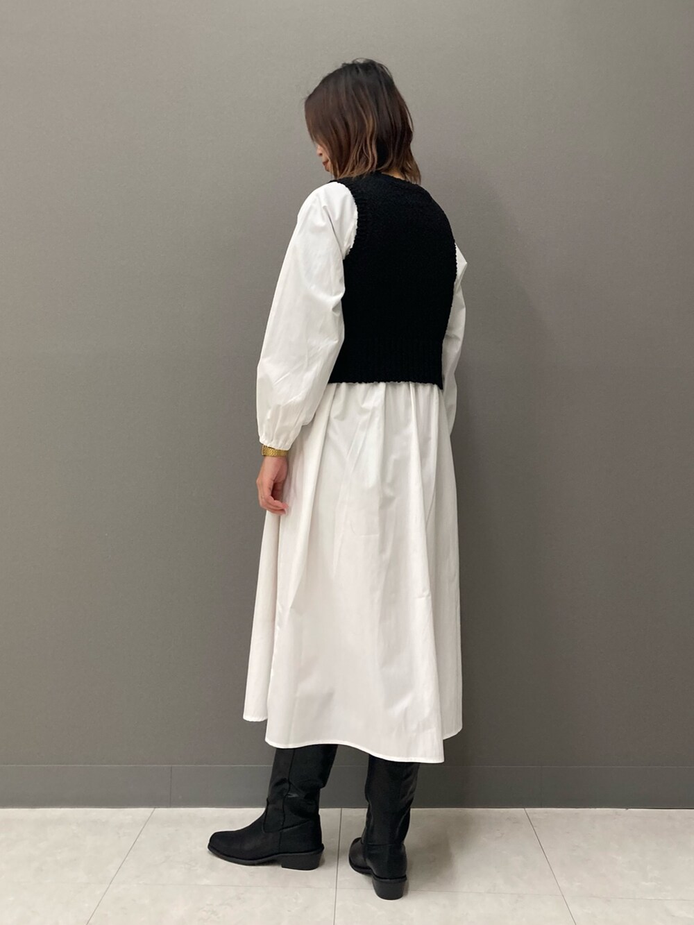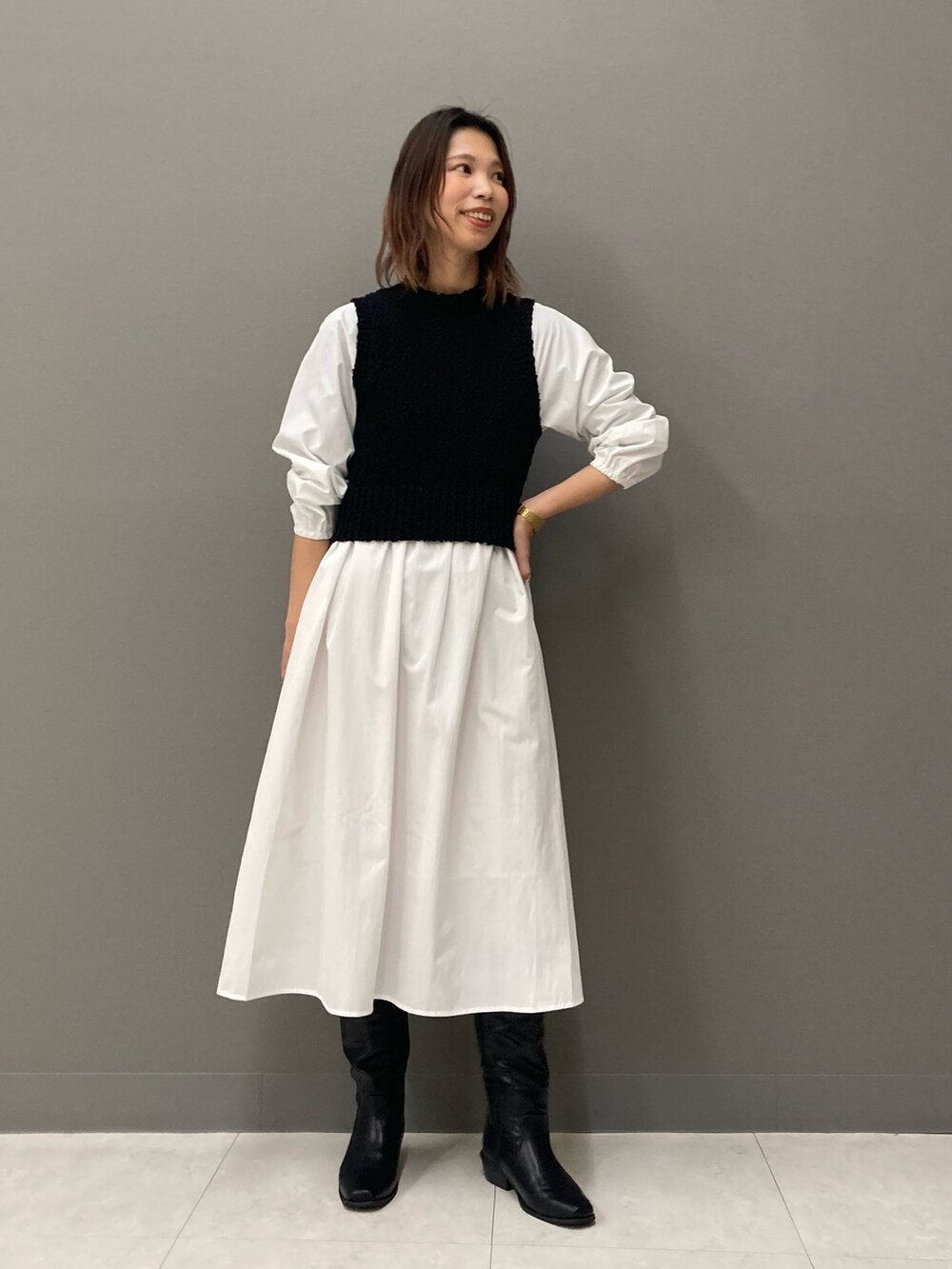個人的に白のワンピースは可愛すぎるかも…と最近着るのを控えていたのですが、着てみるとベストの色味がベーシックなので顔周りも浮きずらく、抵抗なく着れました◎