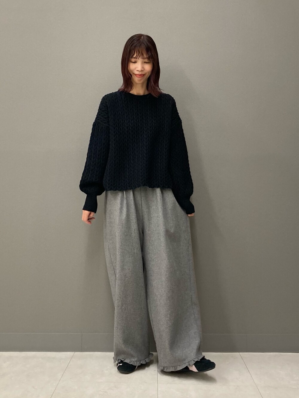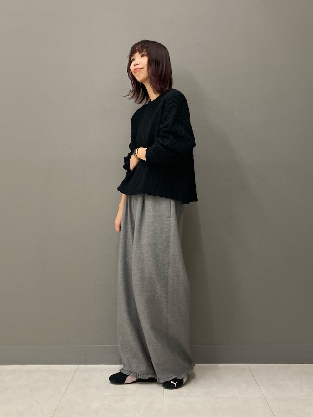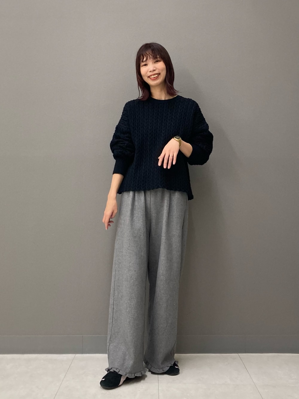 ウールが使われているので暖かさもあり、ワイドシルエットなのでタイツなども重ねやすいので真冬もお使い頂きやすいですよ(^^)