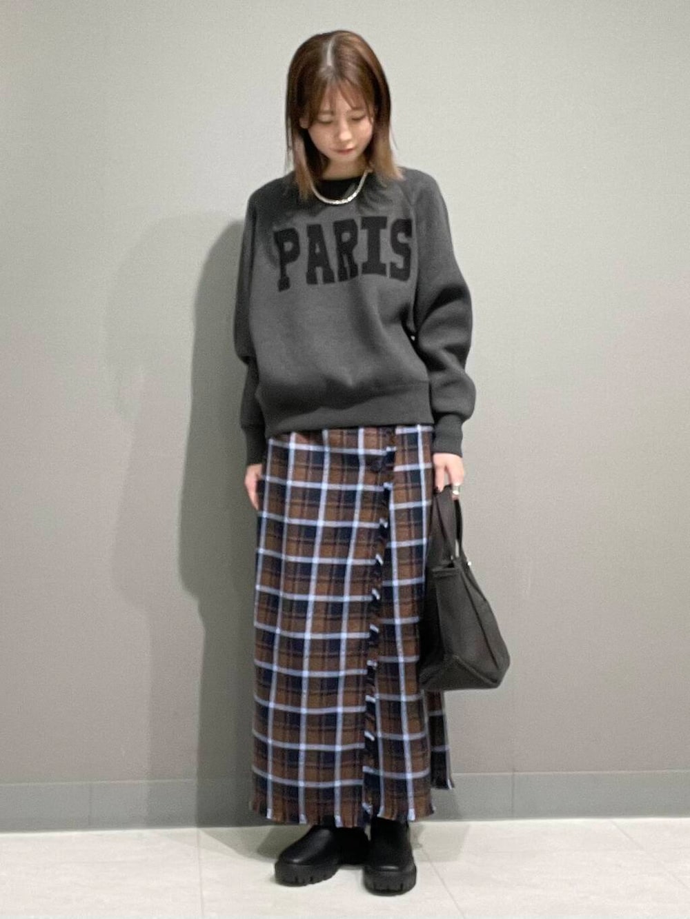 チャコールに黒のPARISのロゴがとっても可愛いく、コーディネートのポイントをになってくれる一枚です(^^)