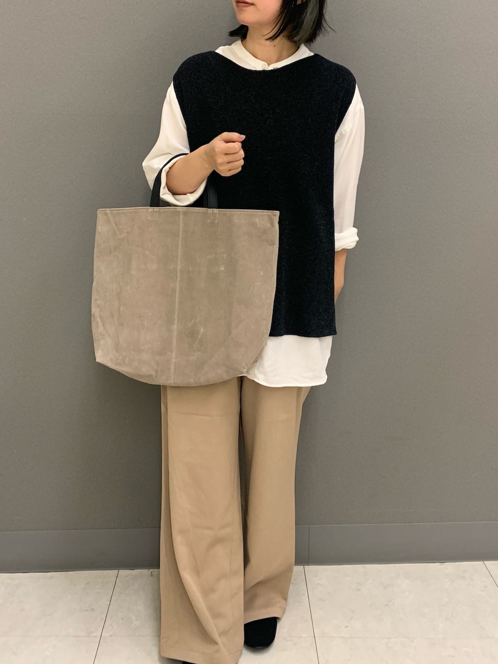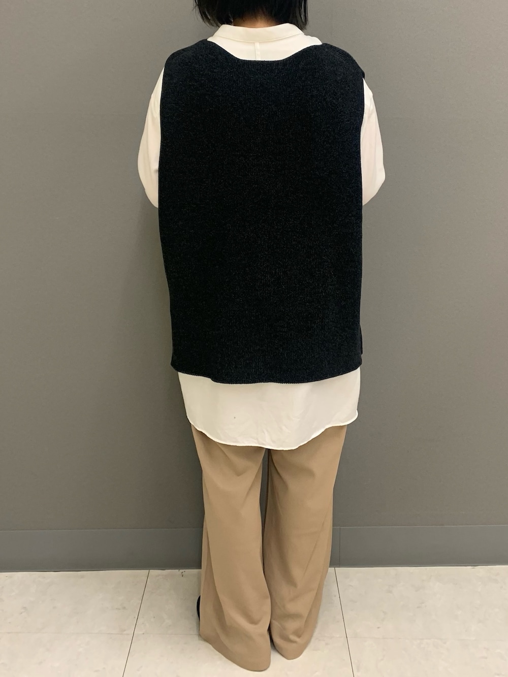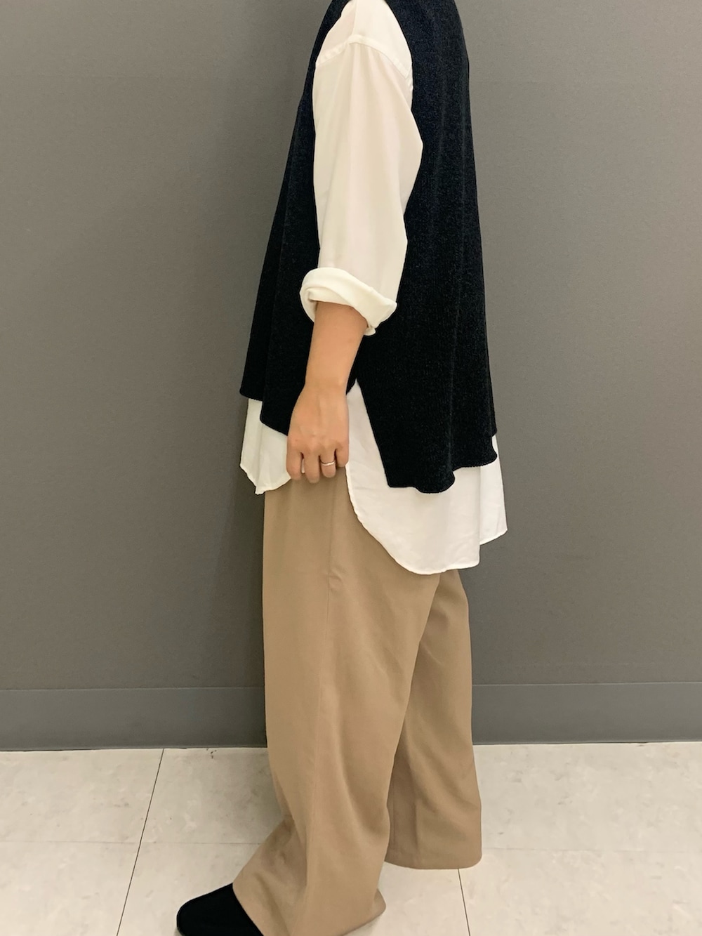 リアルバイしたかぐれのドライコットンニットベストは大きめシャツの膨らみをおさえてくれてコーデの引き締めに一役買ってくれています☆