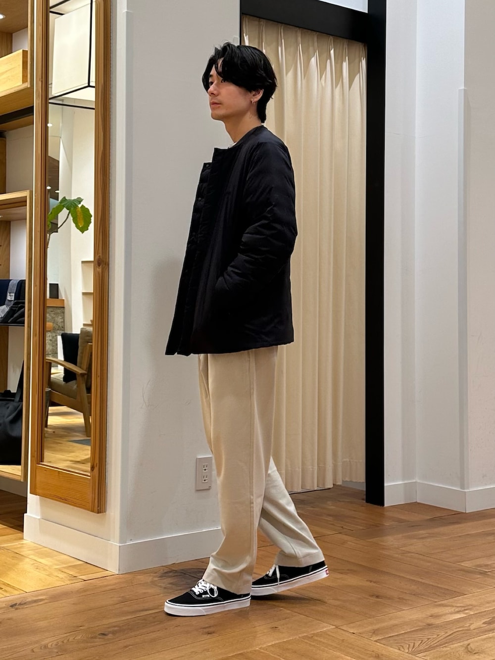ノーカラーで首元スッキリしてるので