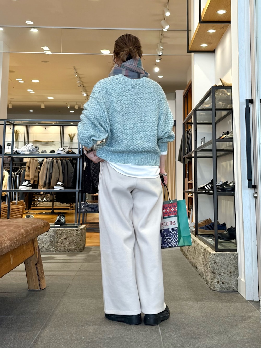 EKALの爽やかなカラーのニット。ネップを織り交ぜて表情のある柄が魅力。レイヤードすると、よりオシャレに◎