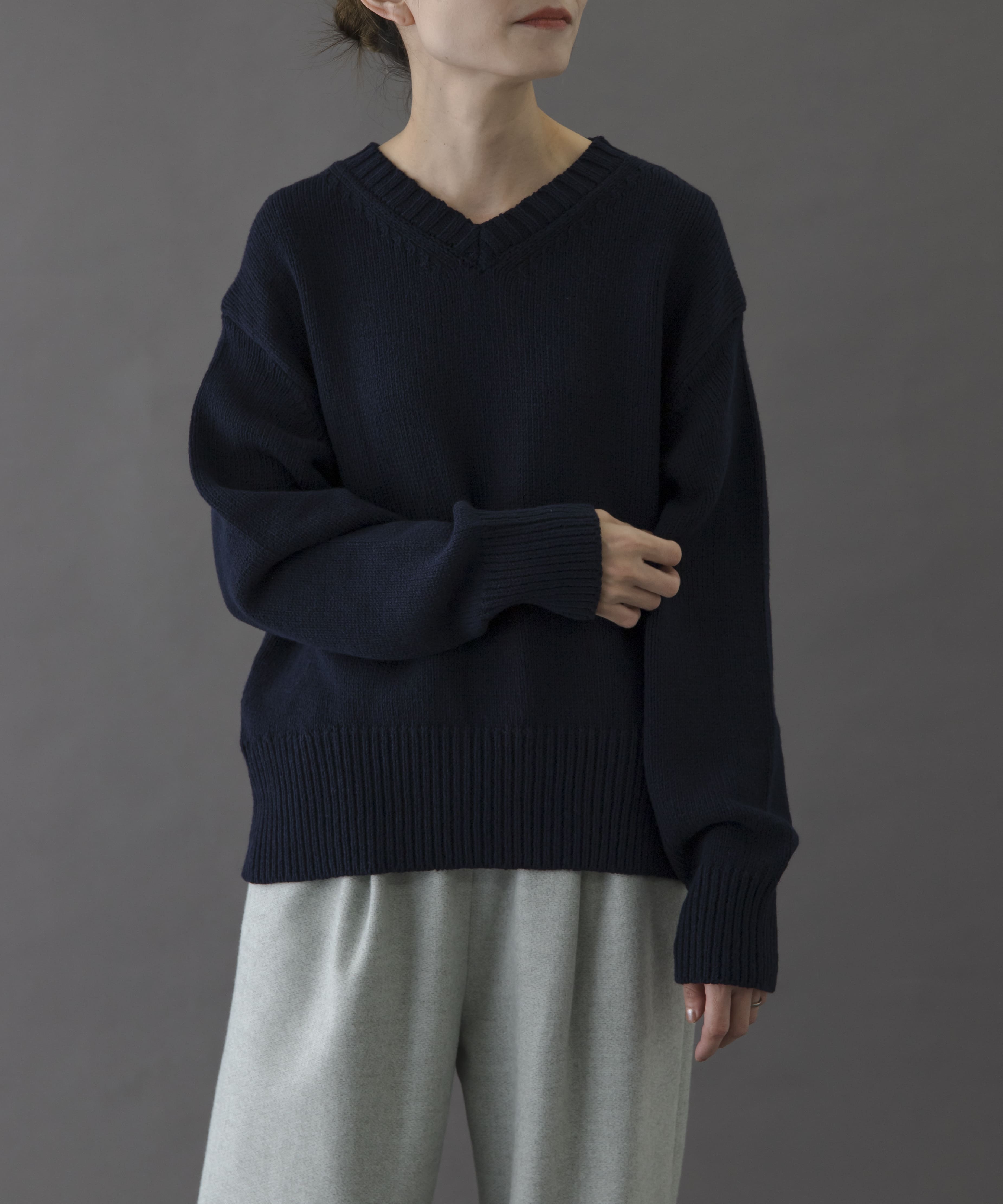 リアルバイしたVネックニットは首元が開きすぎていなく、Vネックでもカジュアルに着られるので気に入っています。リブもアクセントになり一枚でもサマになります。シンプルが好きな方に是非おすすめ◎