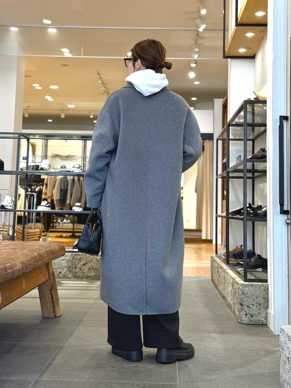 見た目以上に軽くてさらっと羽織れるロングコート。しっかり長さがあって雰囲気が出ます◎