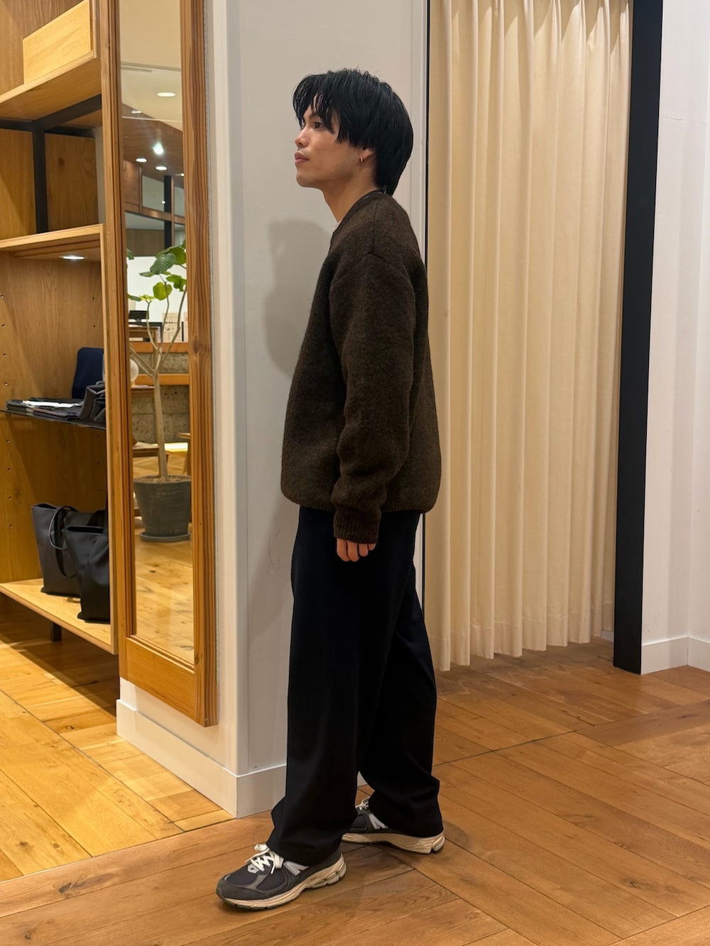 化繊メインのニットですが起毛感がありシンプルながら1枚でキマります🔥
