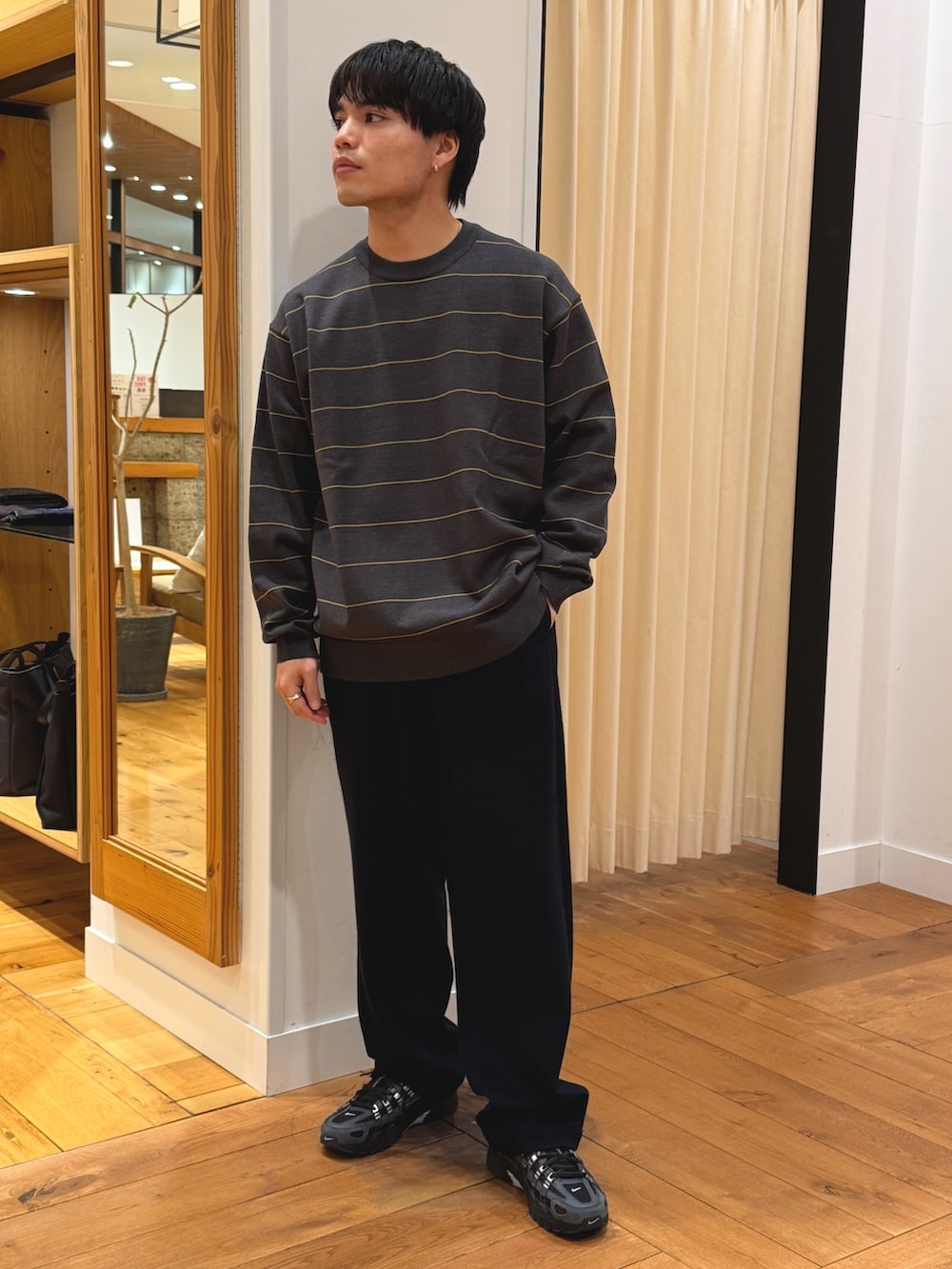 アウターに合わせてLサイズを着用。
