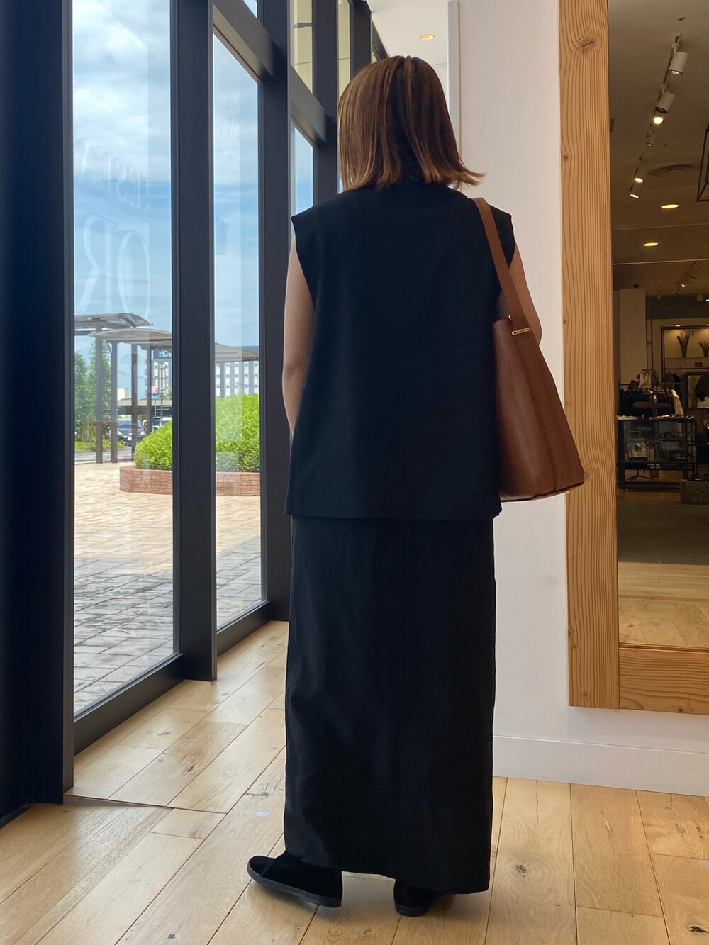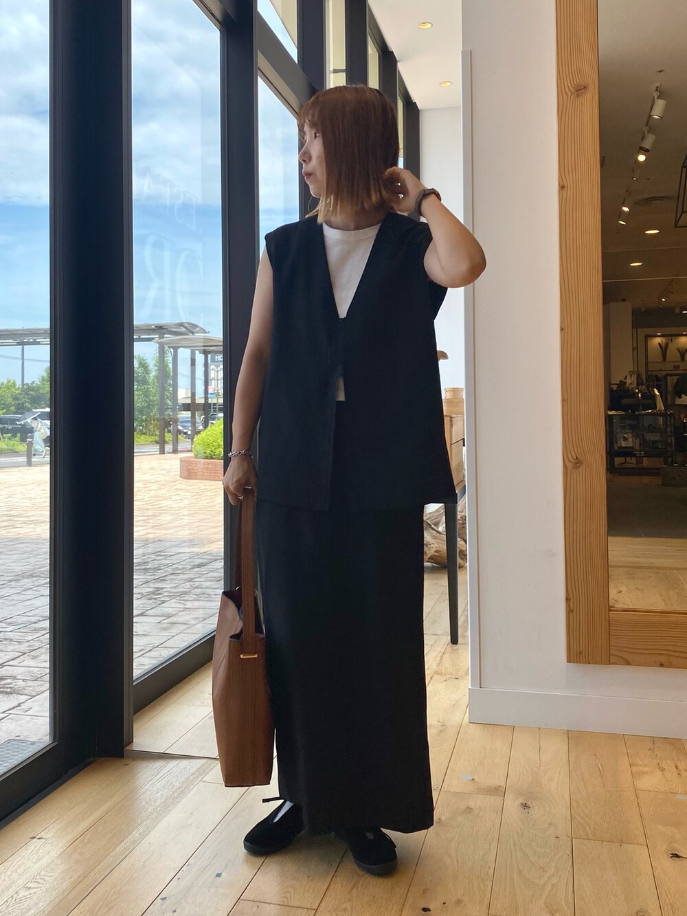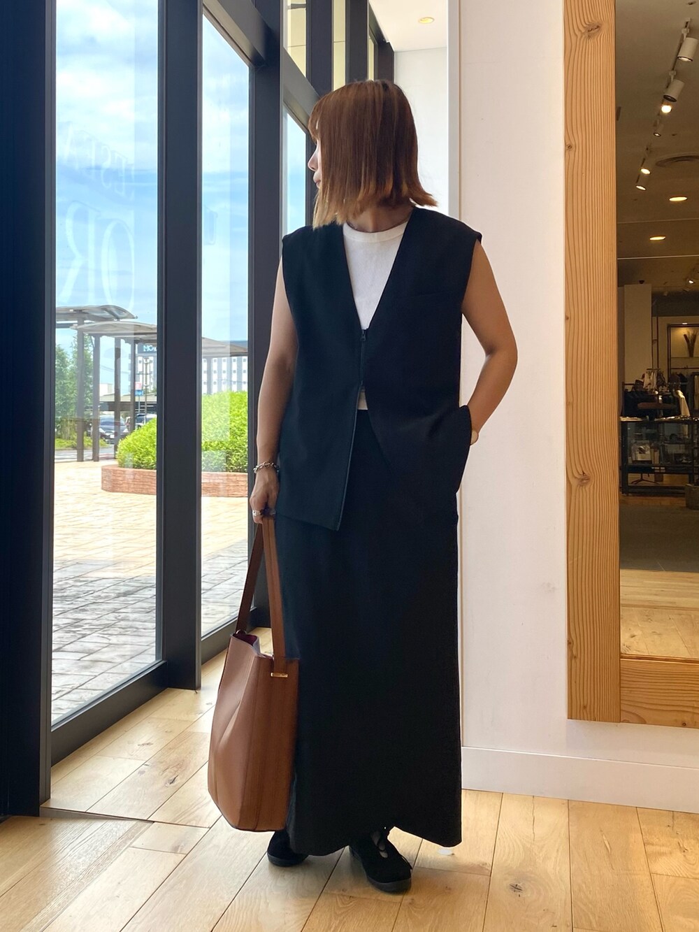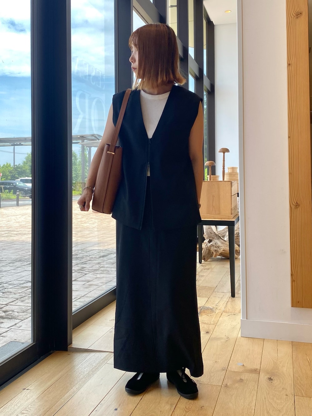フロントZIPベストは前開きでも着られます。暑い夏はタンクトップで合わせて、秋口にはブラウスで合わせて、長いシーズンでお使いいただけます。