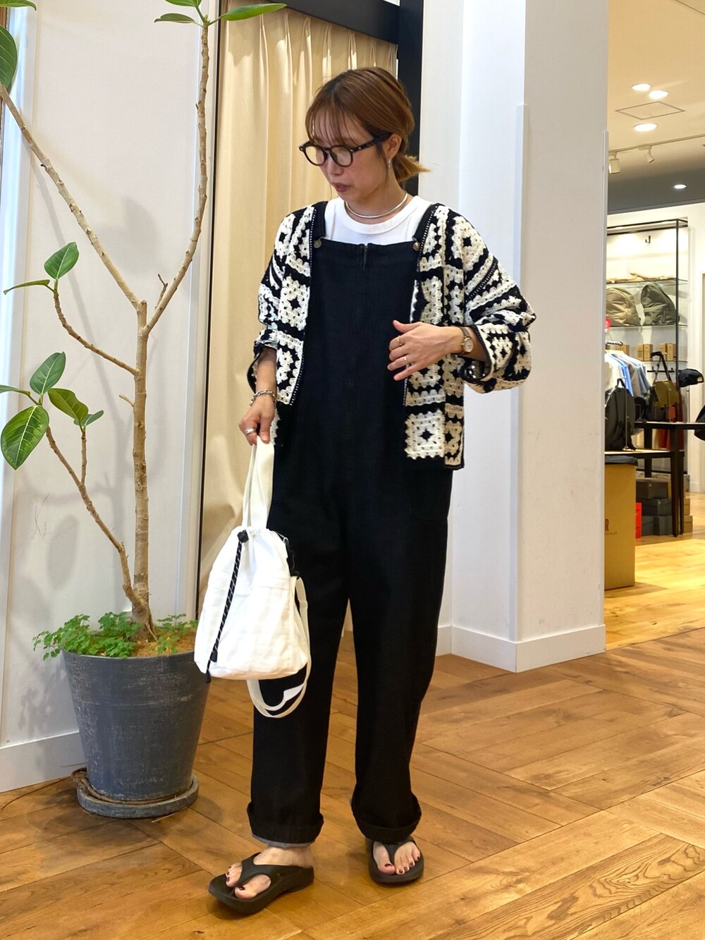 パッチワーククロシェカーディガンをメインにモノトーンで合わせました。