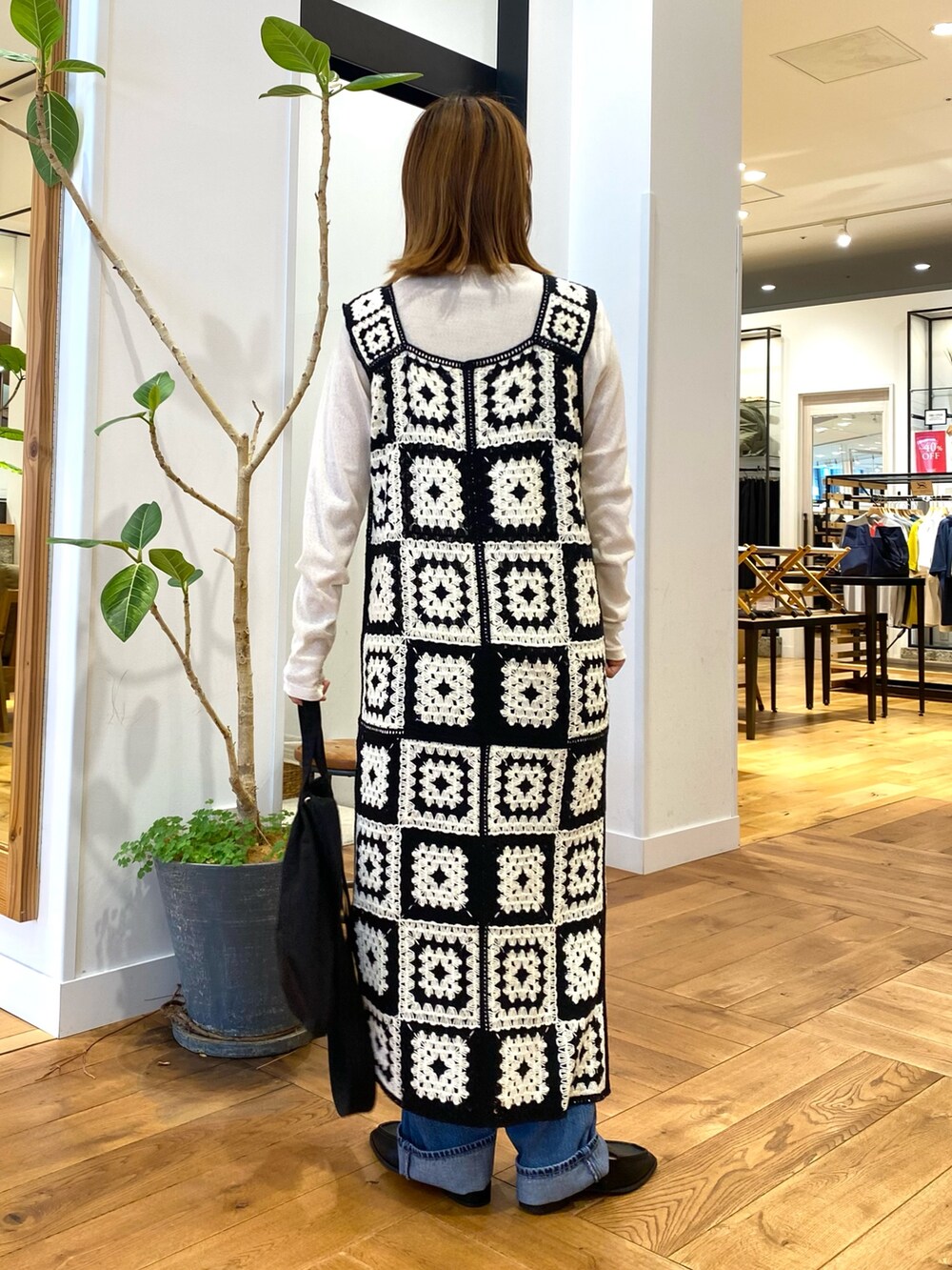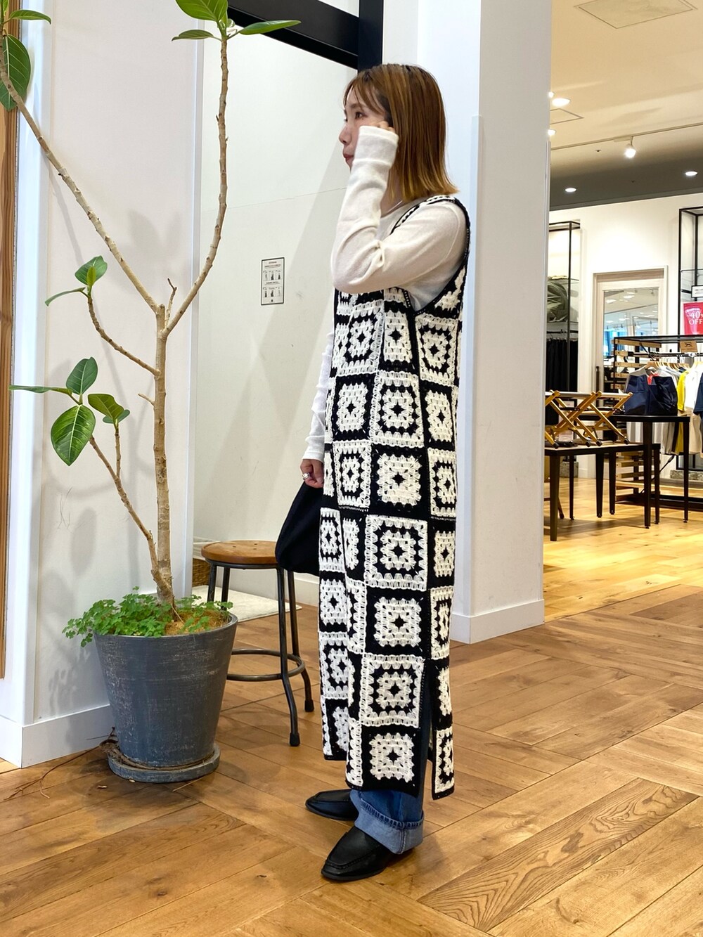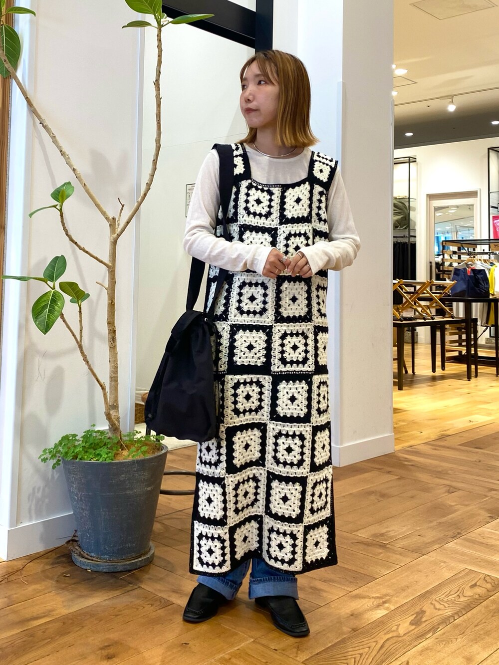 ストレートなシルエットのワンピースはインナーを薄手にしてスッキリと、