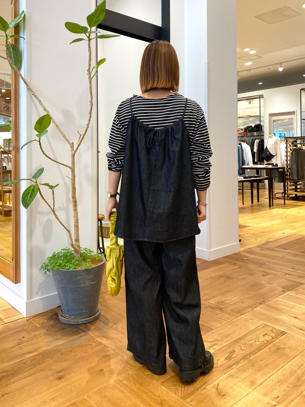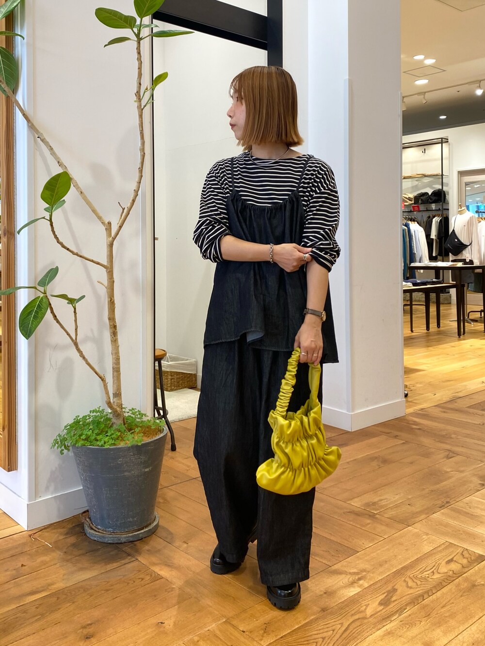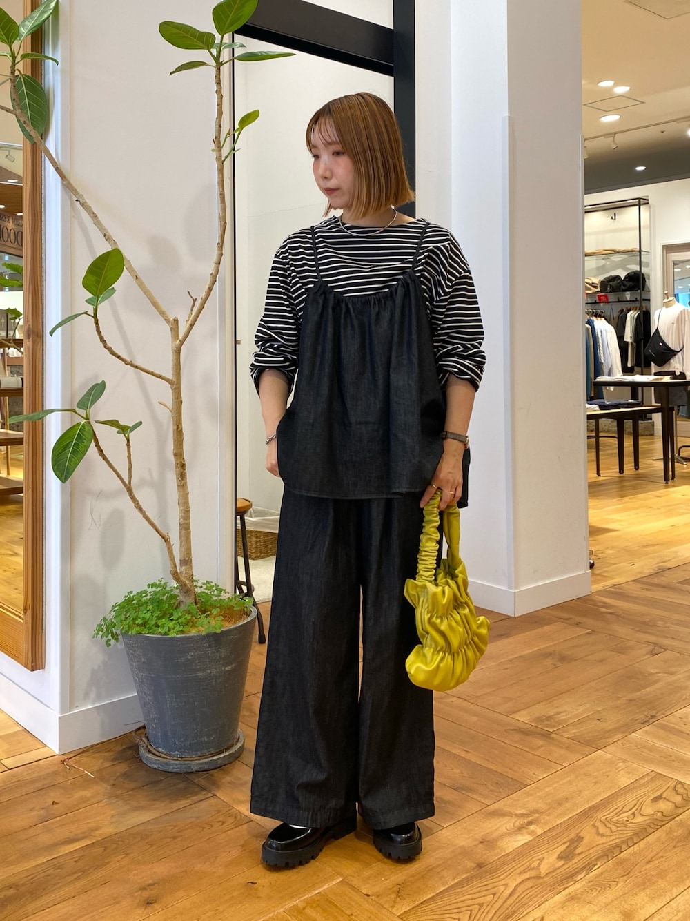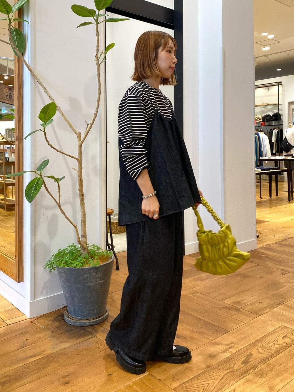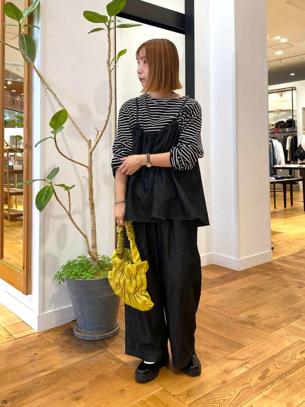 中には黒のボーダーで合わせて秋を先取り。