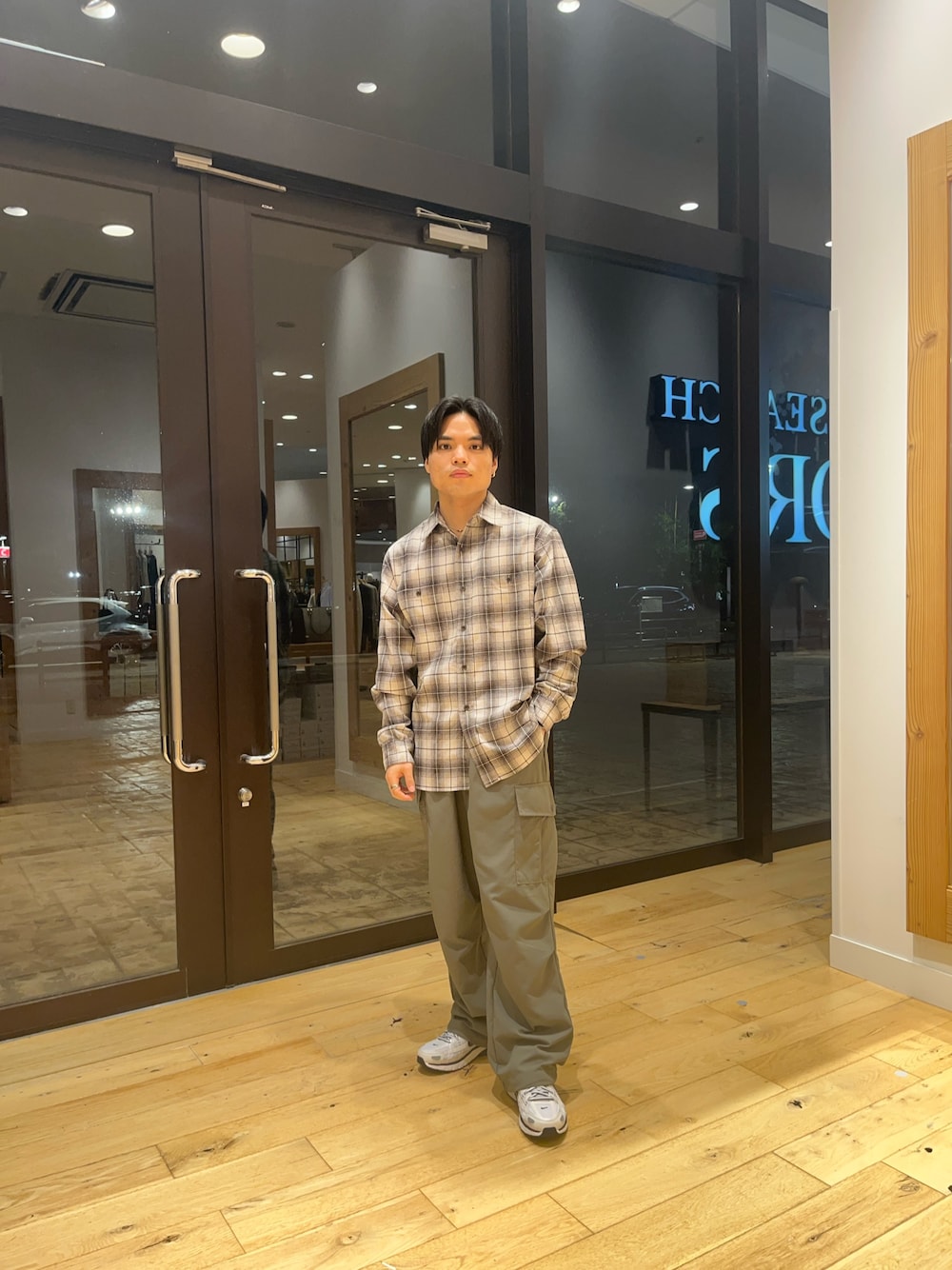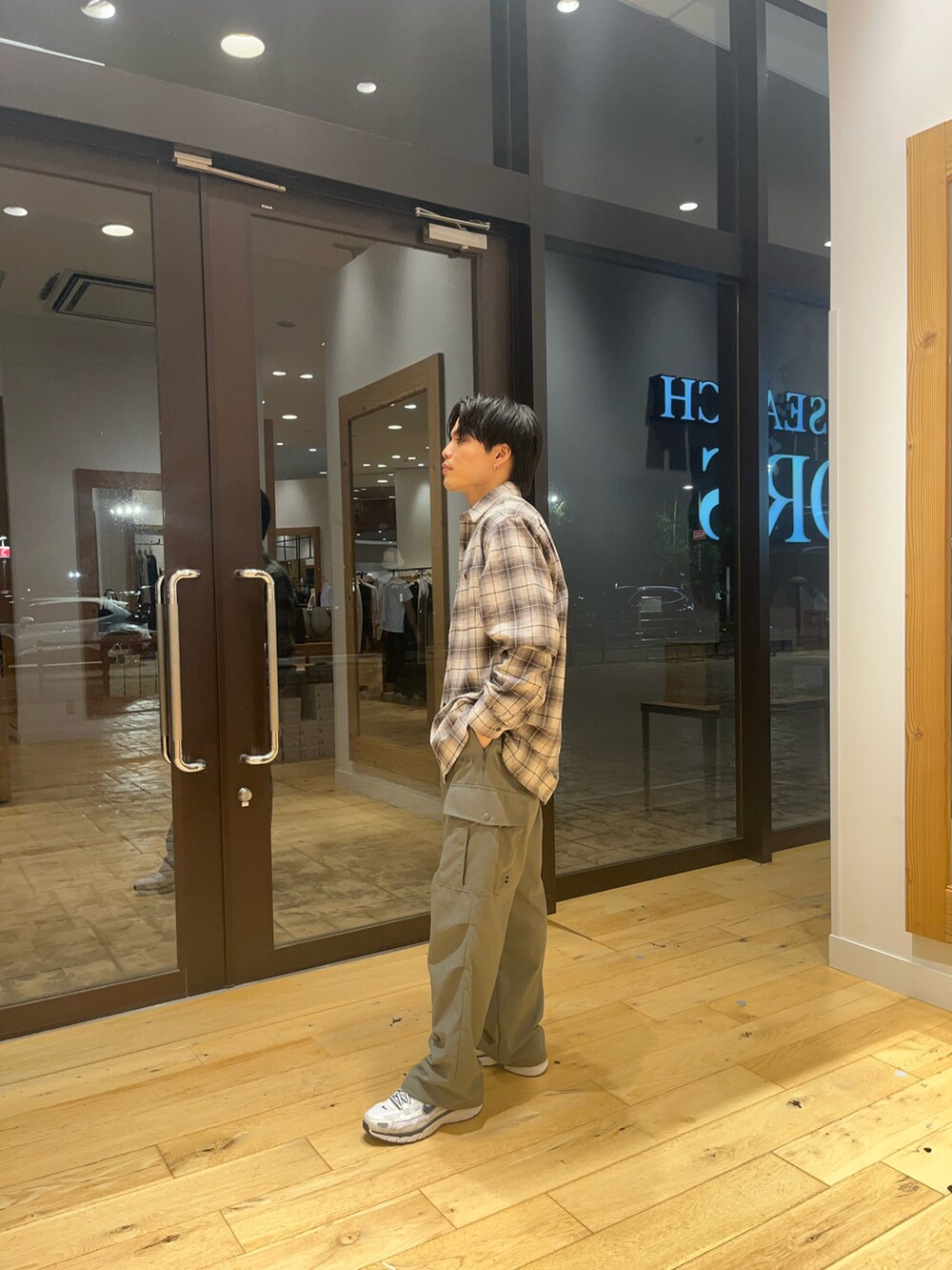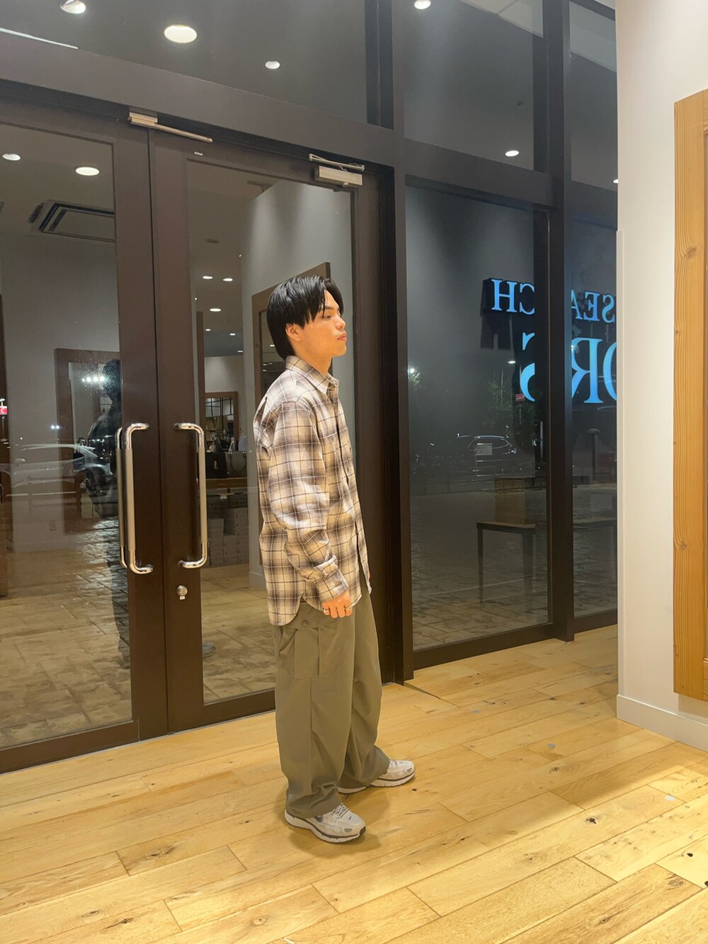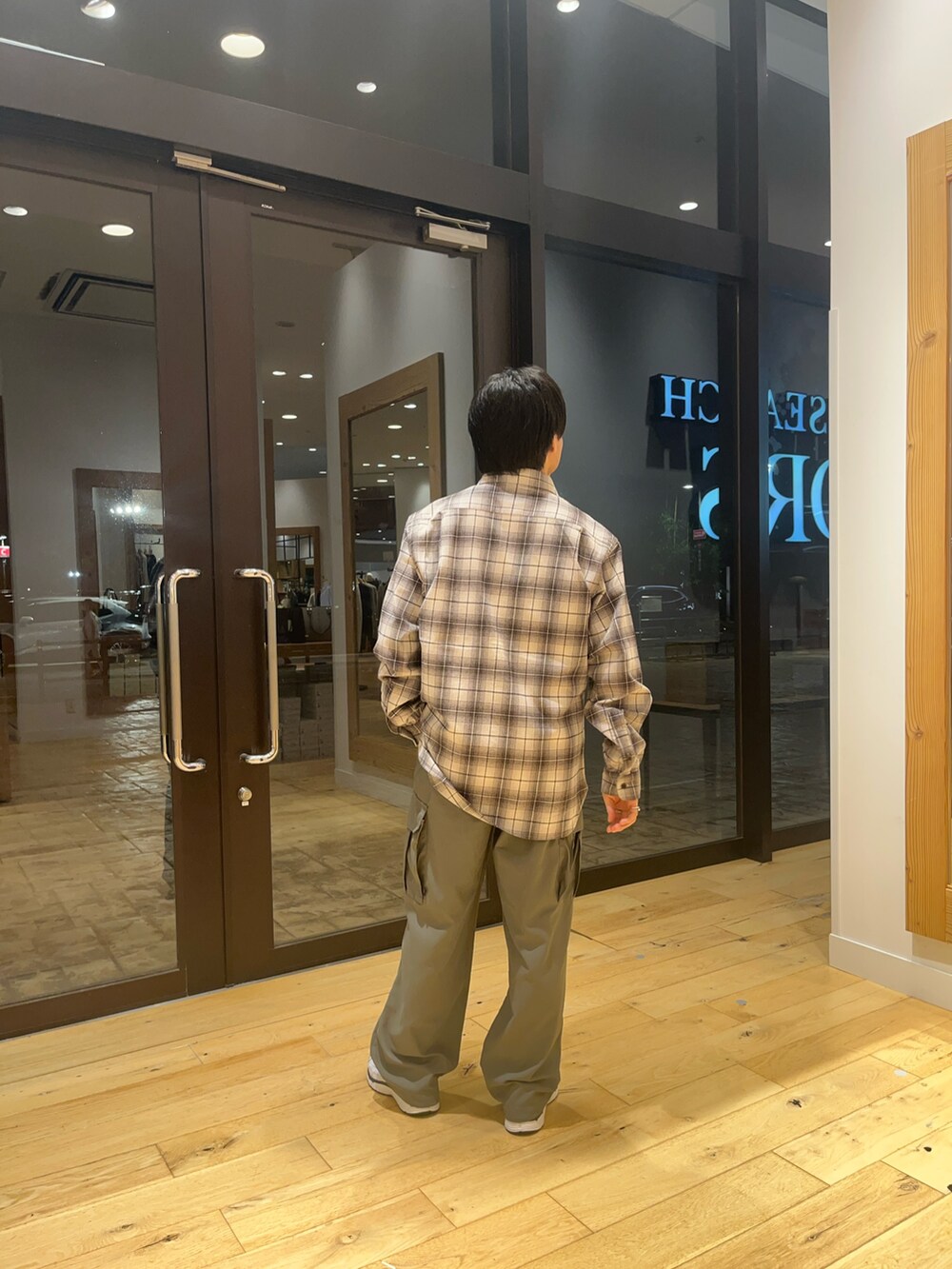 ・ミリタリーデザインのシャツなのでサラッとしてるワイドカーゴと相性抜群!