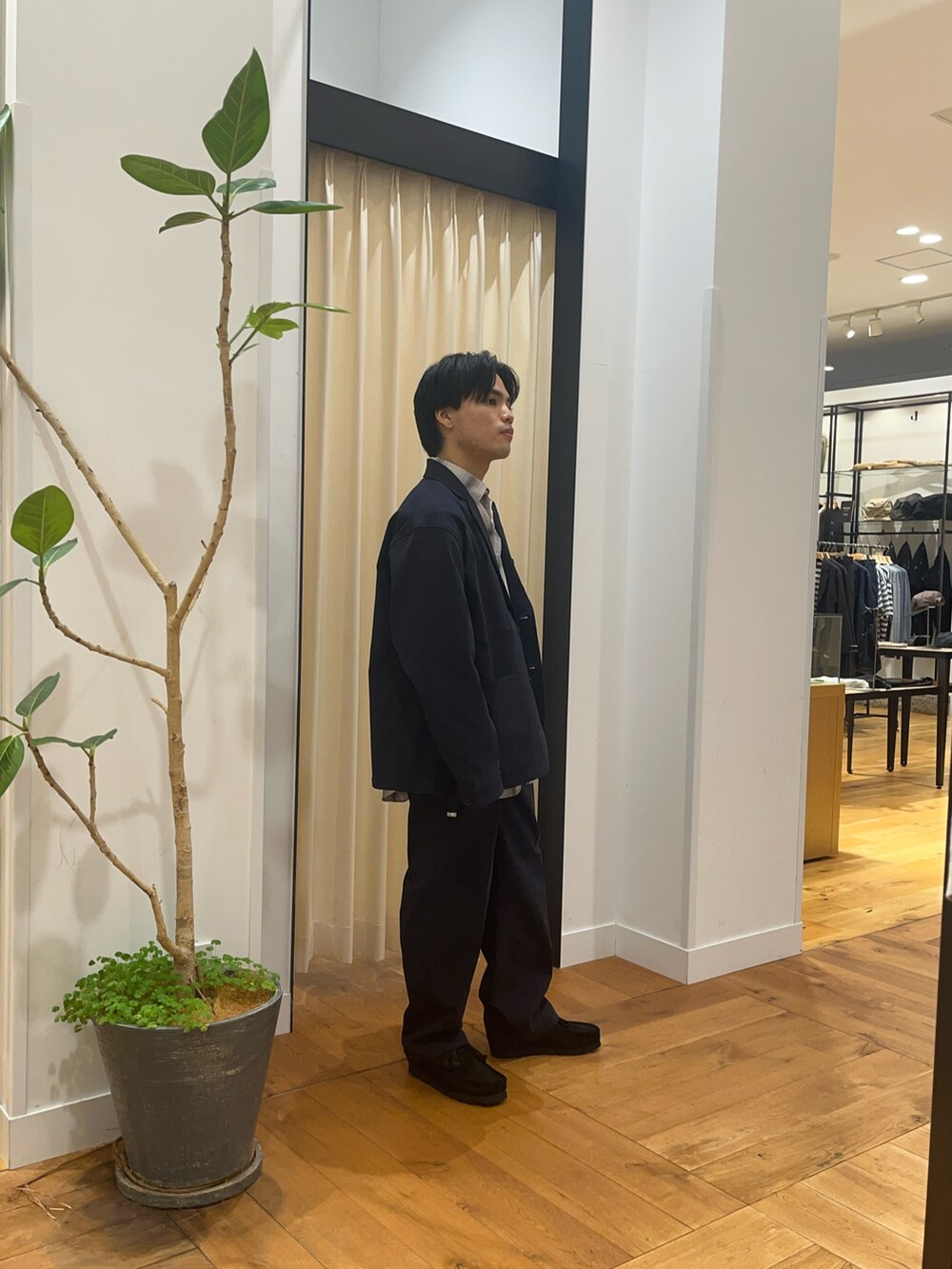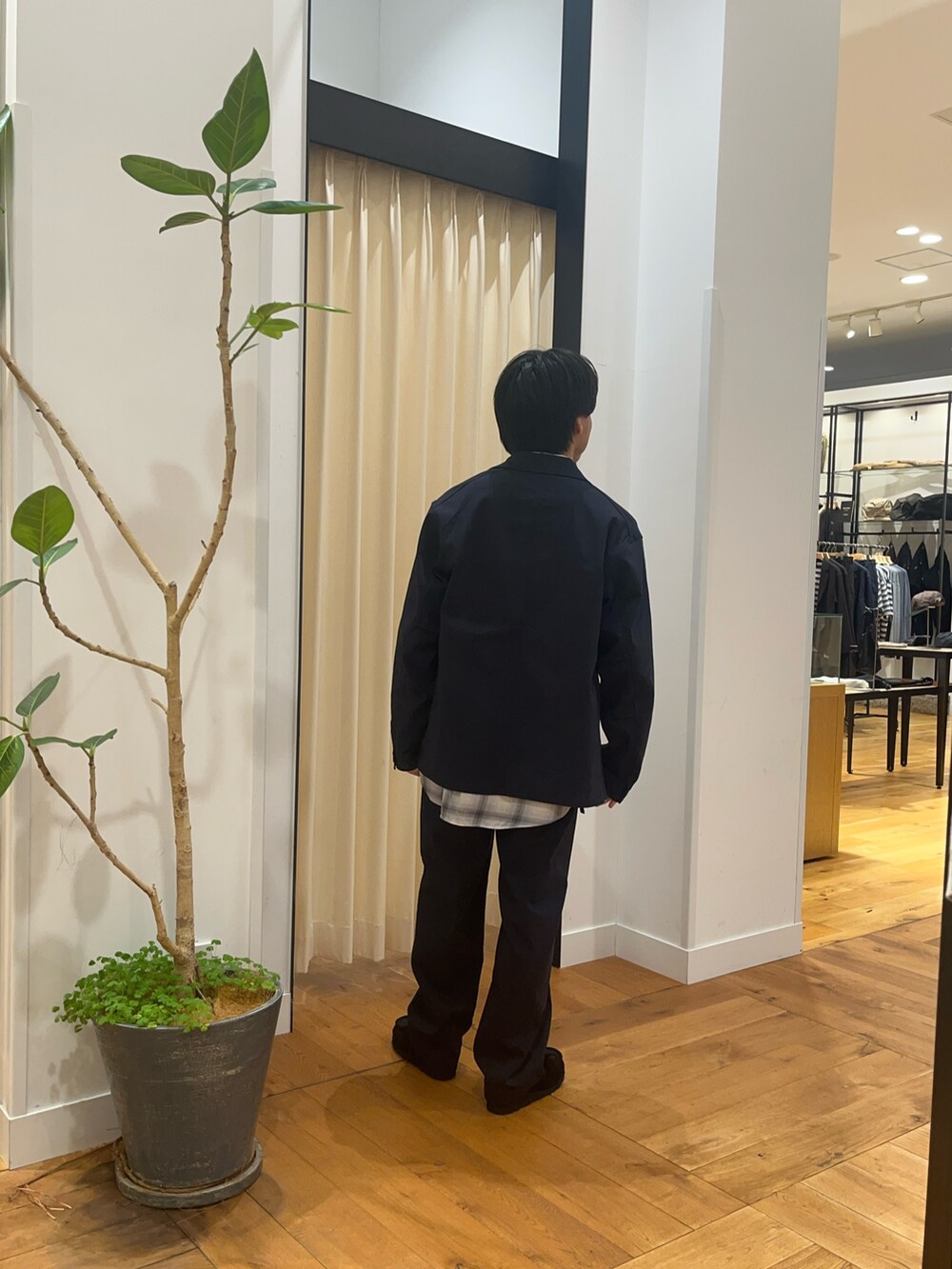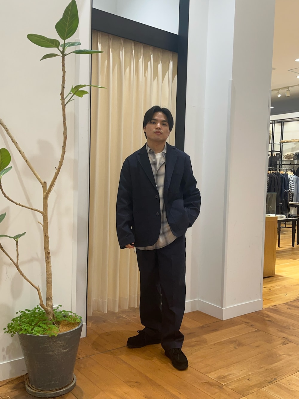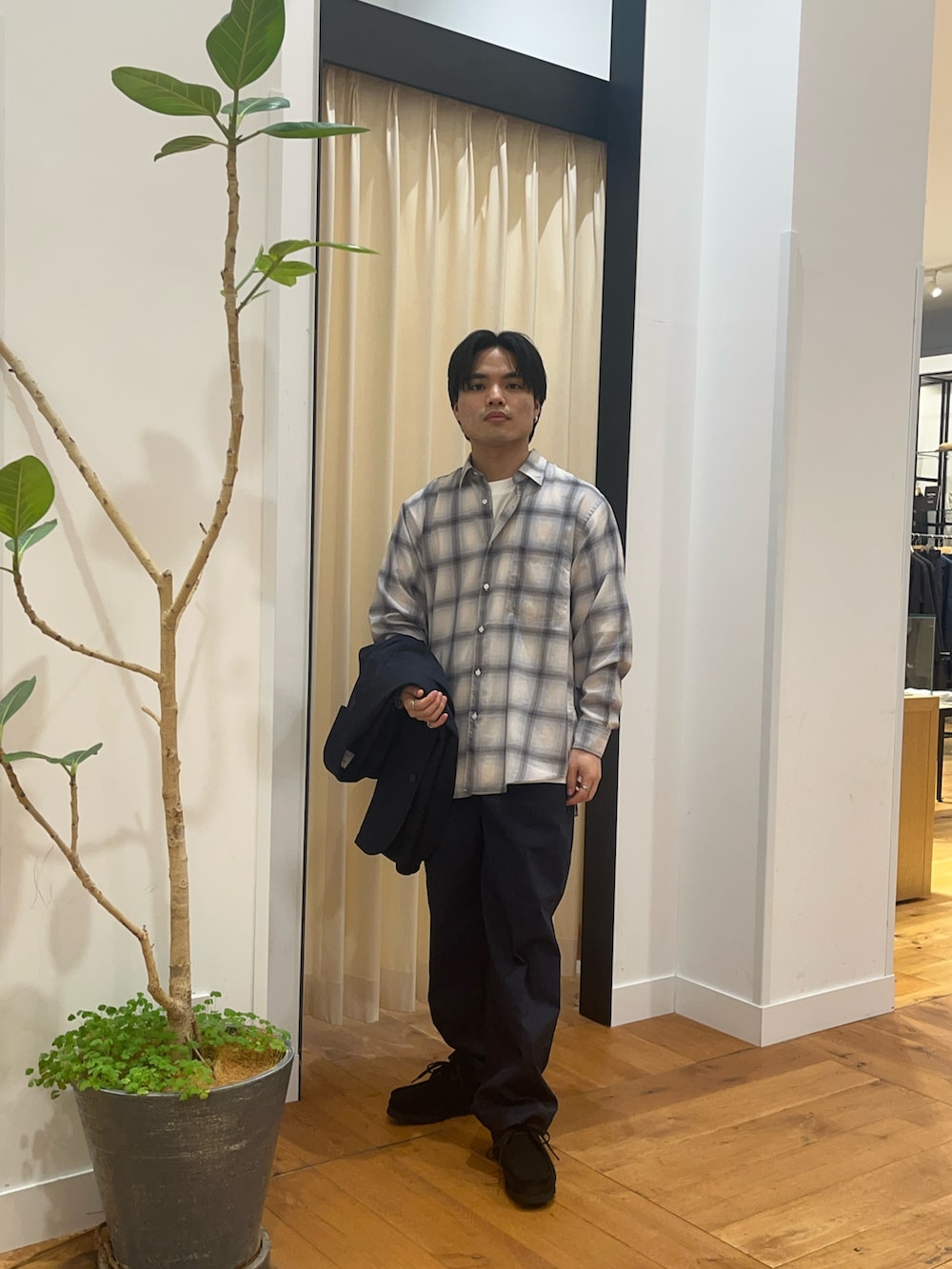 キレイめですが全体的にオーバーサイズでかっちり感を無くしてインナーのチェックで印象を付けてます。