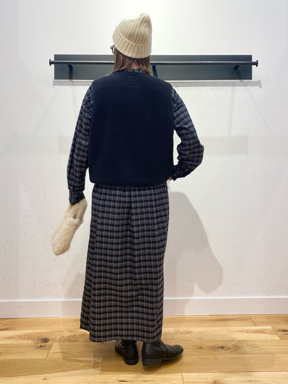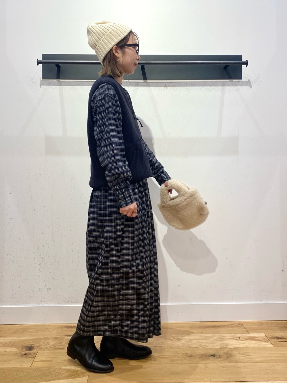 FORK&SPOONのワンピースは甘すぎないチェック柄でウエストの切り替えで程良いギャザーのふんわりボリュームのあるシルエット。