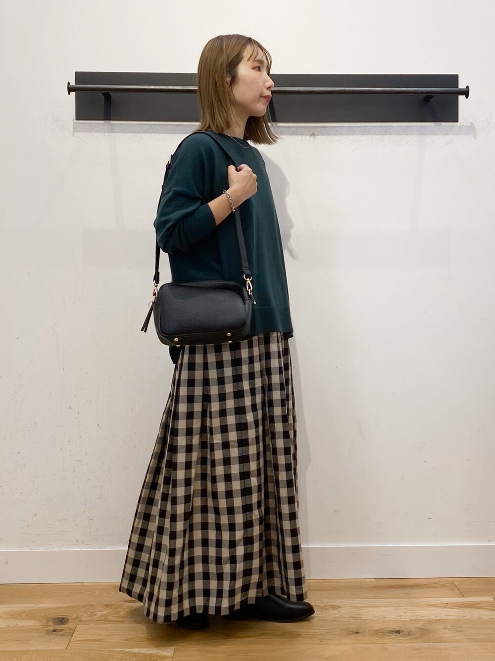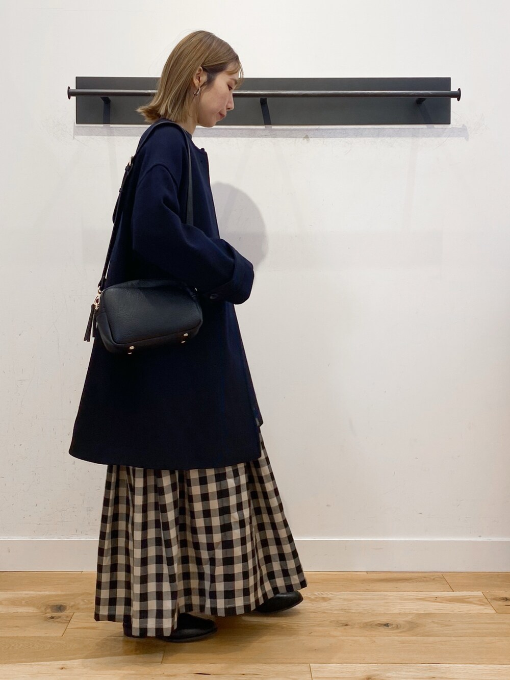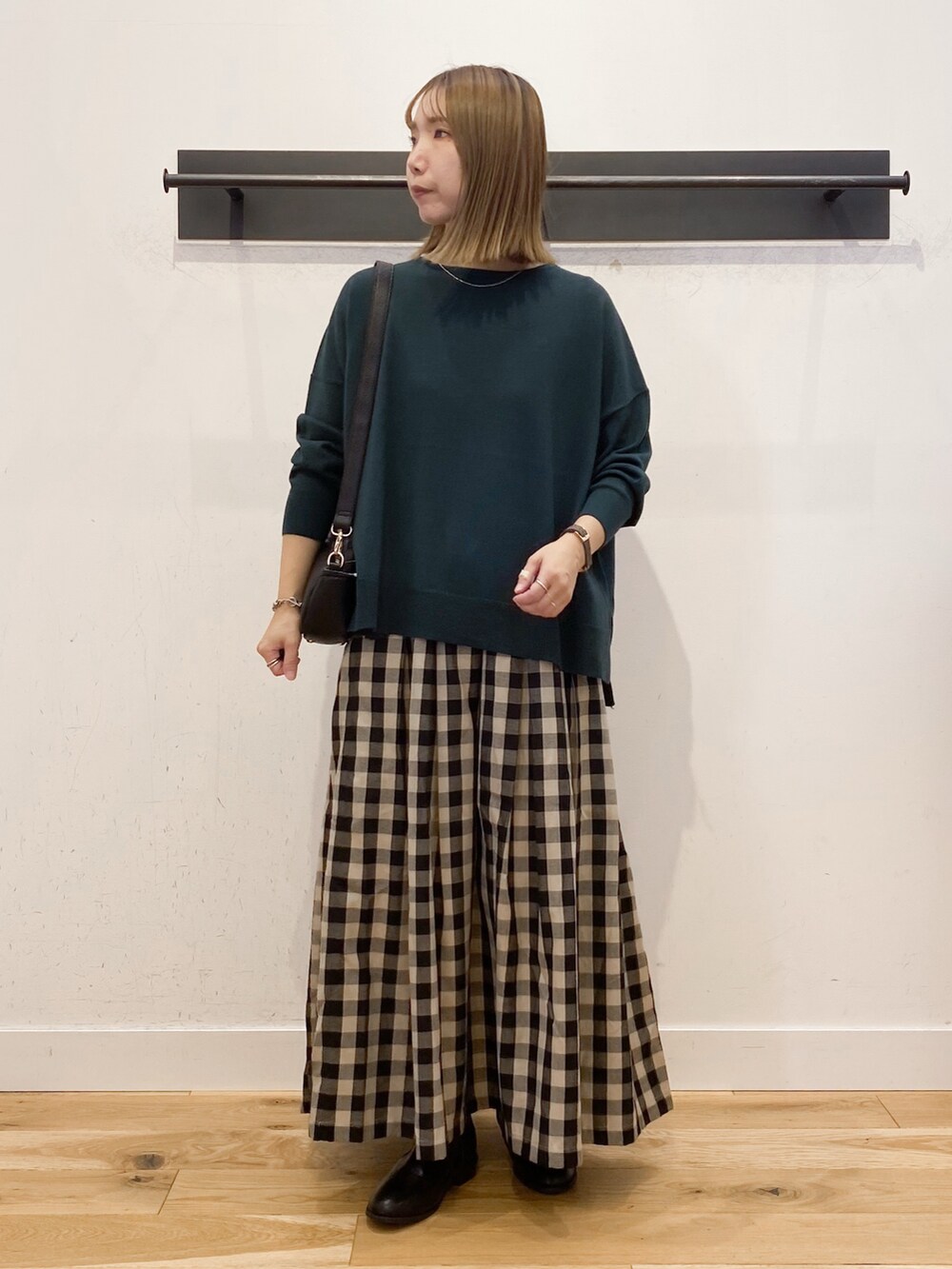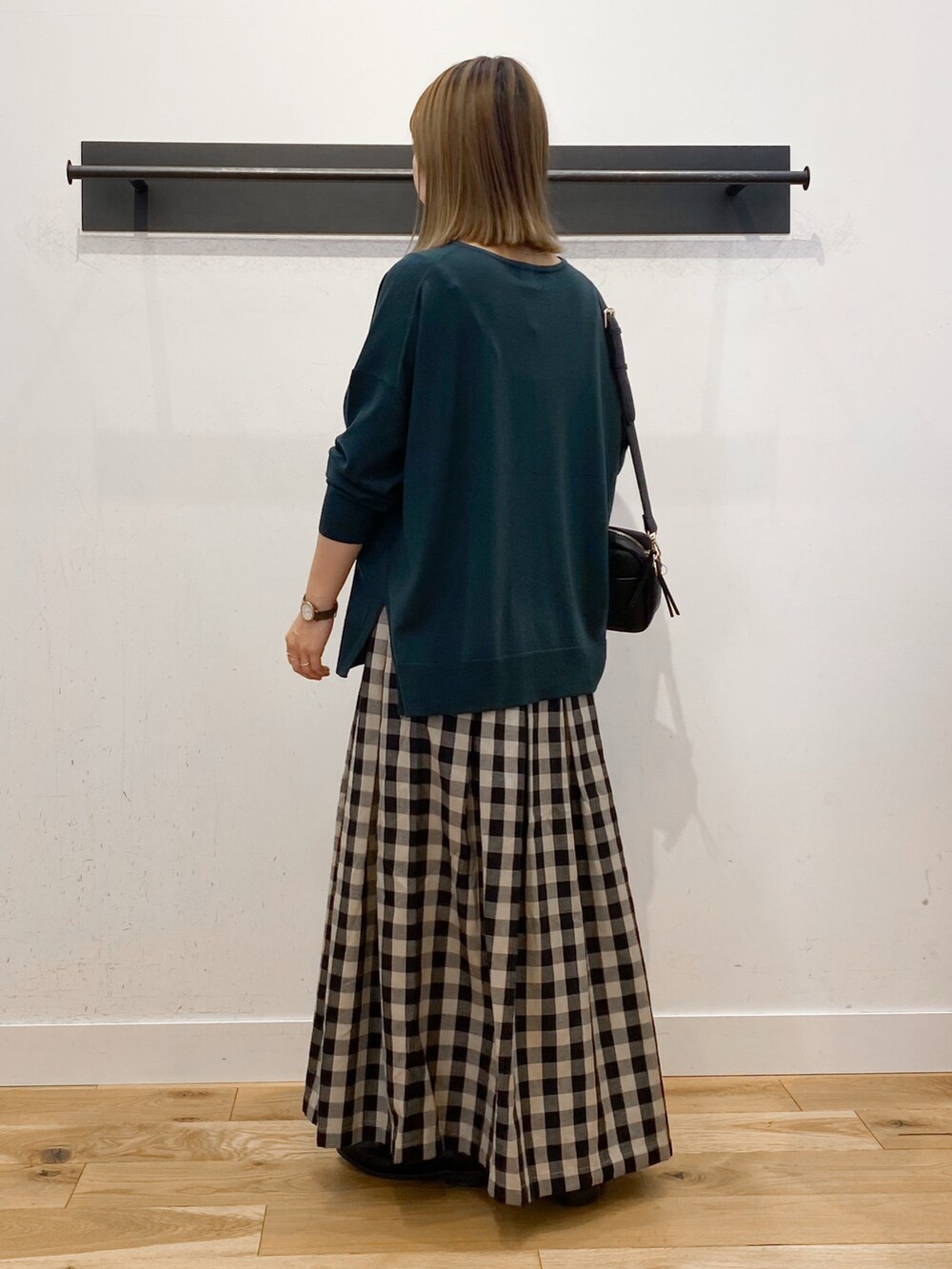 スカートはボリュームがあってふんわりとしたシルエット。ブロックチェックで可愛すぎず取り入れやすいチェックです!