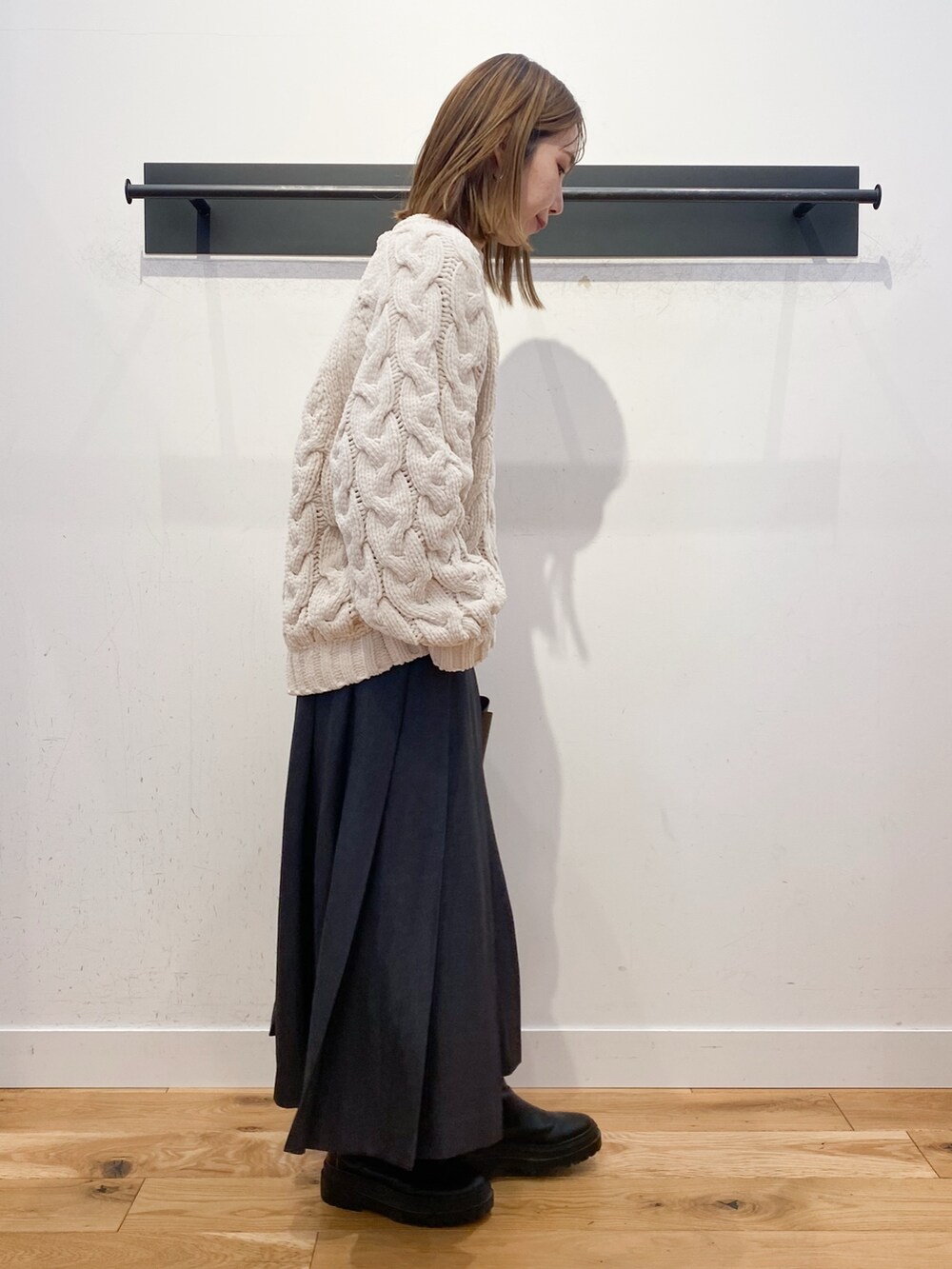 スカートは広がらないシルエットで、ストンと落ちるのですっきりとして合わせやすいのでおすすめです!リアルバイ候補です!!