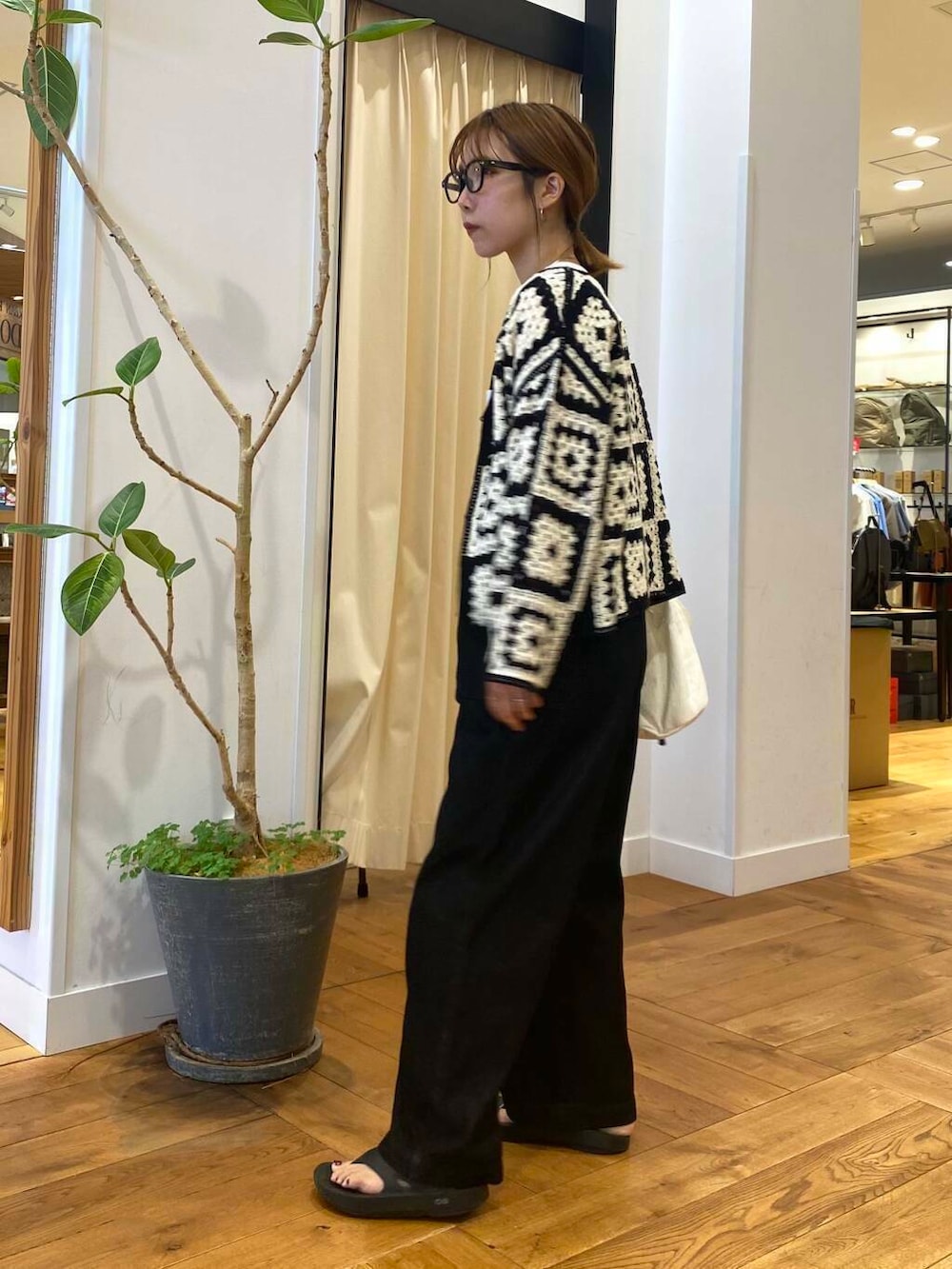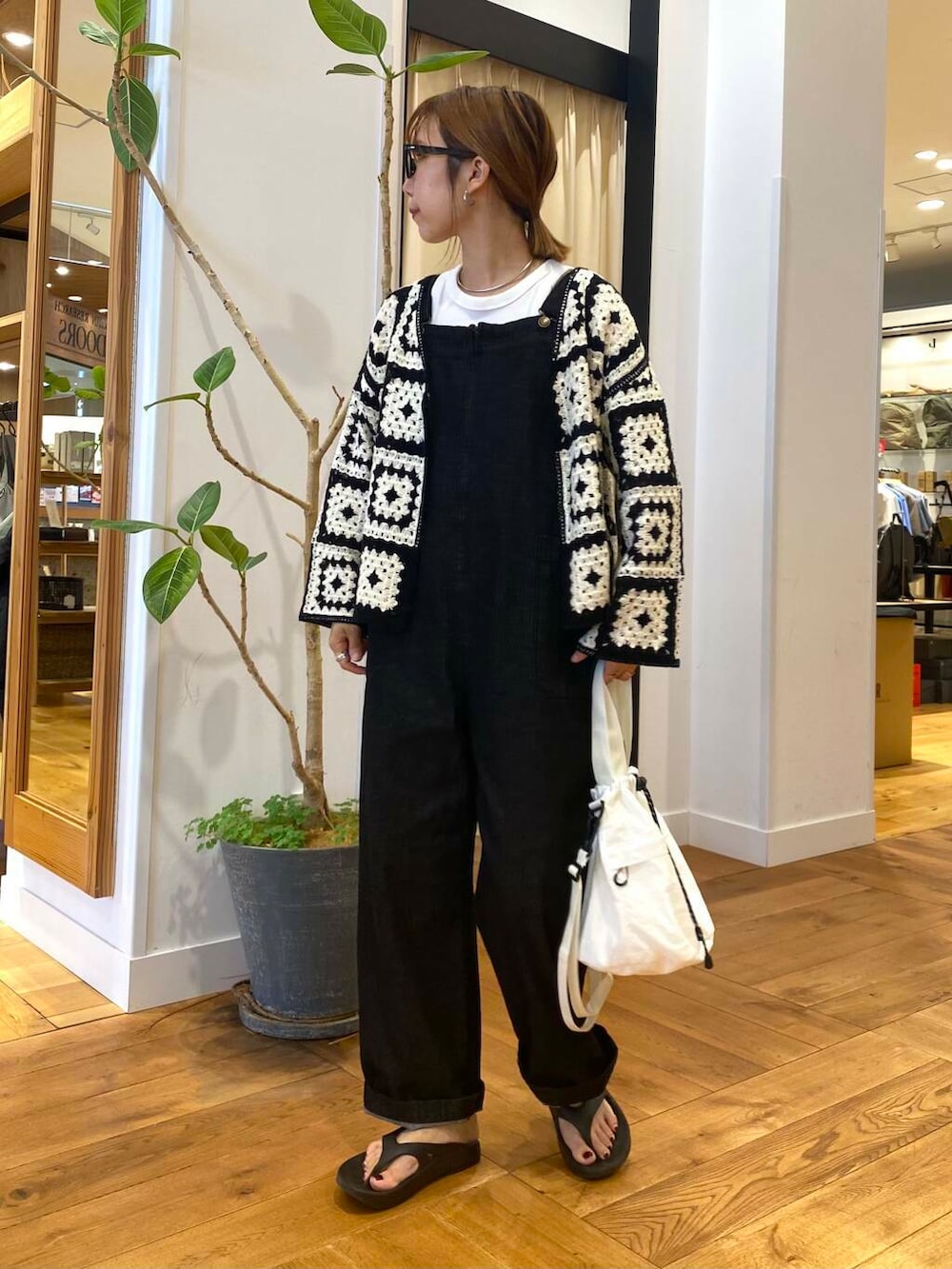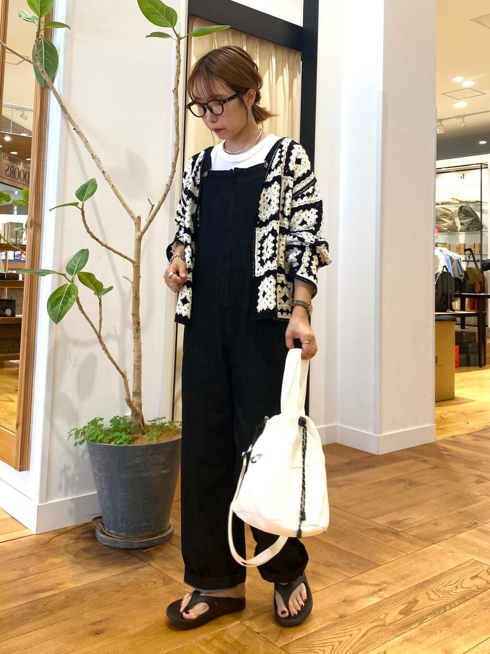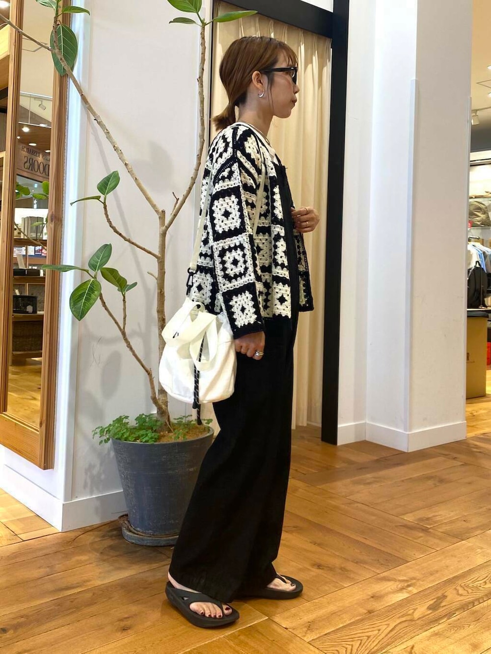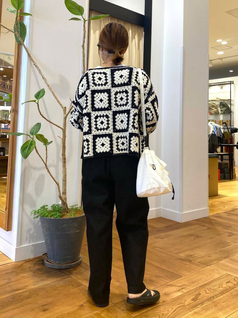 パッチワーククロシェカーディガンをメインにモノトーンで合わせました。
