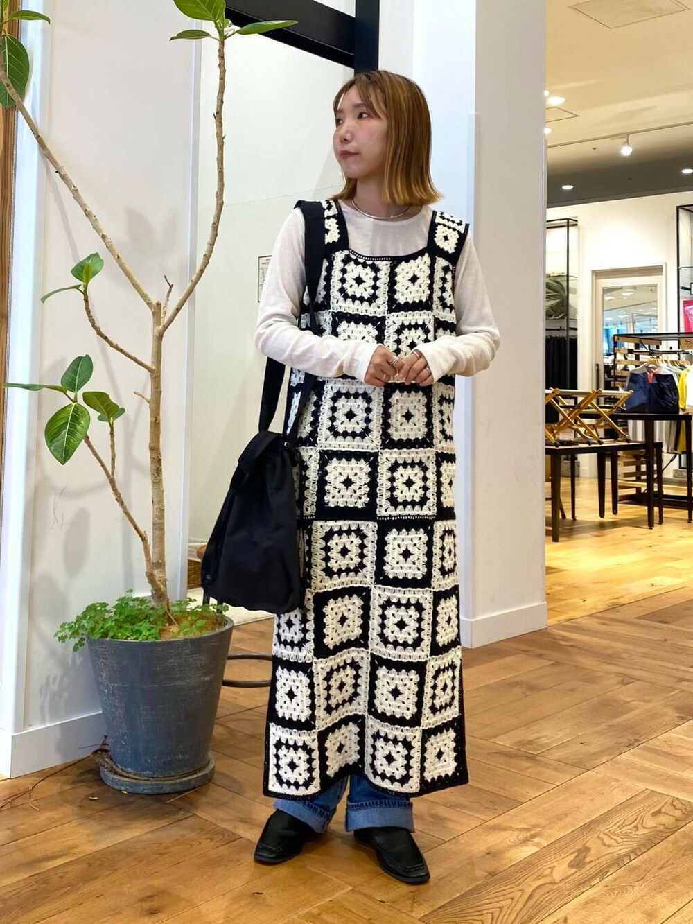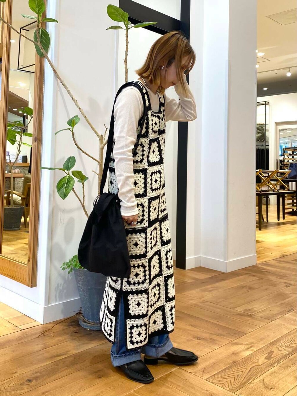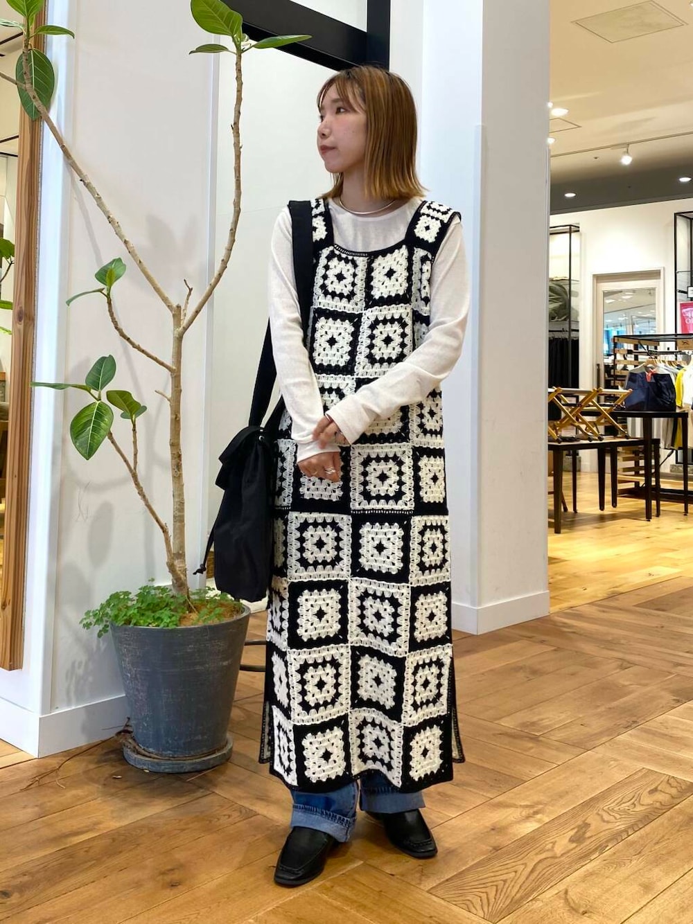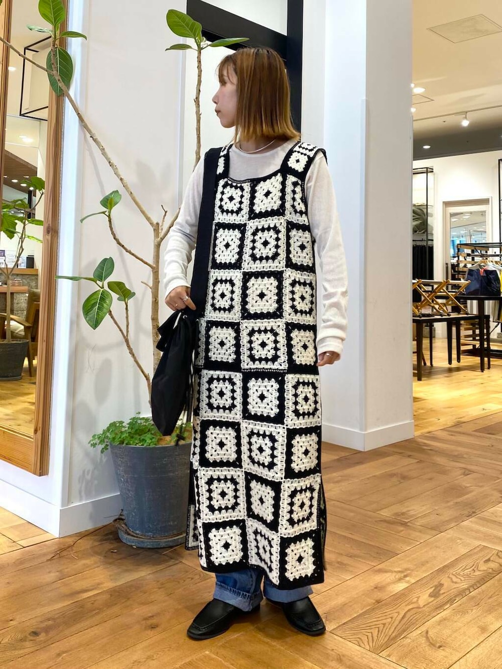 ストレートなシルエットのワンピースはインナーを薄手にしてスッキリと、