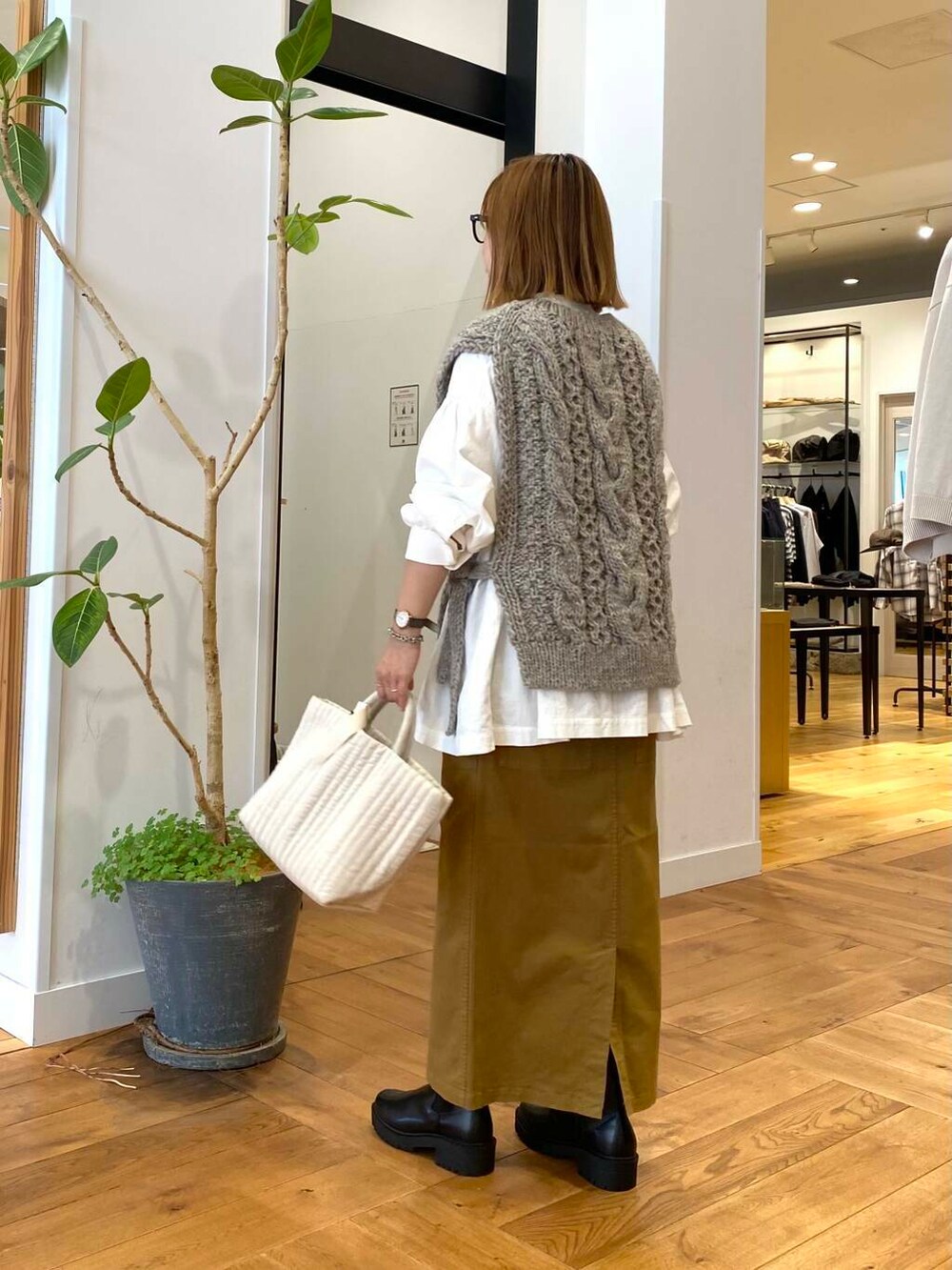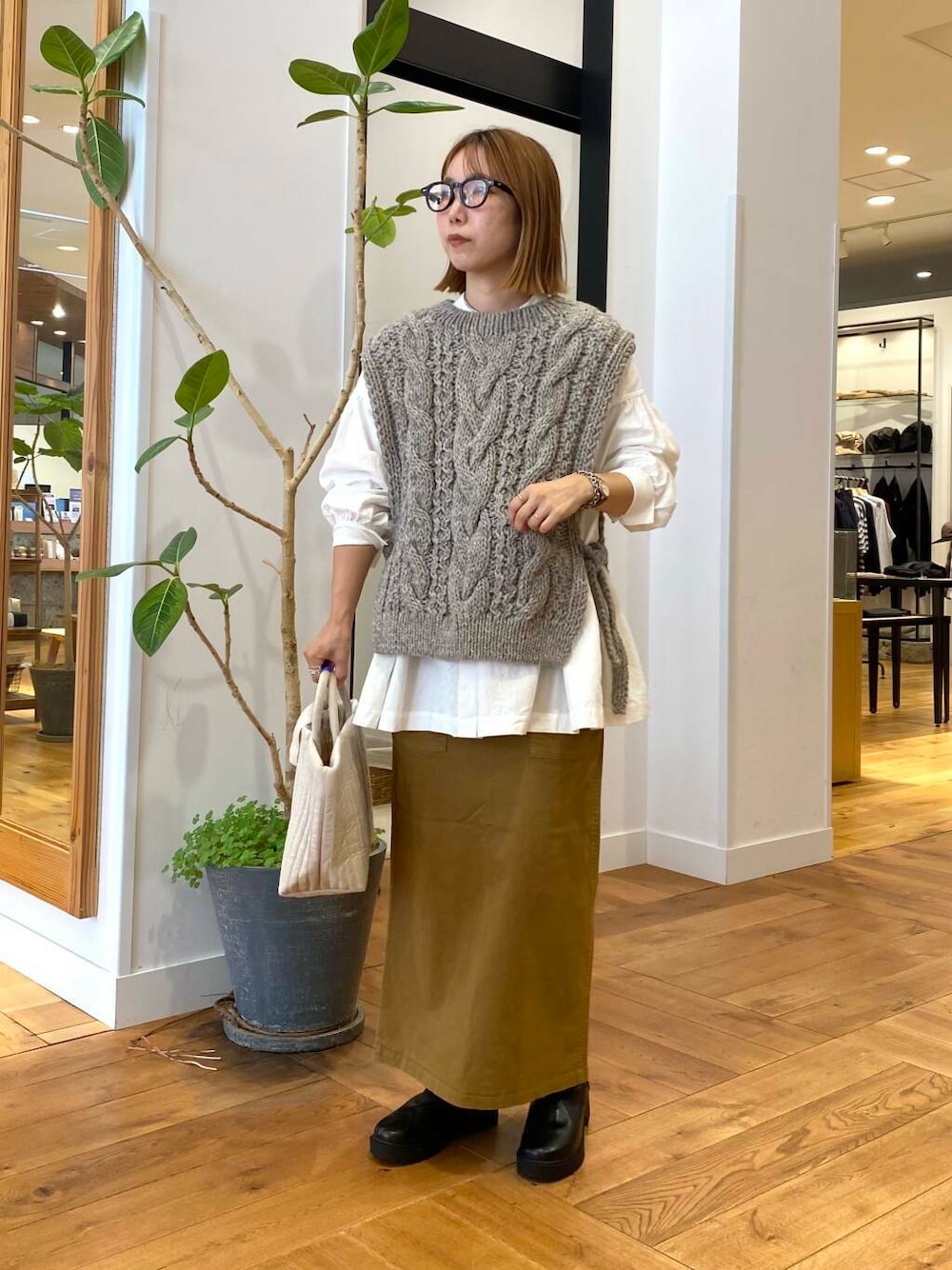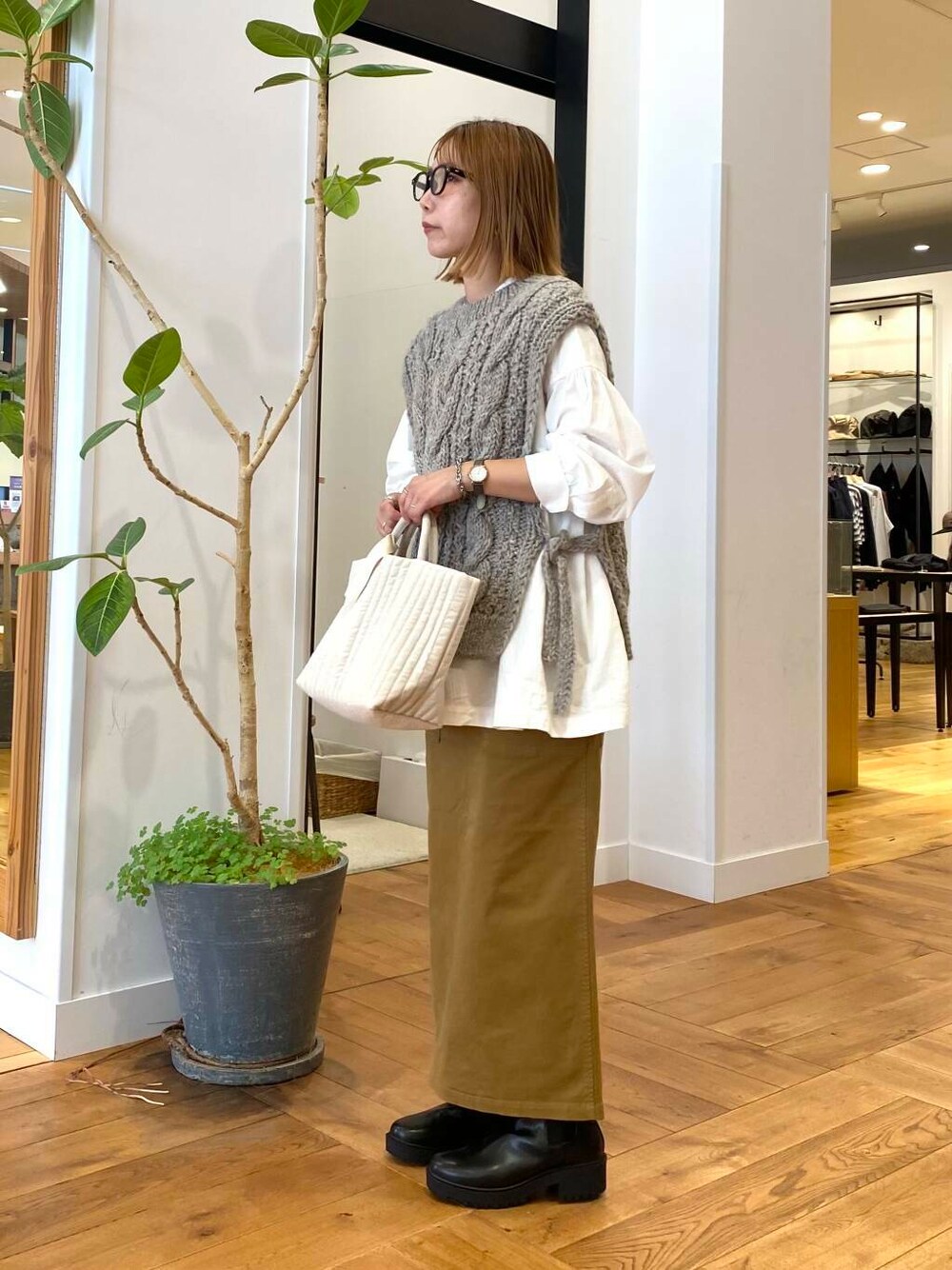 ボトムスはタイトスカートでメリハリをつけて秋冬らしいカラーでコーディネートしました◎