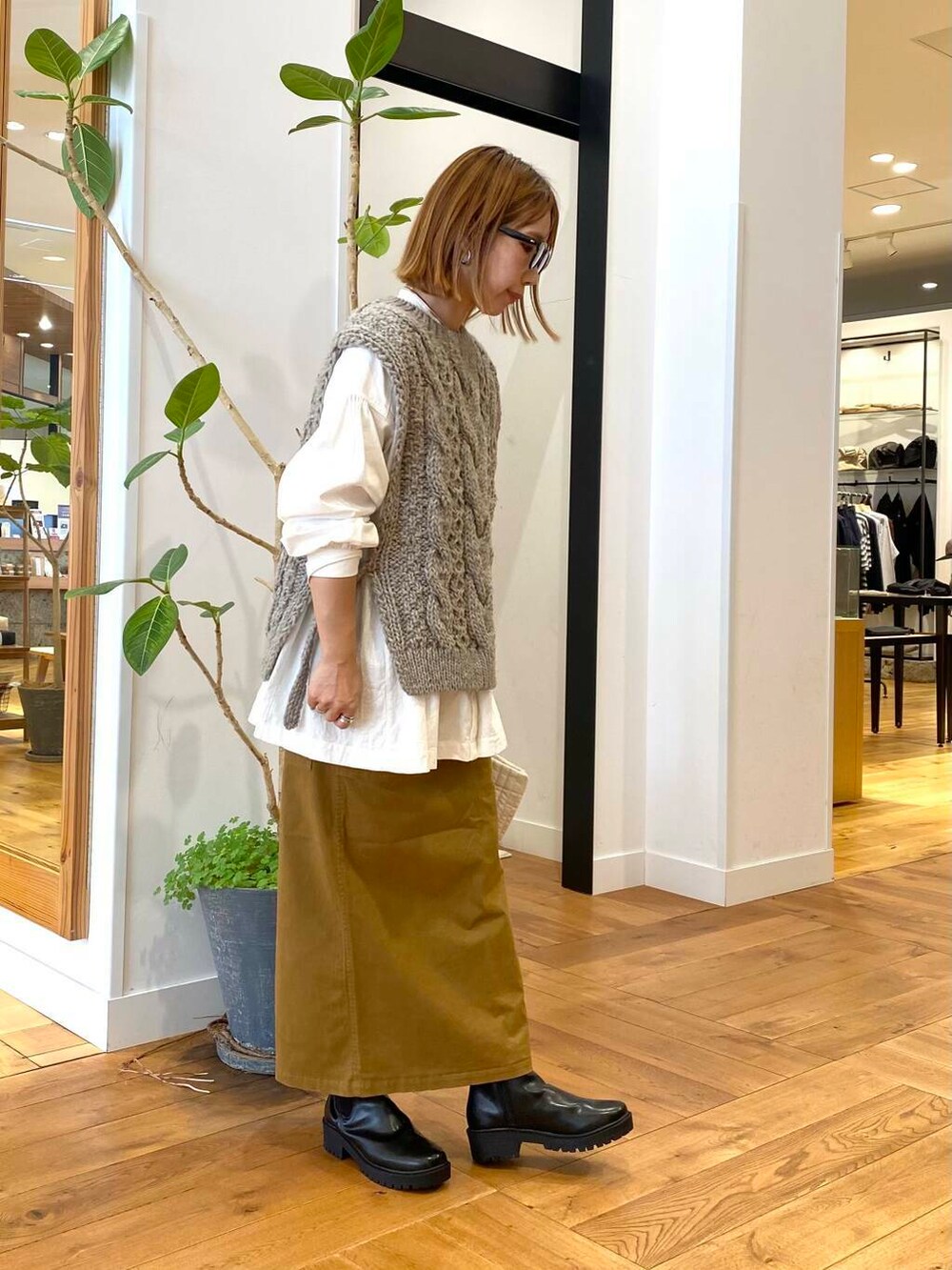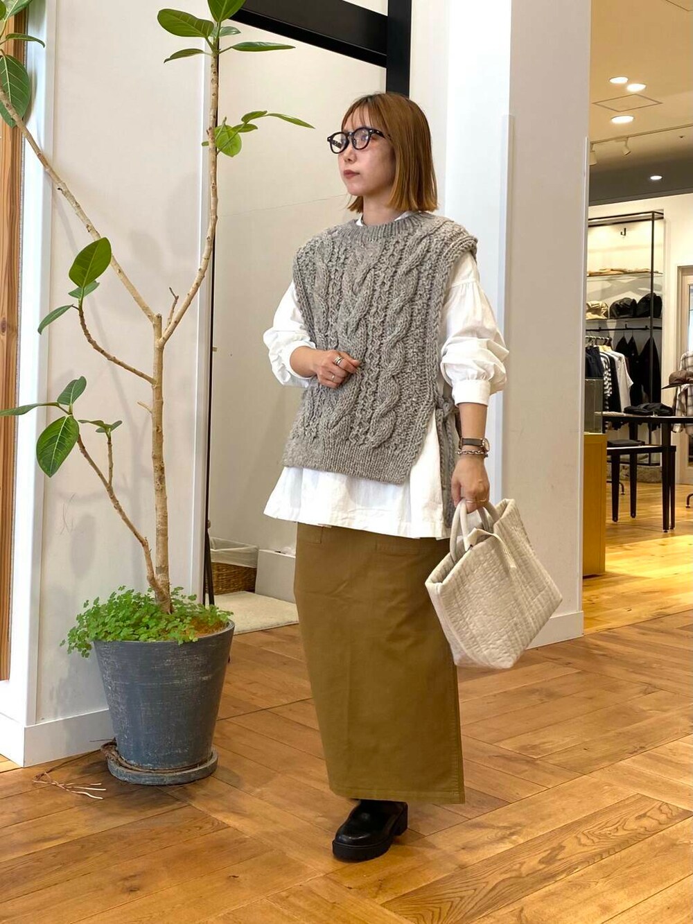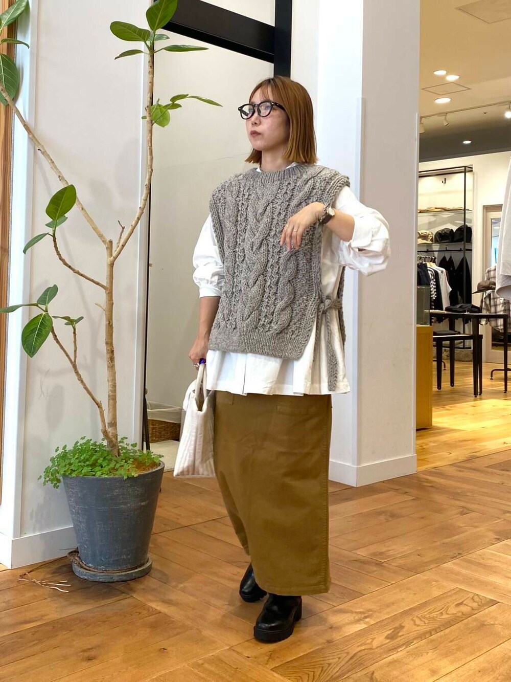 ボトムスはタイトスカートでメリハリをつけて秋冬らしいカラーでコーディネートしました◎