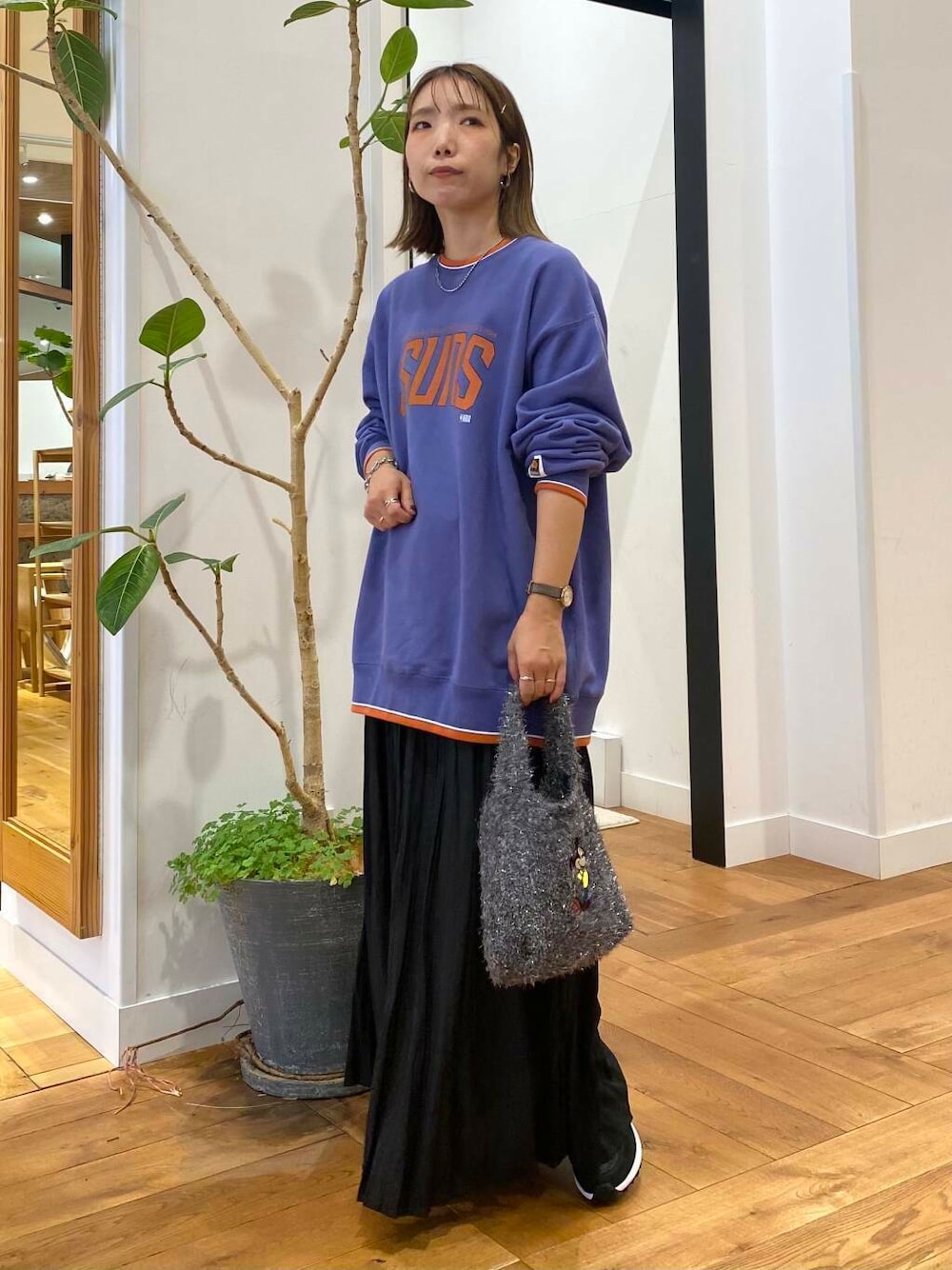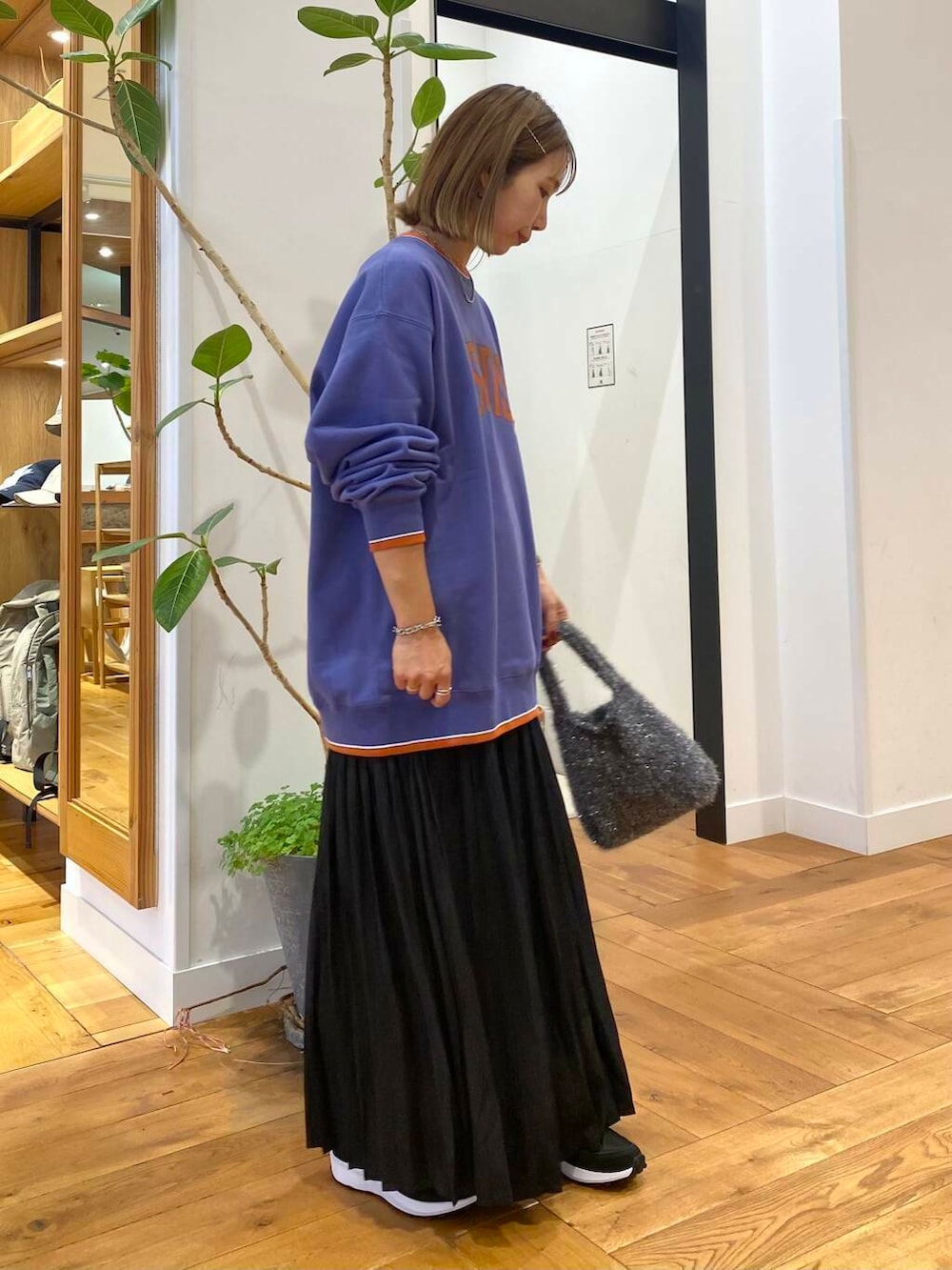 スカートで合わせることによって女性らしさもありつつ、RODESKOのミッキーラメバッグを持つことによって若々しいコーデに、、🐭!!