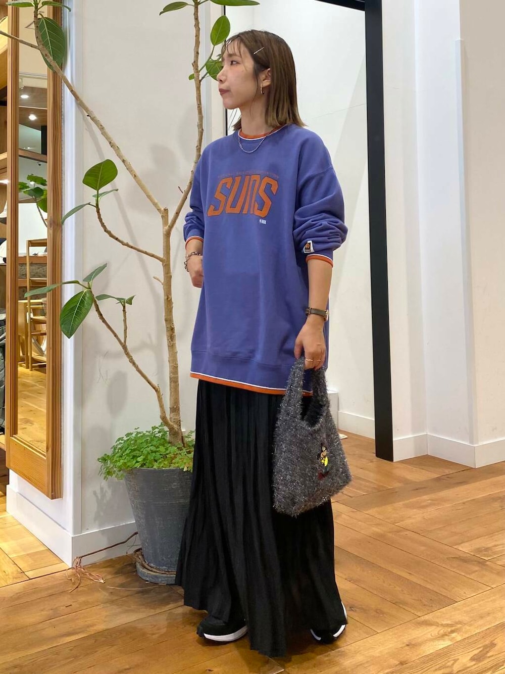 NBAコラボのメンズスウェットを着用しました!配色がかわいいSUNSをチョイス!サイズはLサイズですが個人的には好きなサイズ感でした⛹️お揃いでもおおすめです⛹️♀️