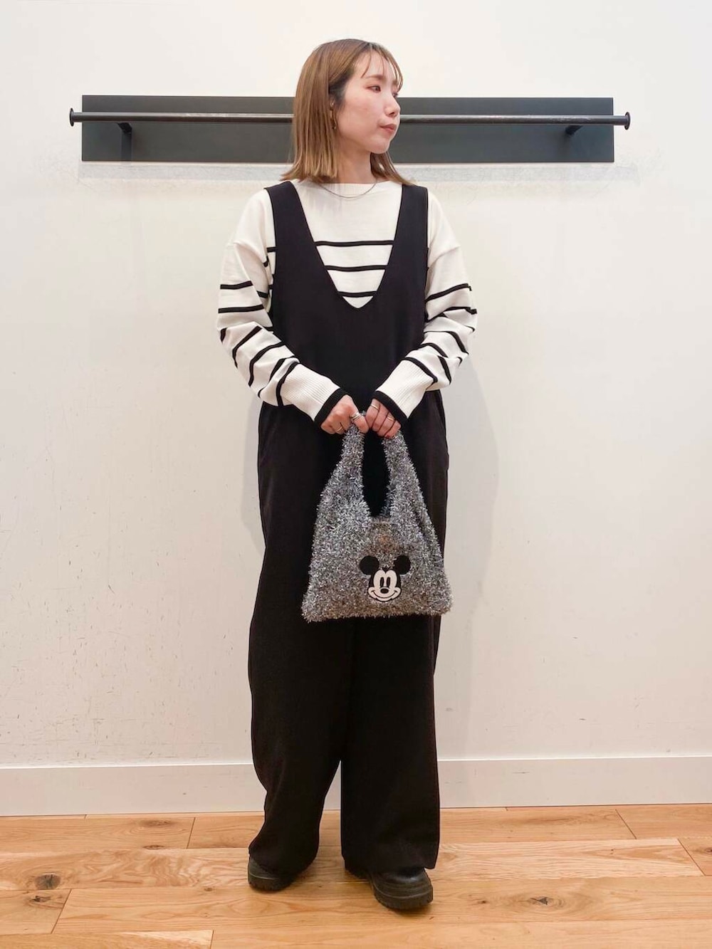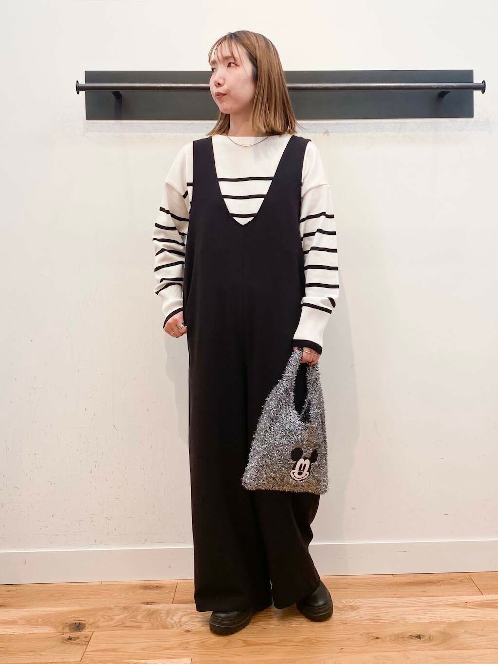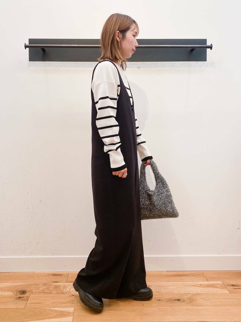FORK&SPOONのUネックサロペットは薄手でごわつかないので動きやすく、春先まで長いシーズンお使いいただけます。