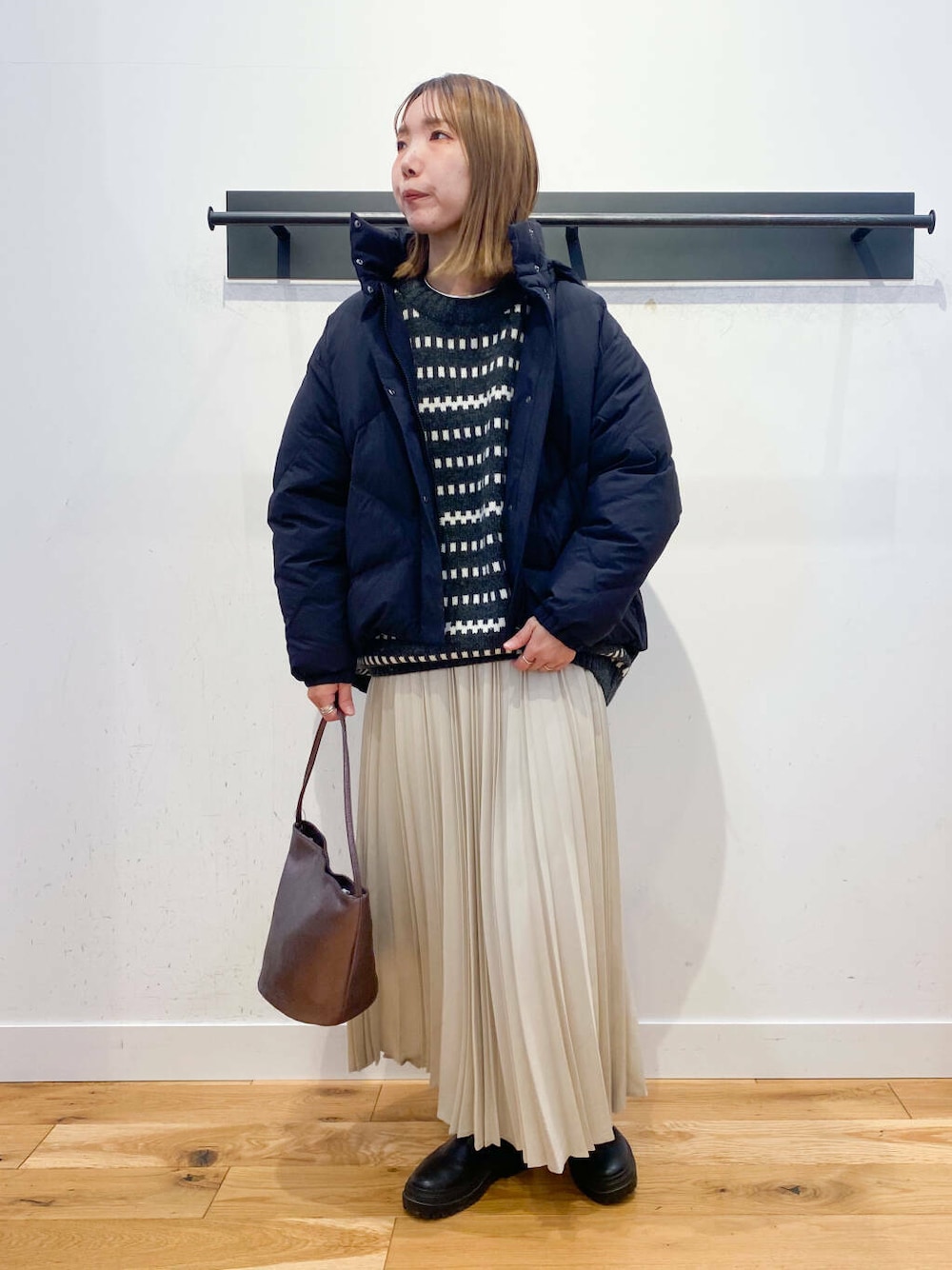 アウターはボリュームがあり今年らしいショート丈で重くならないようにスタイリングしました◎