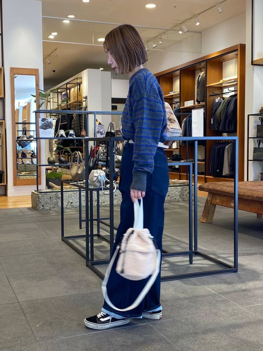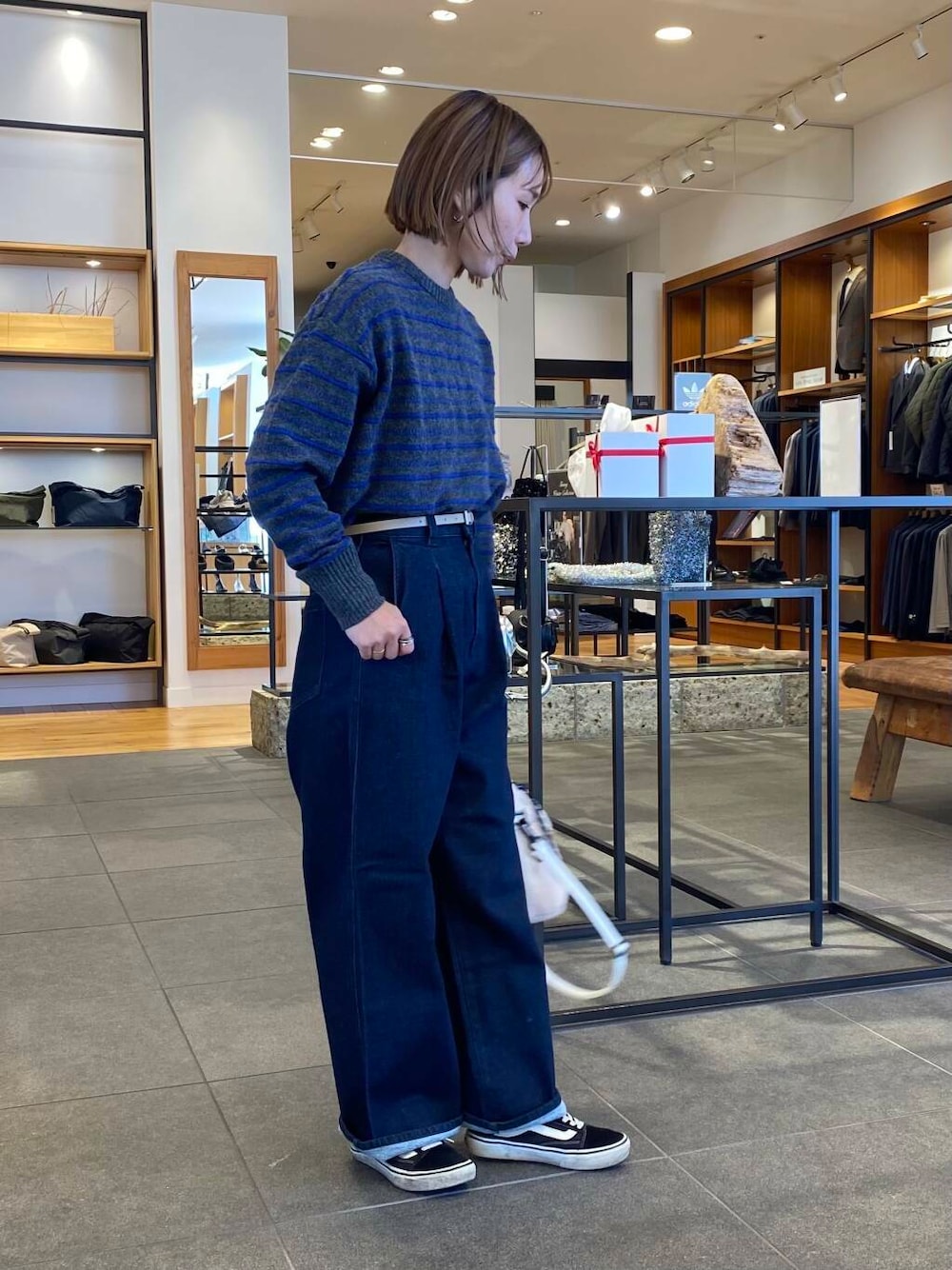 裏起毛タックデニムは程良くボリュームがあり合わせやすいシルエットでした。