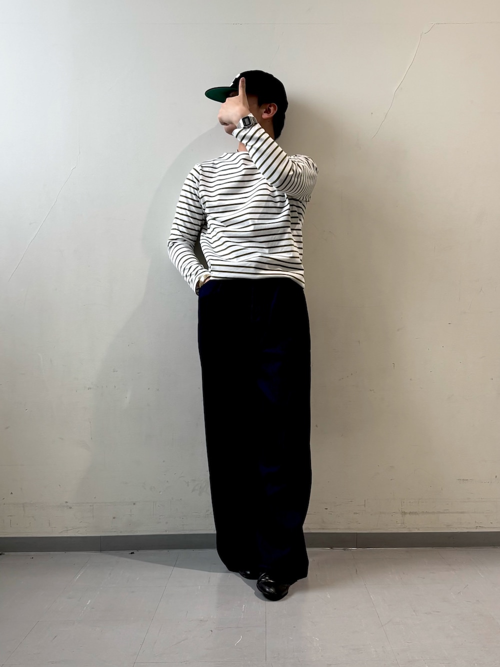 今回は、前回の投稿のボーダーを別のカラーで着用しました!