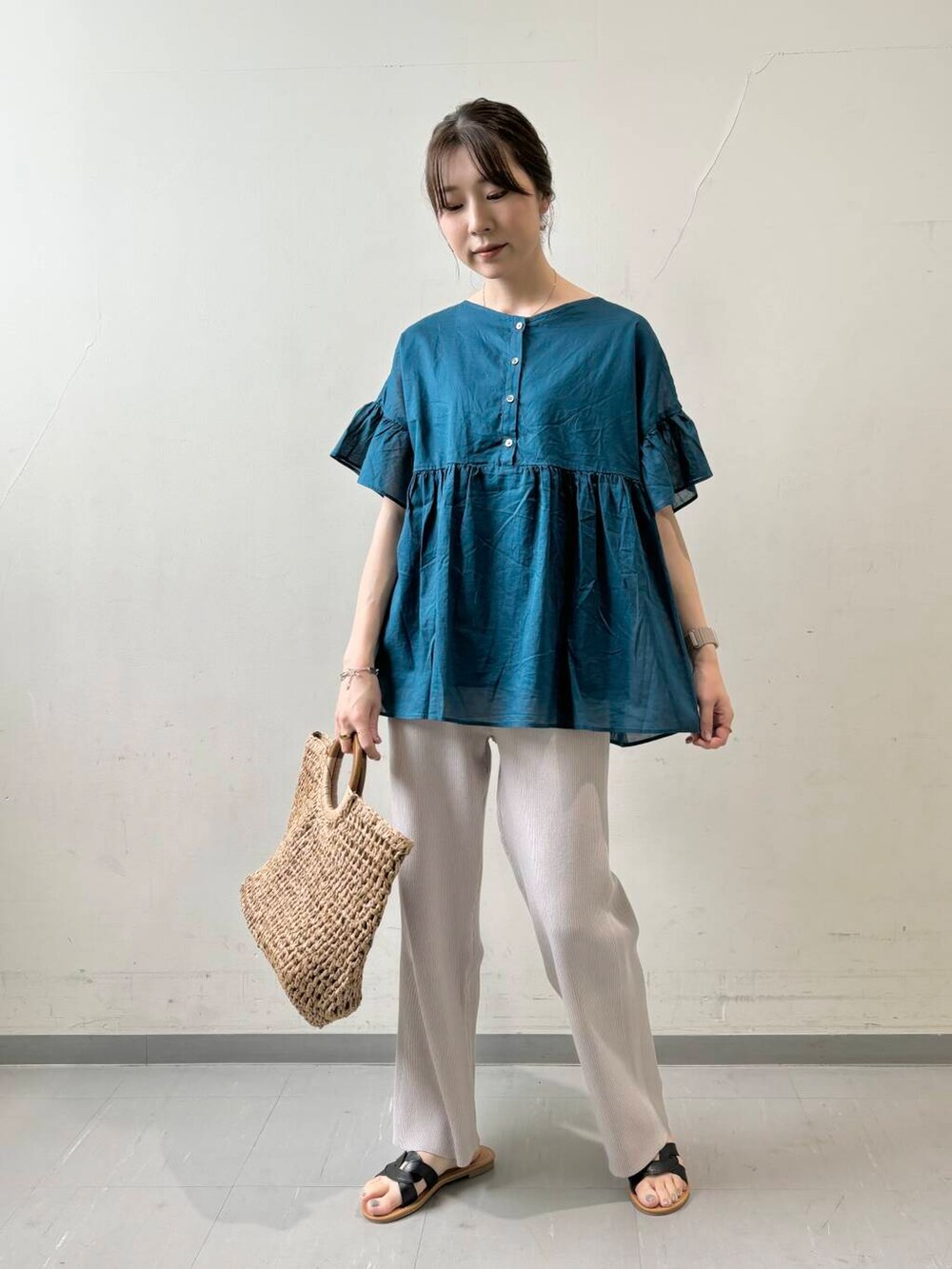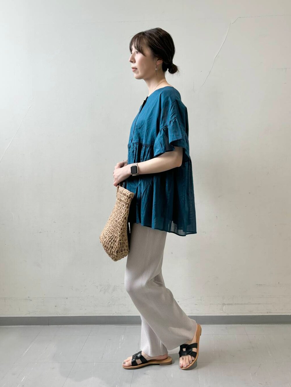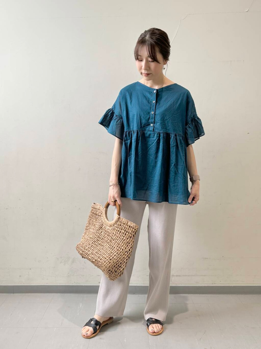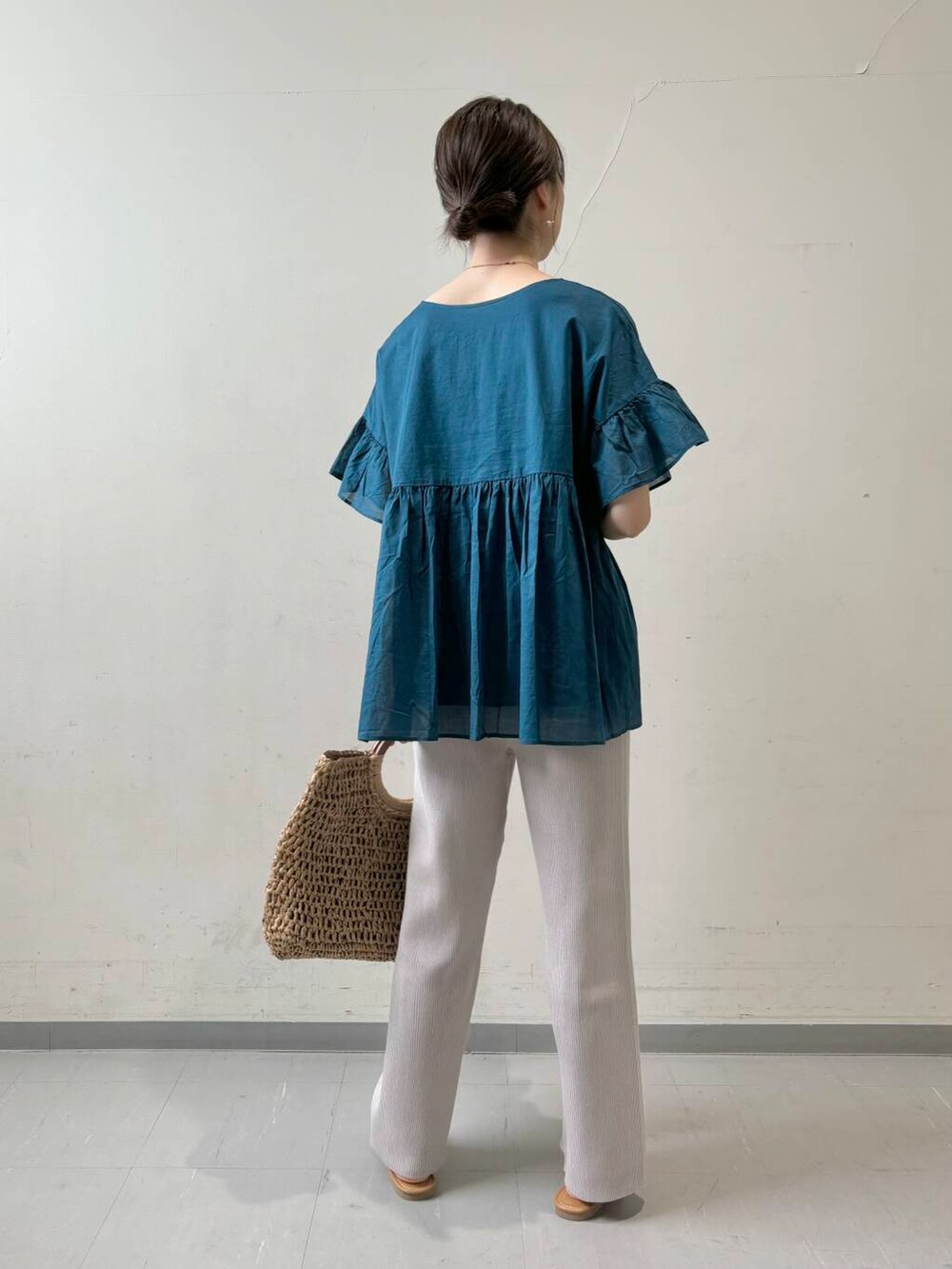 ふんわりシルエットのブラウスには