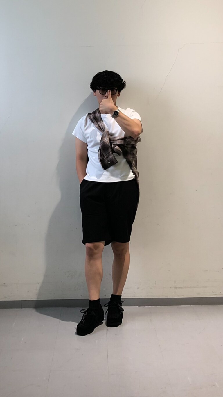 パンツは、メンズのハーフパンツを着用しています。シンプルな作りに黒ということでトップスはなんでも合うのが特徴です!ショートパンツがお好きな方は是非!長めのソックスと合わせると最高ですね👍
