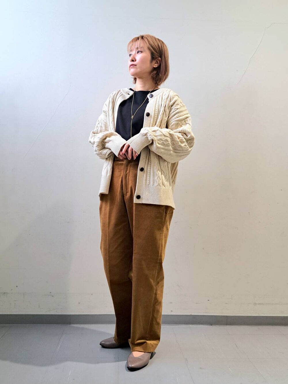 ゆったりしたシルエットで編み込みのデザインが可愛くて一枚で様になります♩
