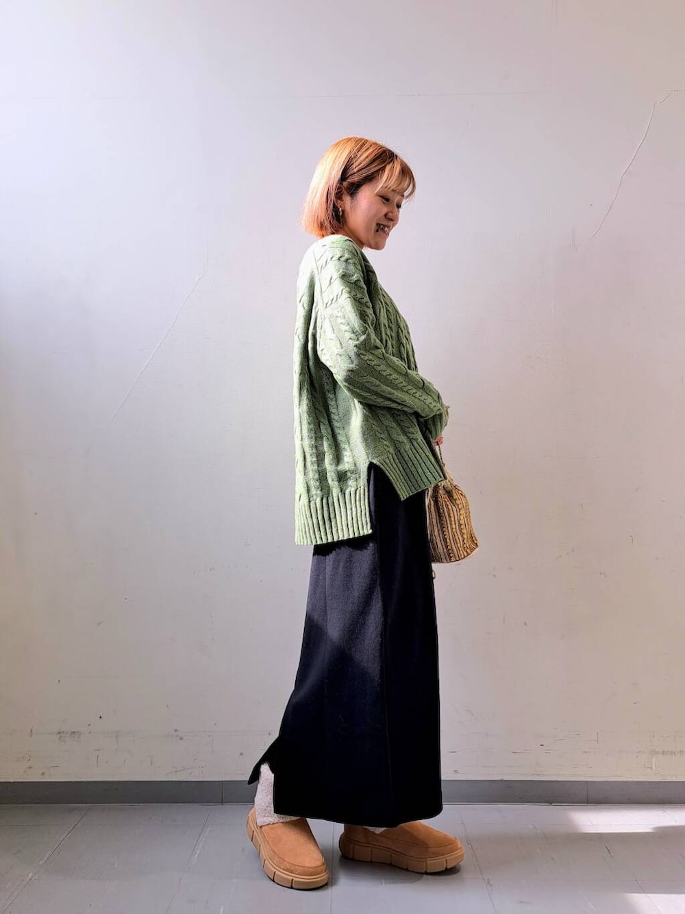 身幅がたっぷりしているのでインナー合わせでも窮屈さも感じない所もいいですよね◎
