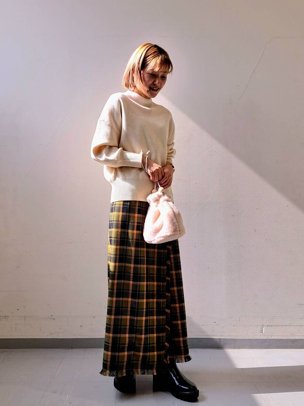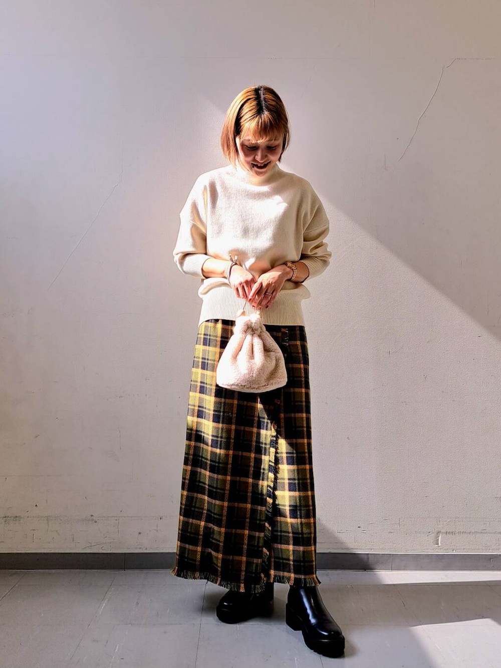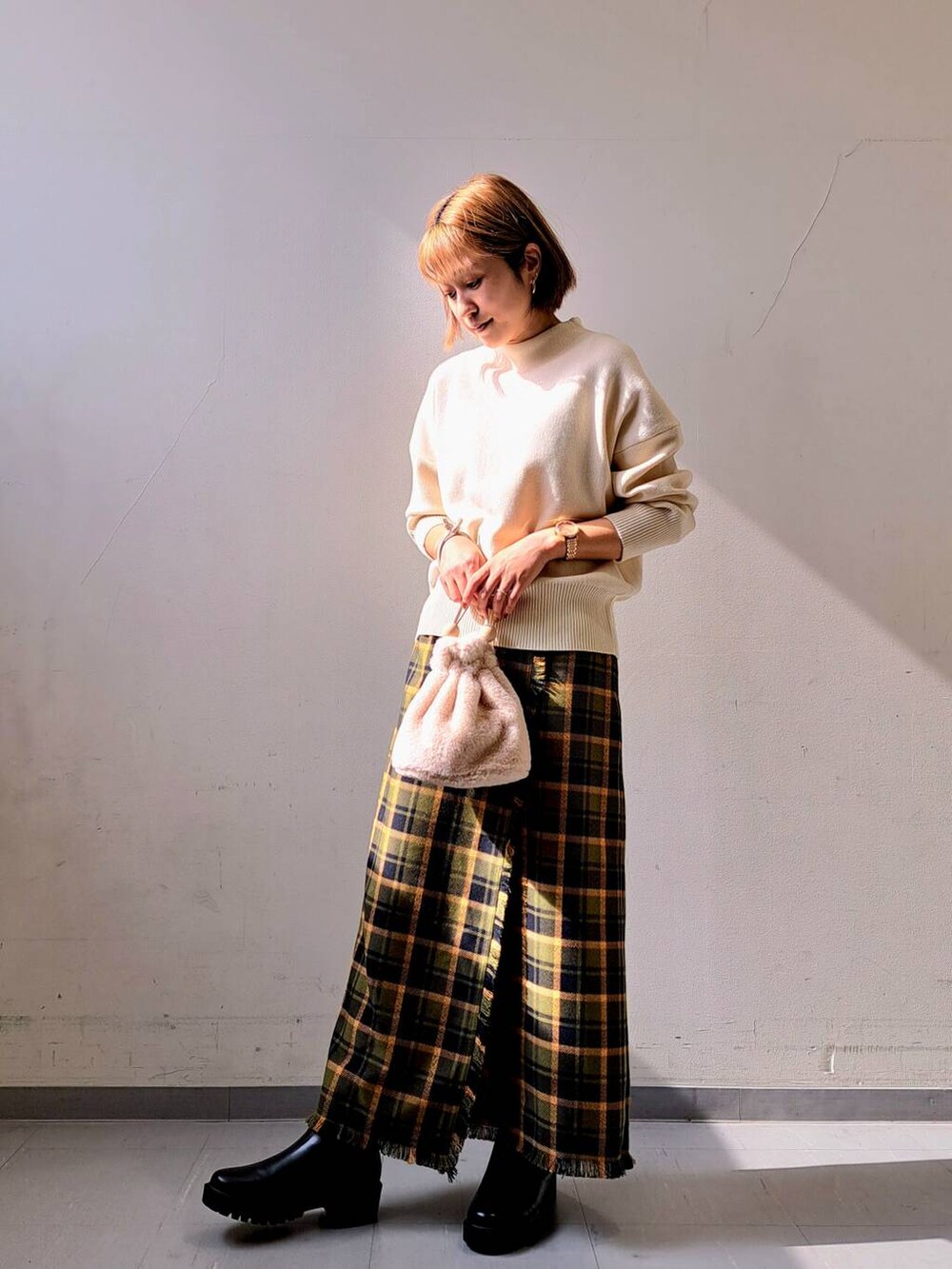 すっきりとしたIラインのシルエットですが後ウエストがゴムでヒップに程よいゆとりを持たせているためタイトすぎず体型が響きにくいシルエット◎