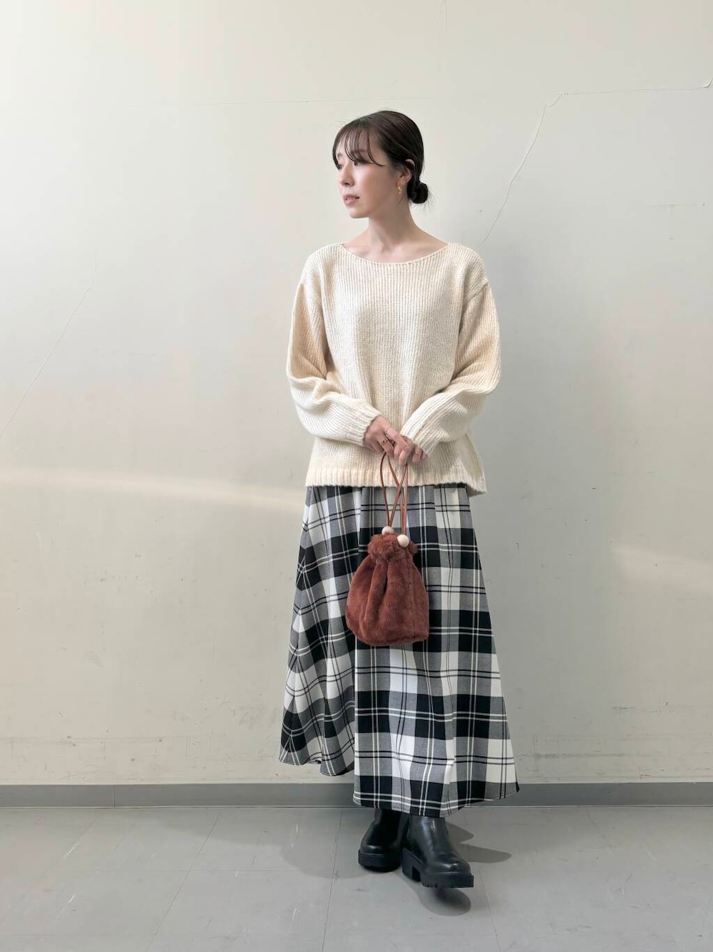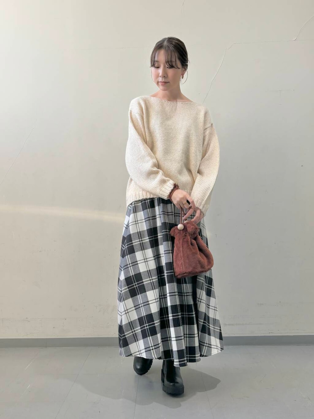 ザックリ編みの感じもポイントになるニットです。