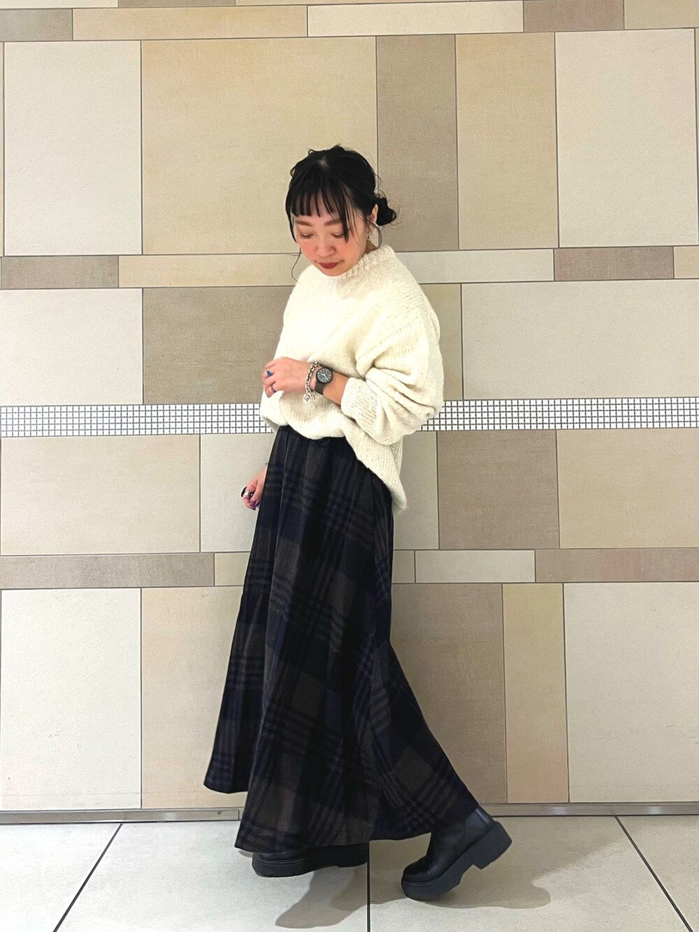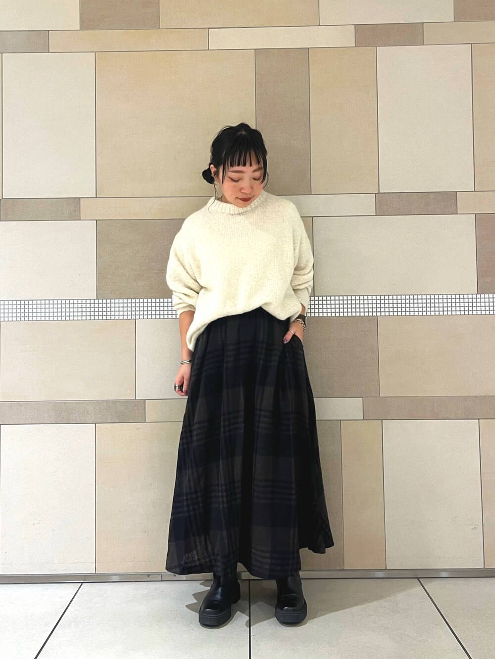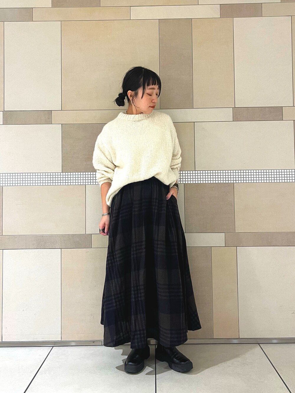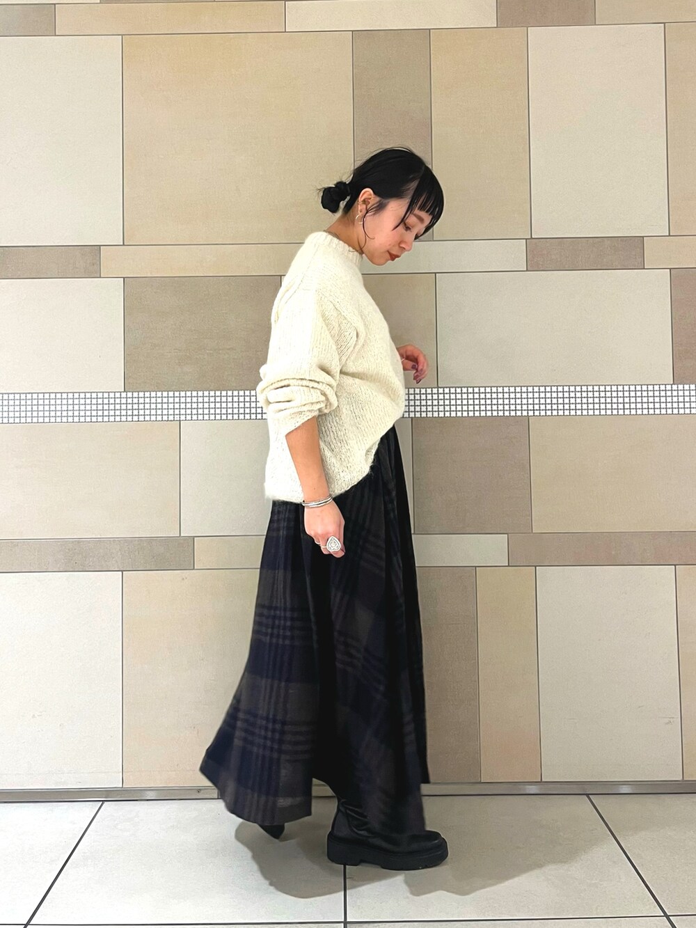 スカートもかぐれのアイテムで、ウール100%でもボリュームが出すぎず広がりを抑えたフレアシルエットで、これまたステキスカート。
