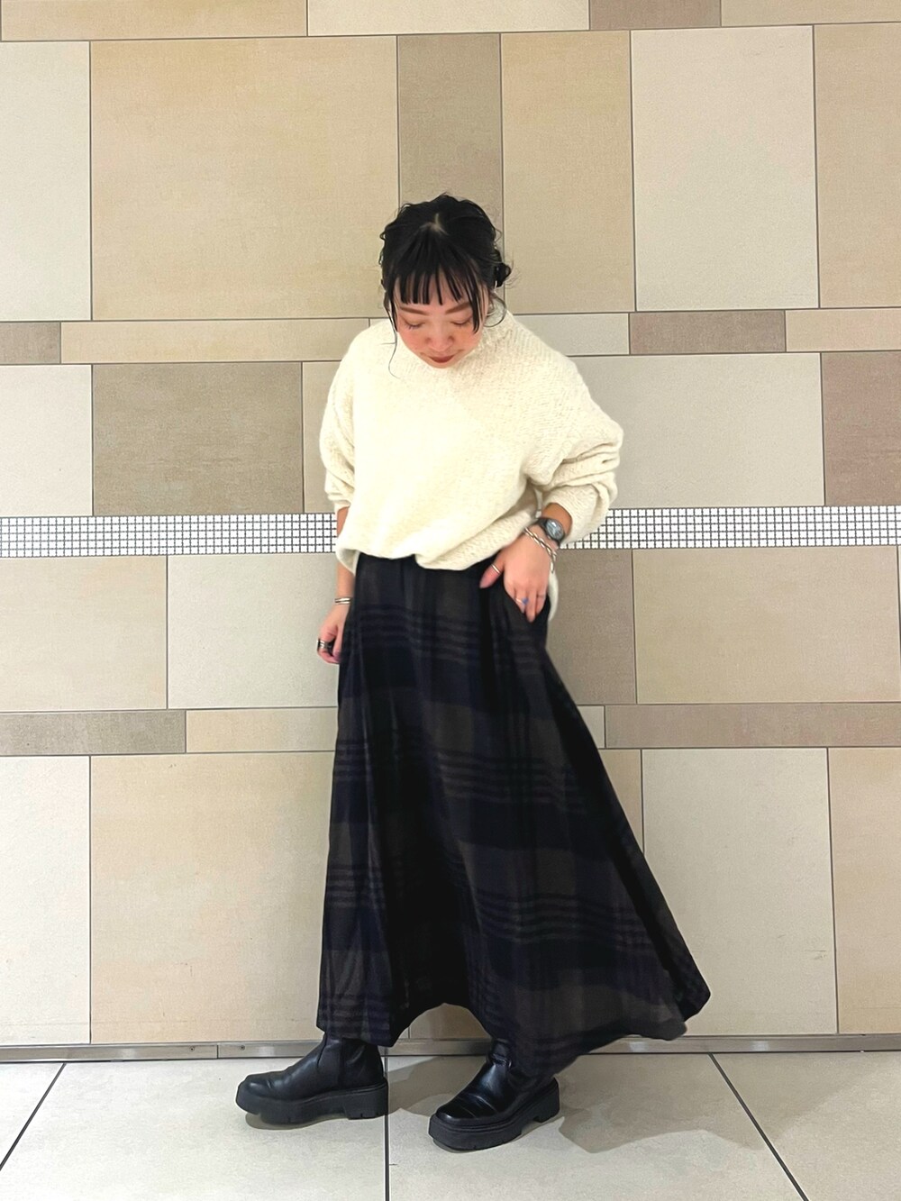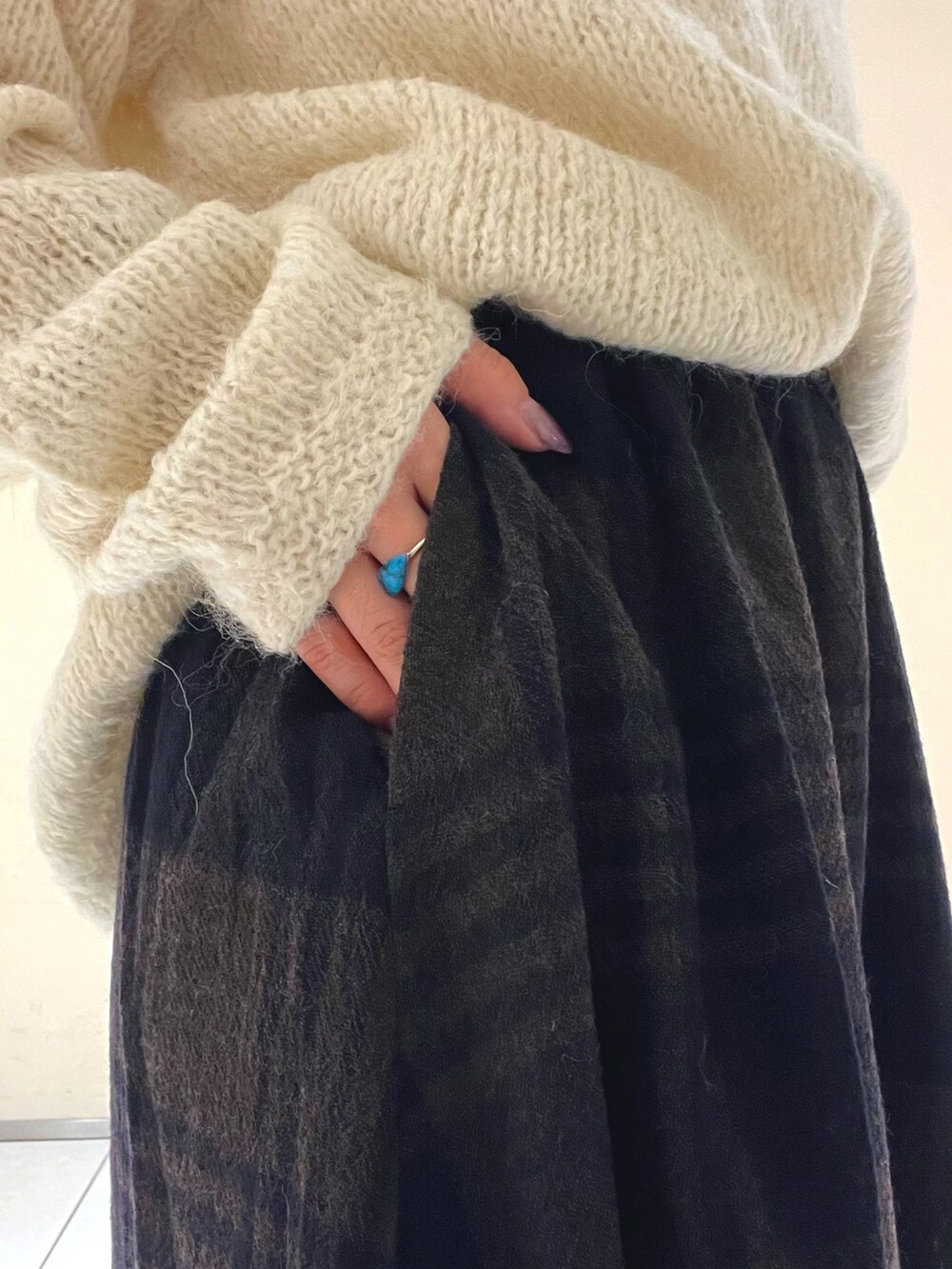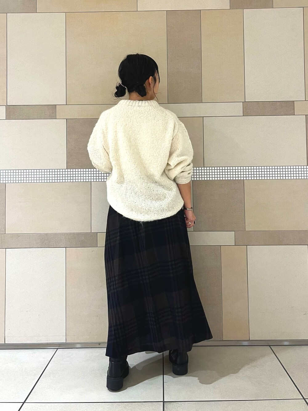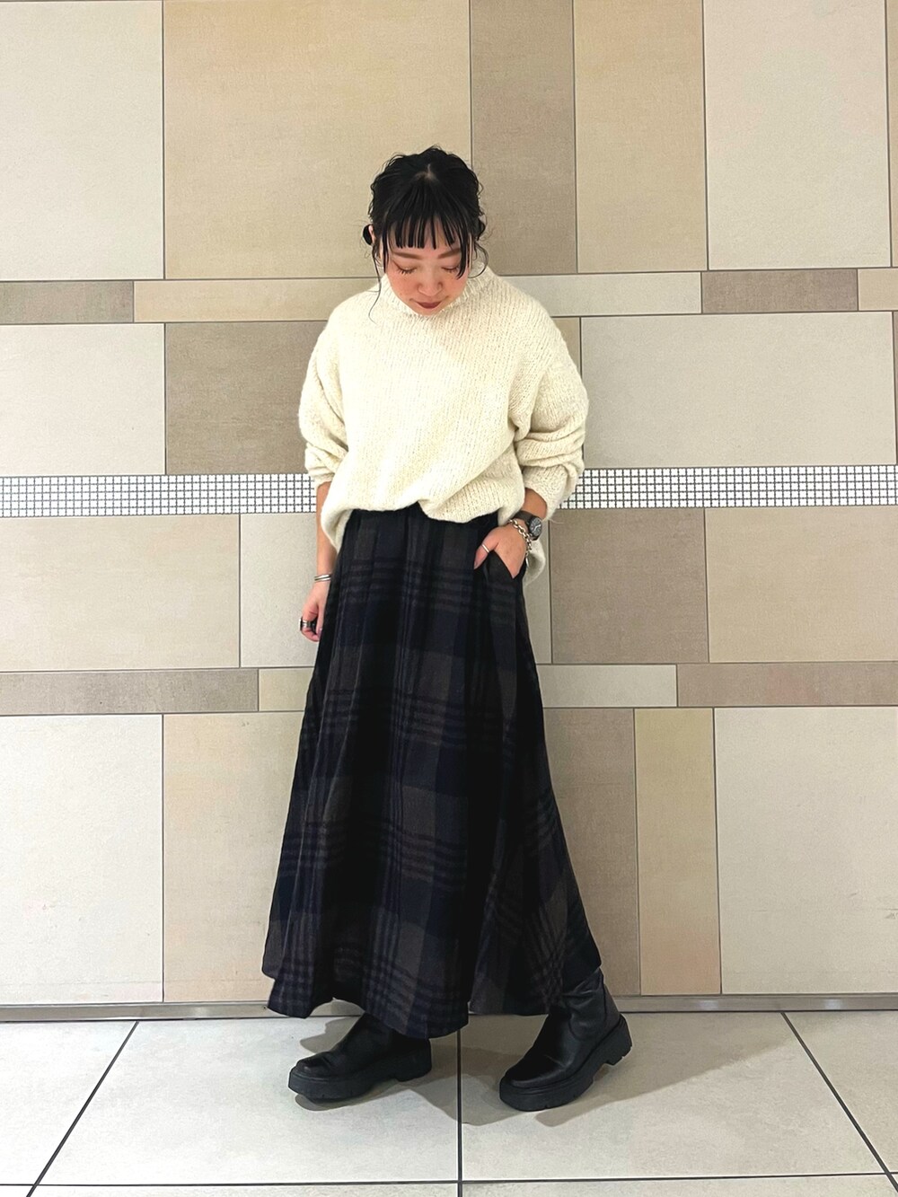スカートもかぐれのアイテムで、ウール100%でもボリュームが出すぎず広がりを抑えたフレアシルエットで、これまたステキスカート。
