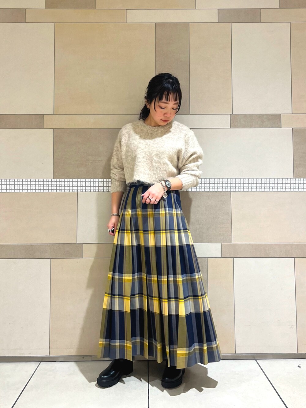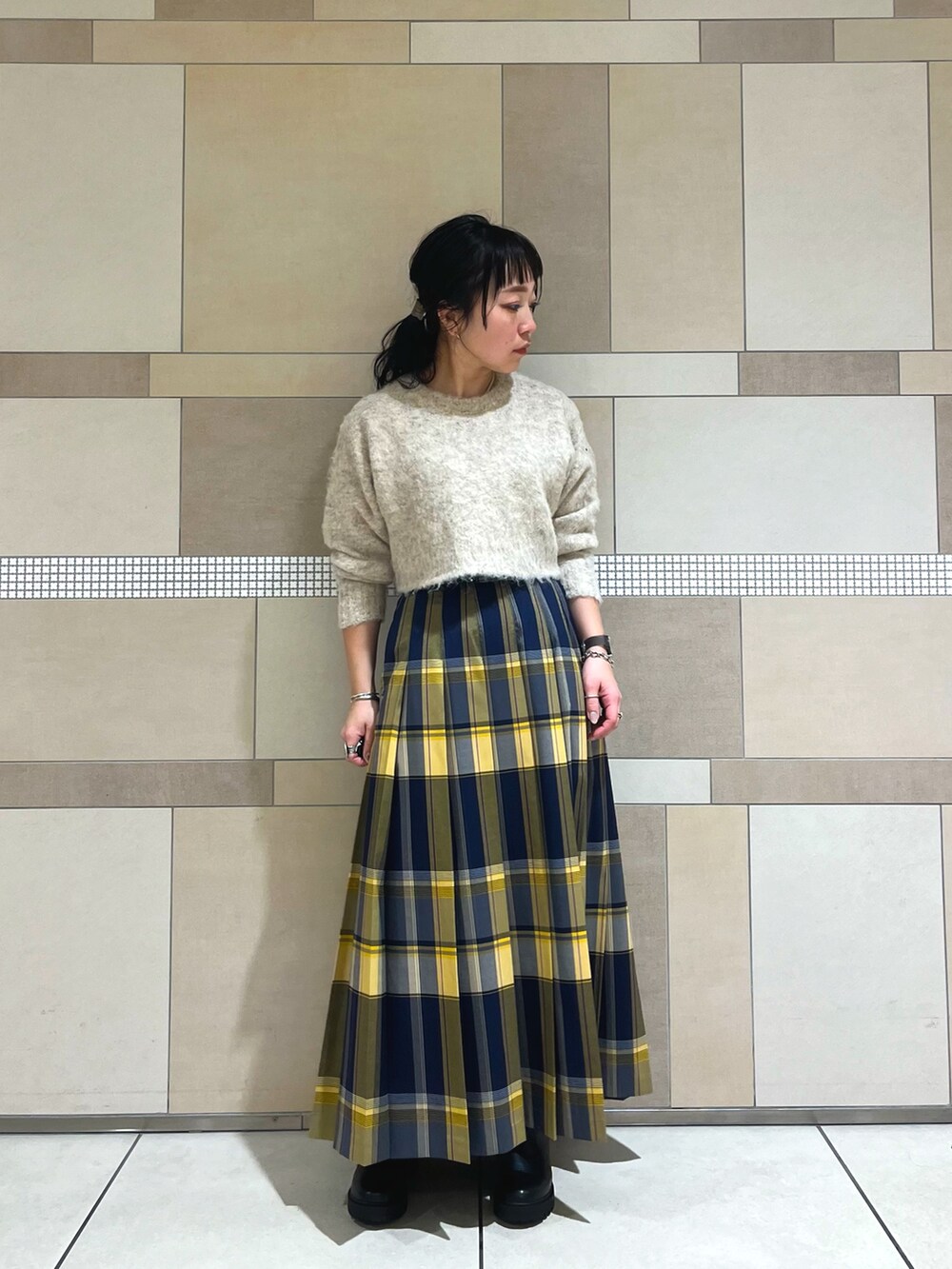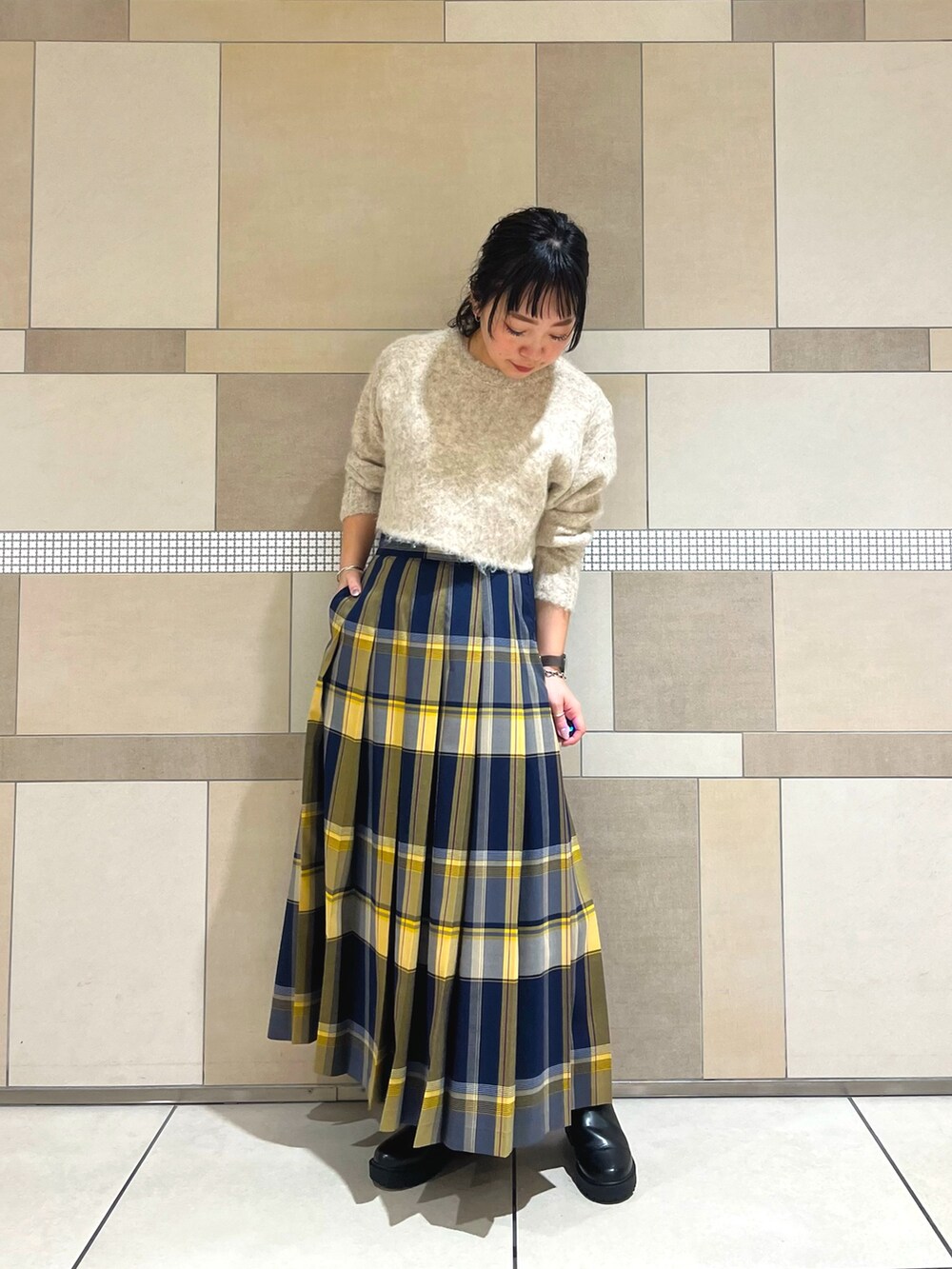 毛足の長いニットですが、ボリューム感はそこまで無くスッキリシルエット。
