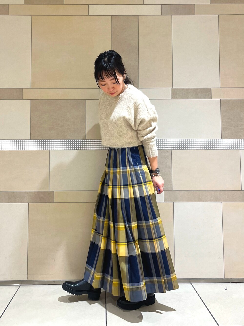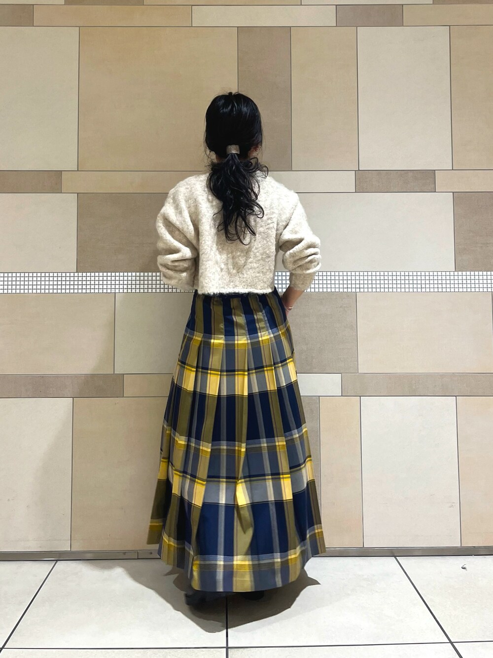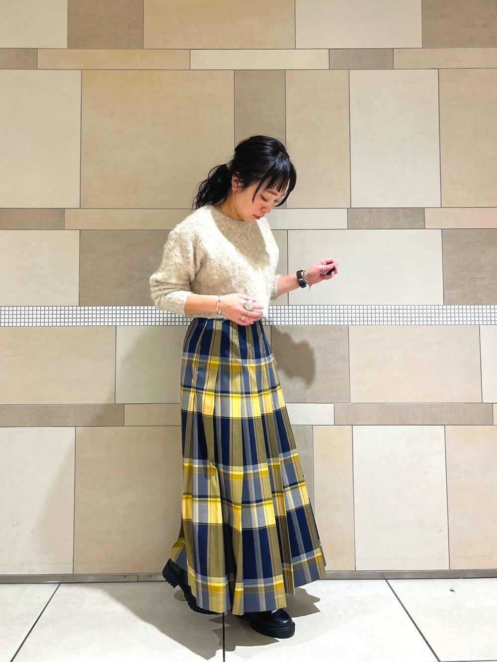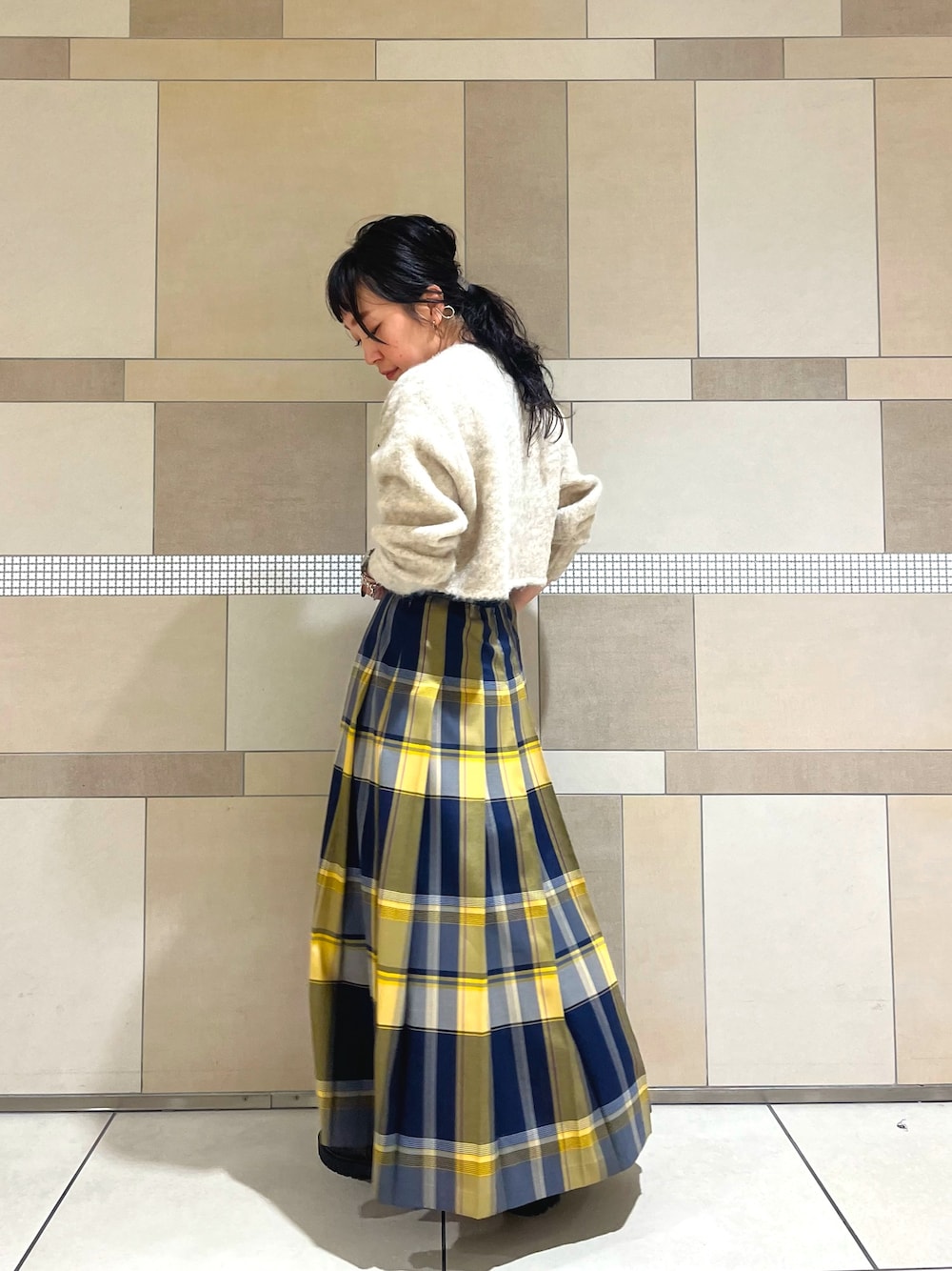 毛足の長いニットですが、ボリューム感はそこまで無くスッキリシルエット。