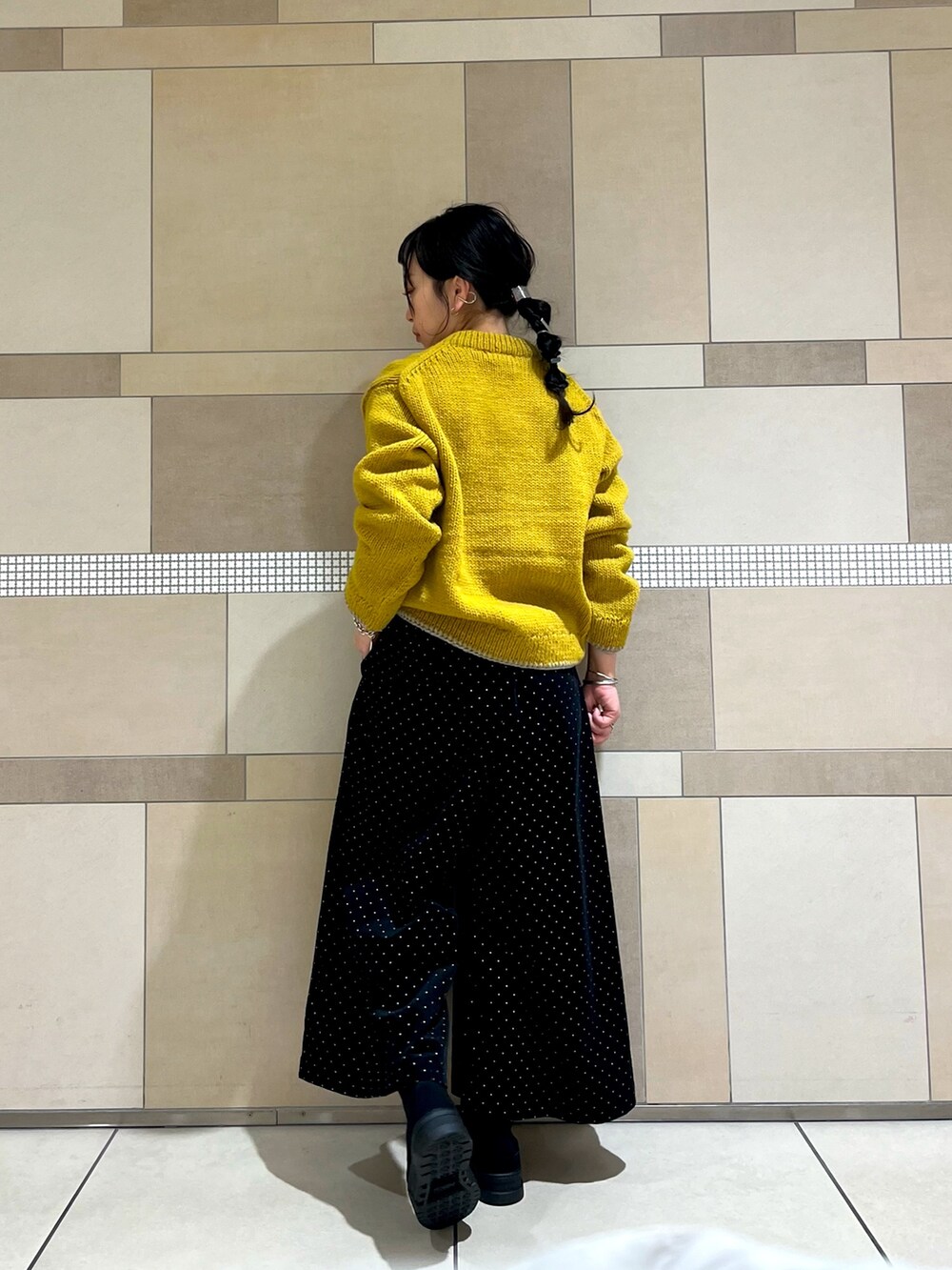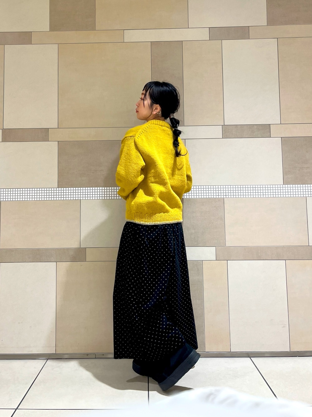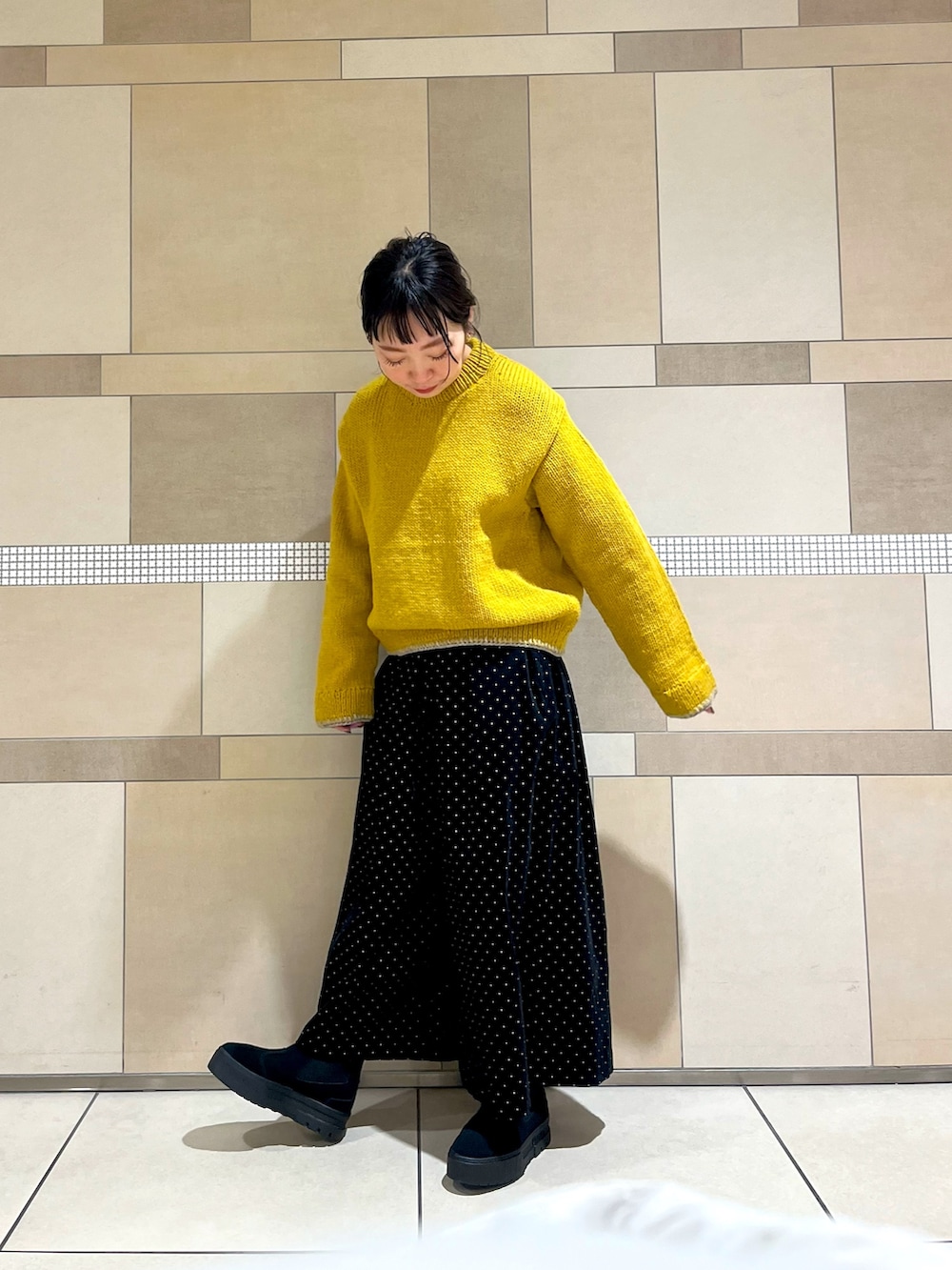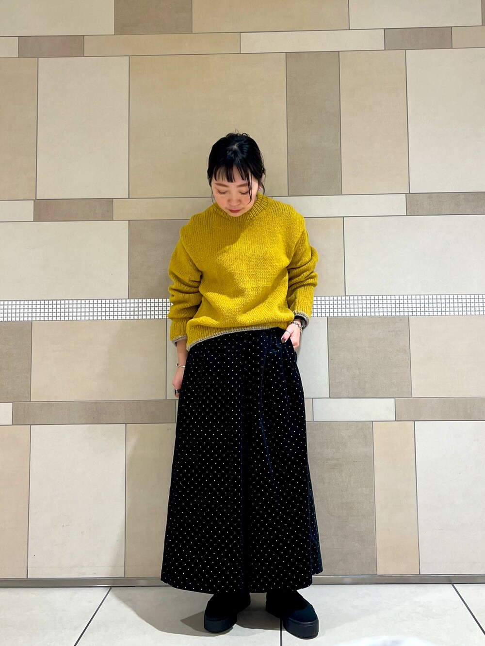 かぐれのウールニットと、定番のドットコーデュロイパンツ。