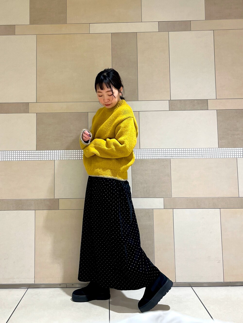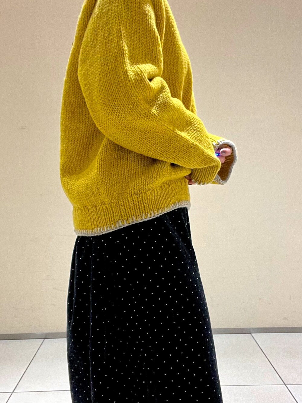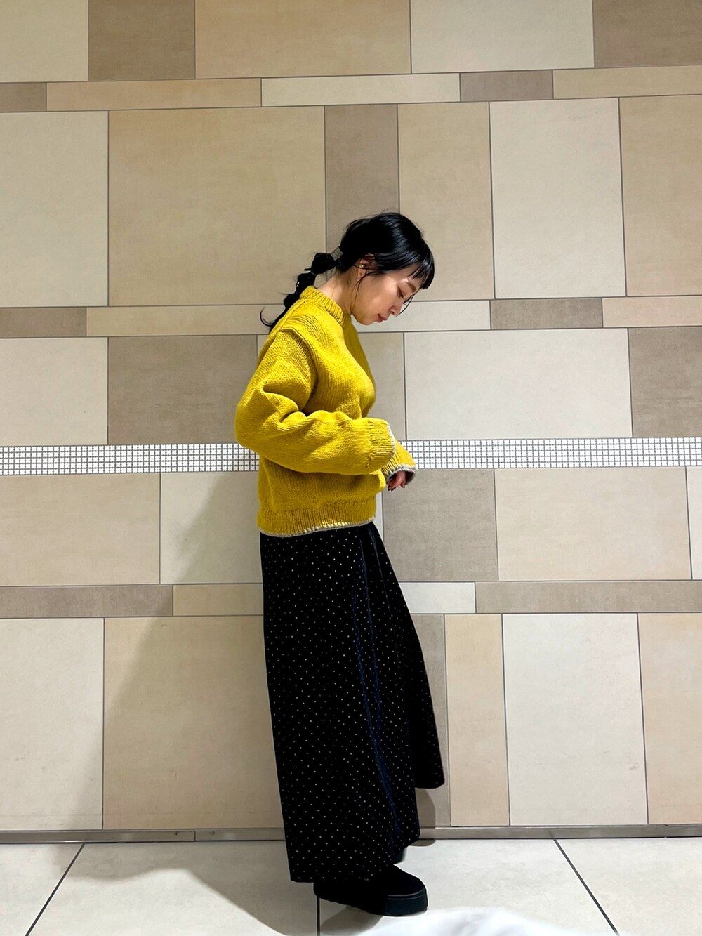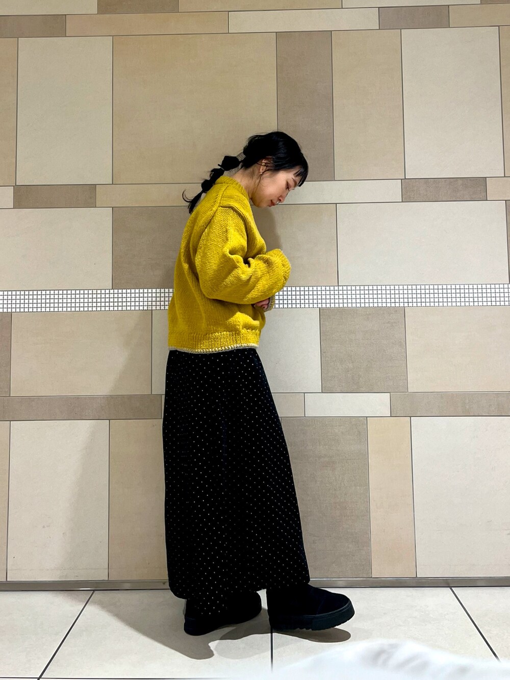 かぐれのウールニットと、定番のドットコーデュロイパンツ。